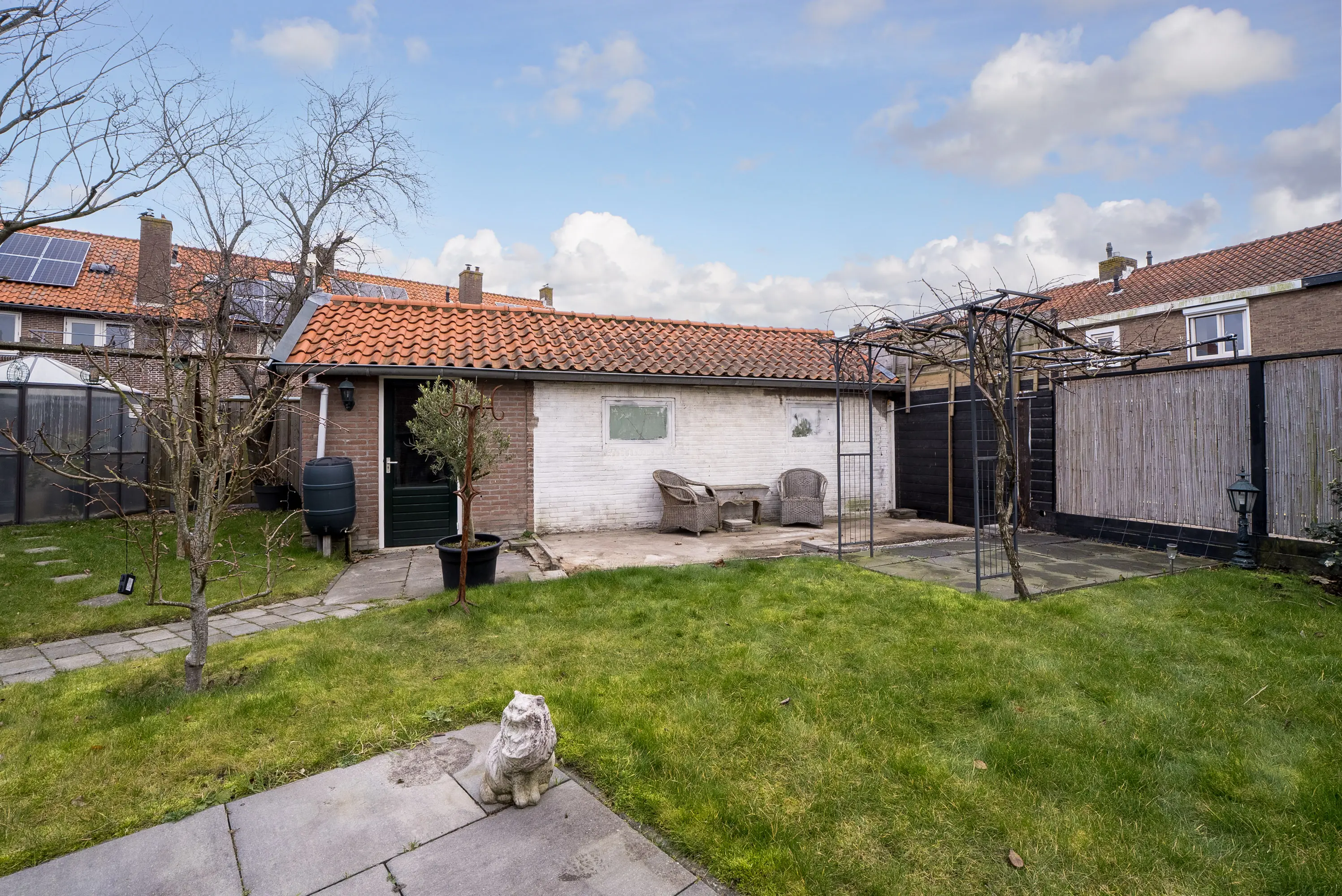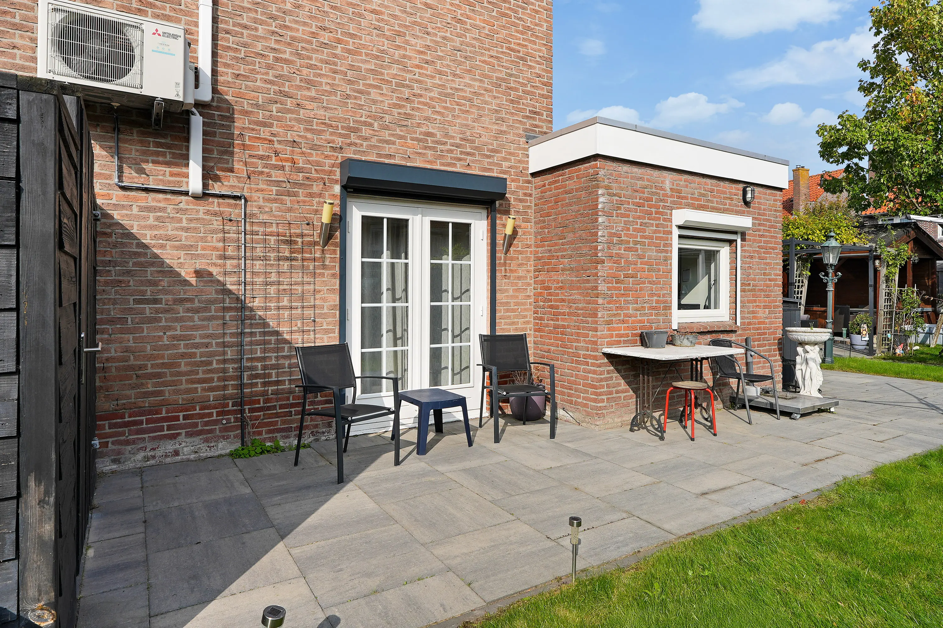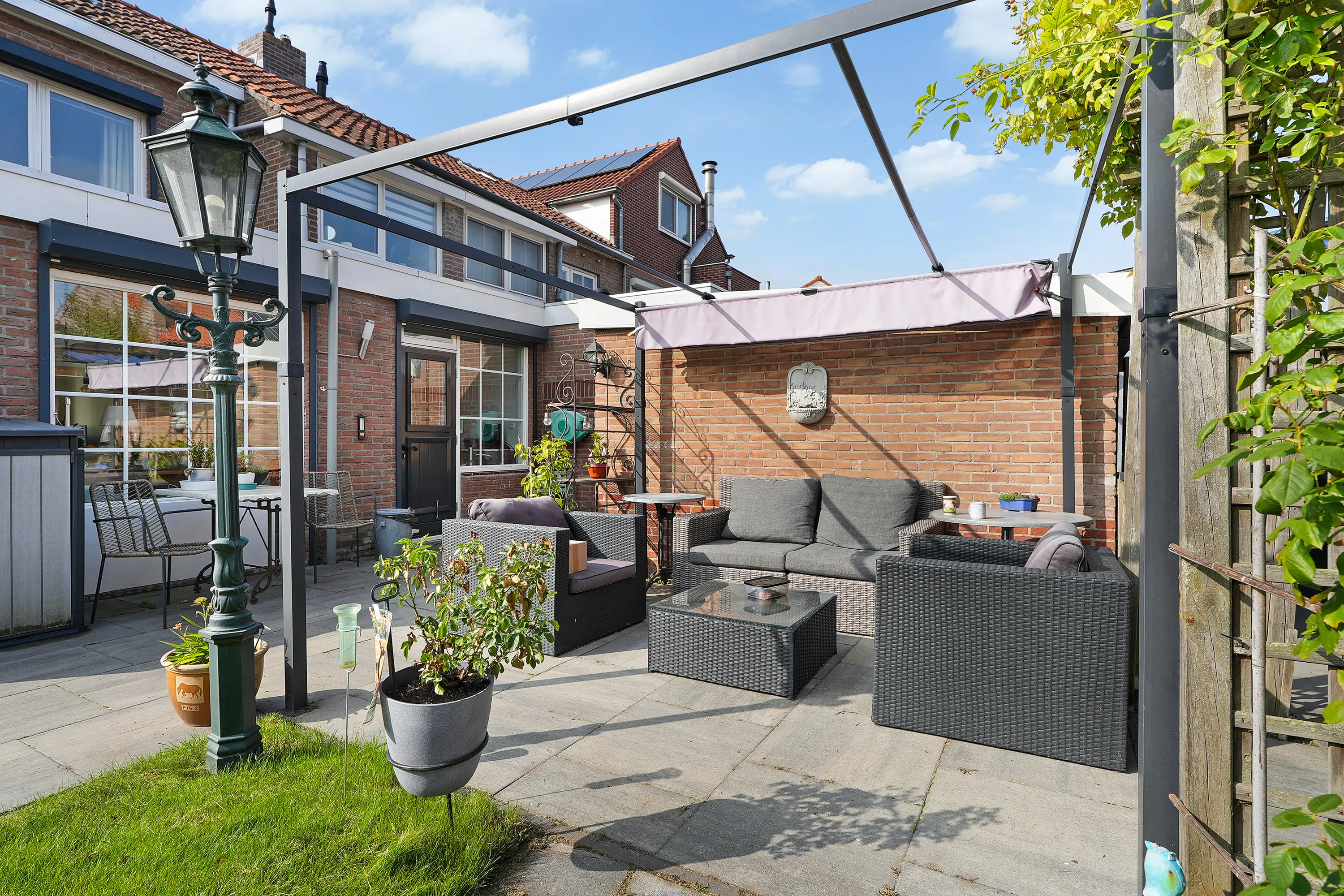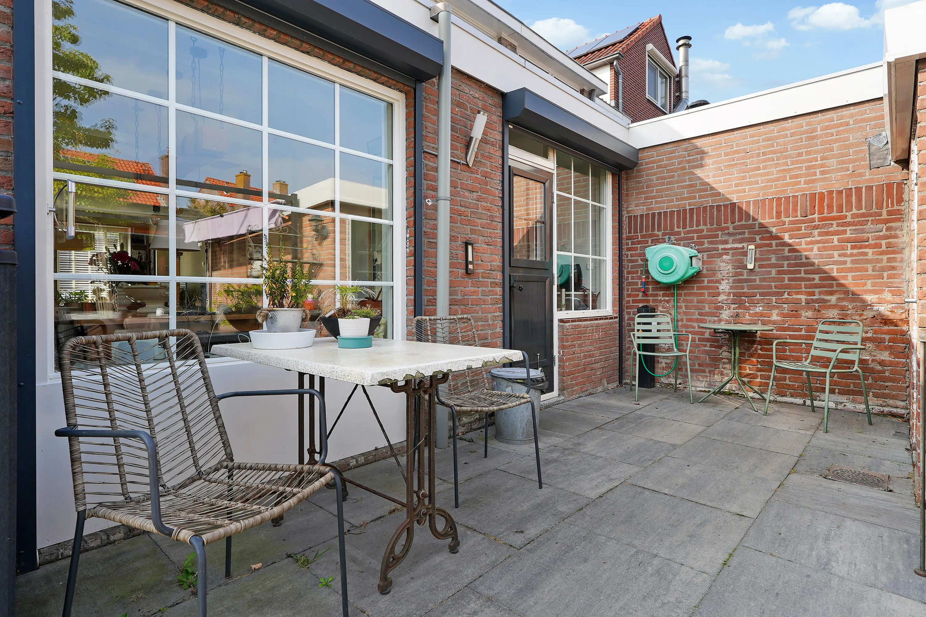 De zonnige, vrij gelegen tuin is zonder twijfel één van de grote pluspunten van deze woning. Fraai aangelegd en met veel privacy biedt deze tuin een heerlijke plek om te ontspannen. De ruime garage en veranda vormen geen losse elementen, maar zijn harmonieus geïntegreerd in het geheel. Ideaal voor opslag, hobby, werk aan huis of het stallen van een auto.