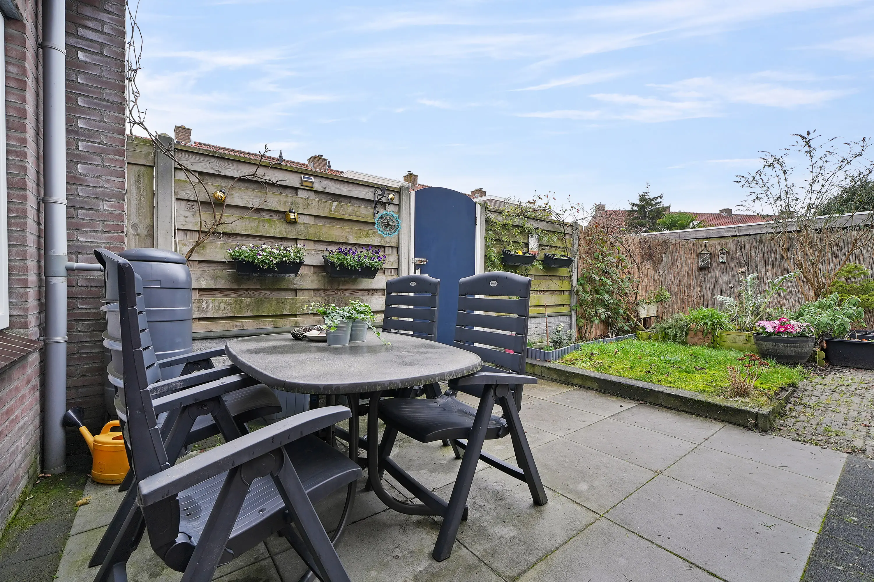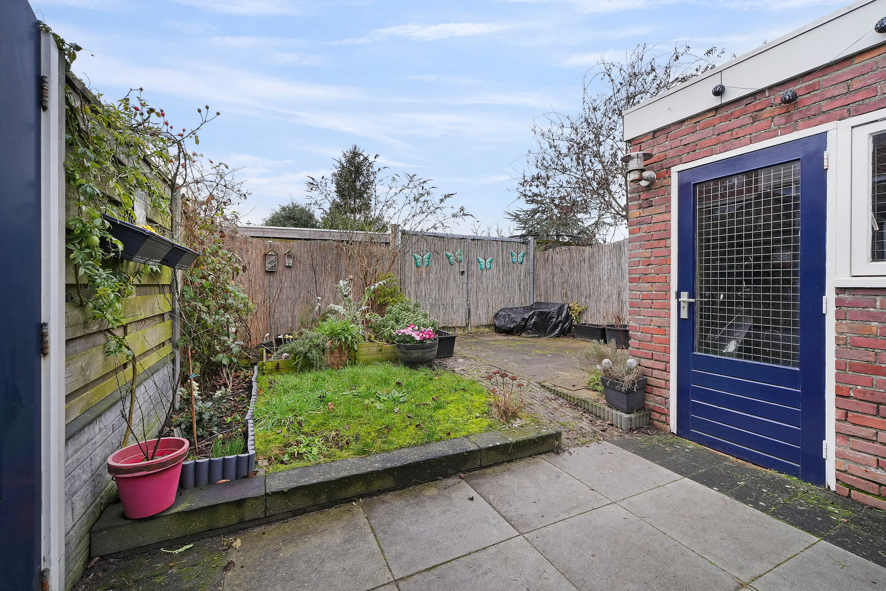 De tuin is gunstig op de zon gelegen en verzorgd aangelegd met diverse terassen. De aangebouwde stenen berging heeft een oppervlakte van circa 10 m². Tevens beschikt de tuin over een dubbele openslaande poort, ideaal voor eventueel bakfiets of motor.