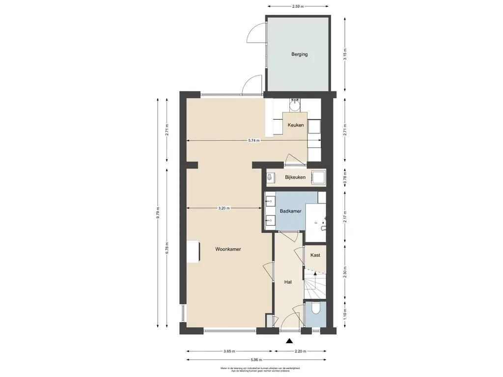 Deze informatie is door ons met de nodige zorgvuldigheid samengesteld. Onzerzijds wordt echter geen enkele aansprakelijkheid aanvaard voor enige onvolledigheid, onjuistheid of anderszins, dan wel de gevolgen daarvan. Alle opgegeven maten en oppervlakten zijn indicatief.