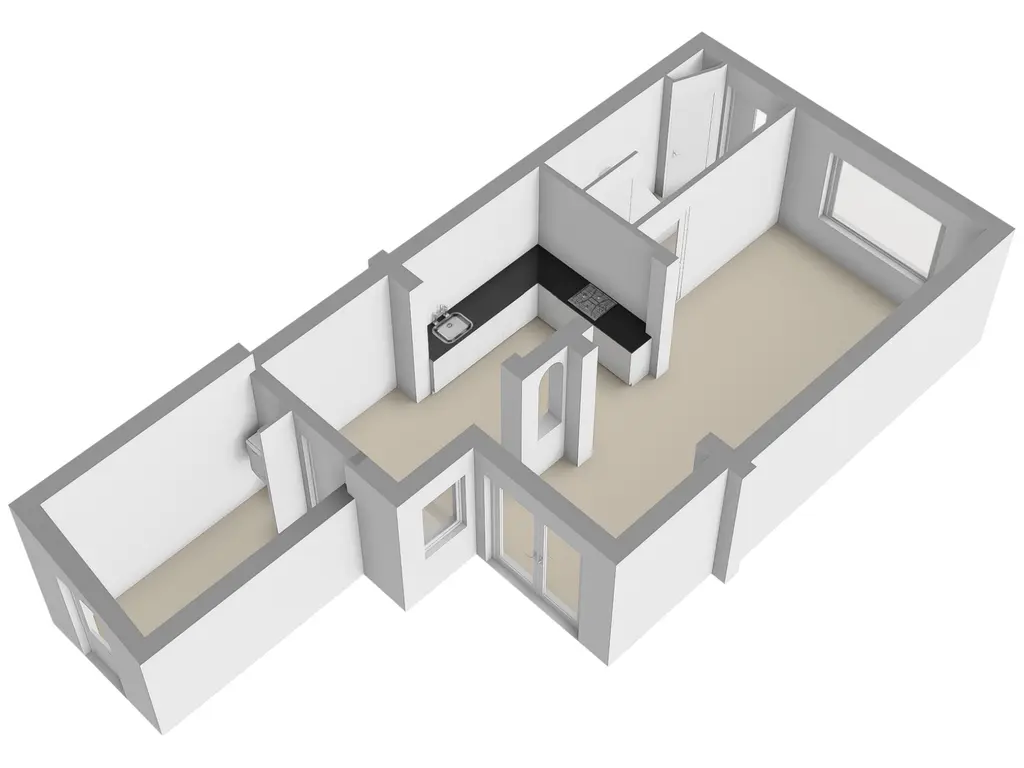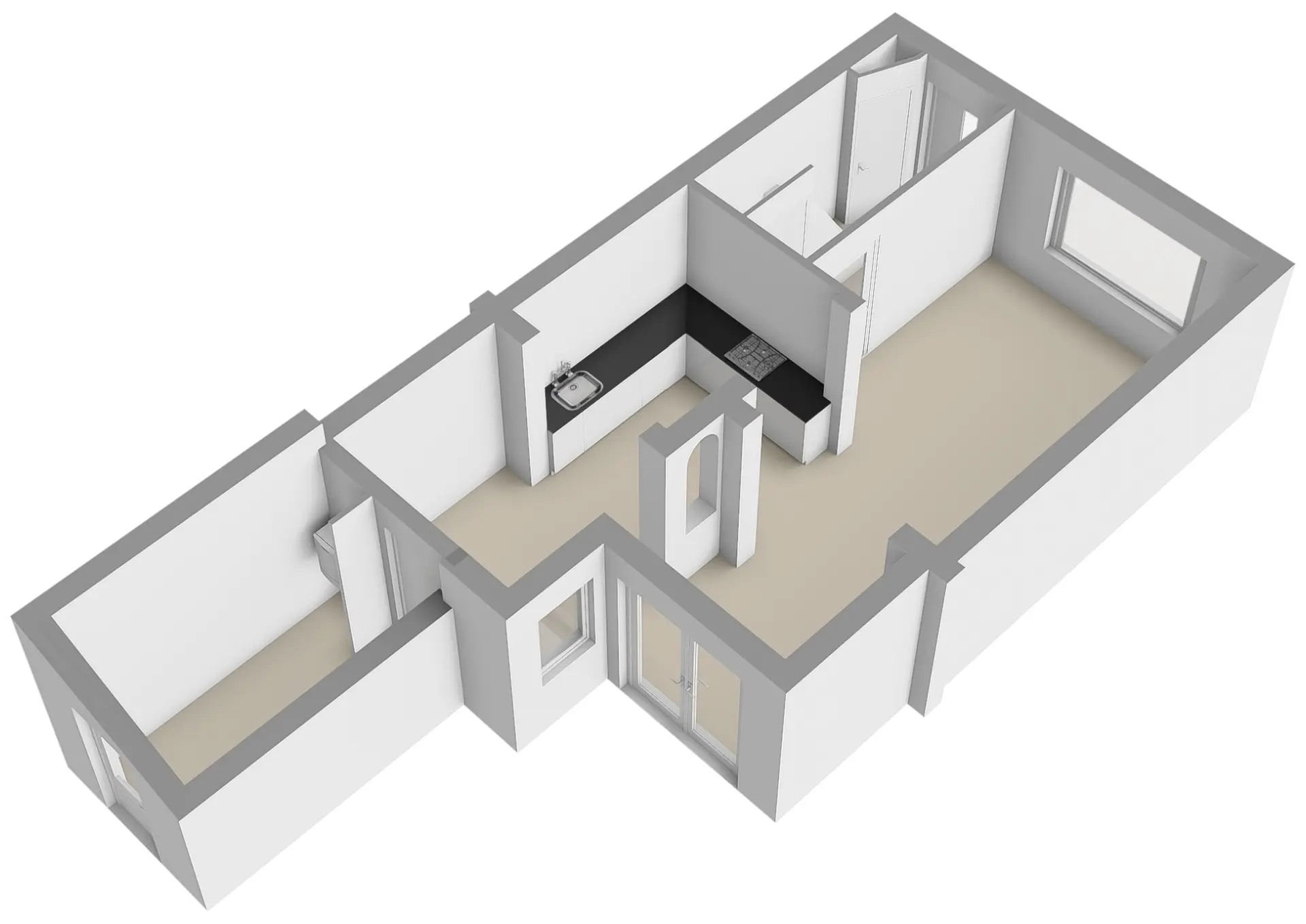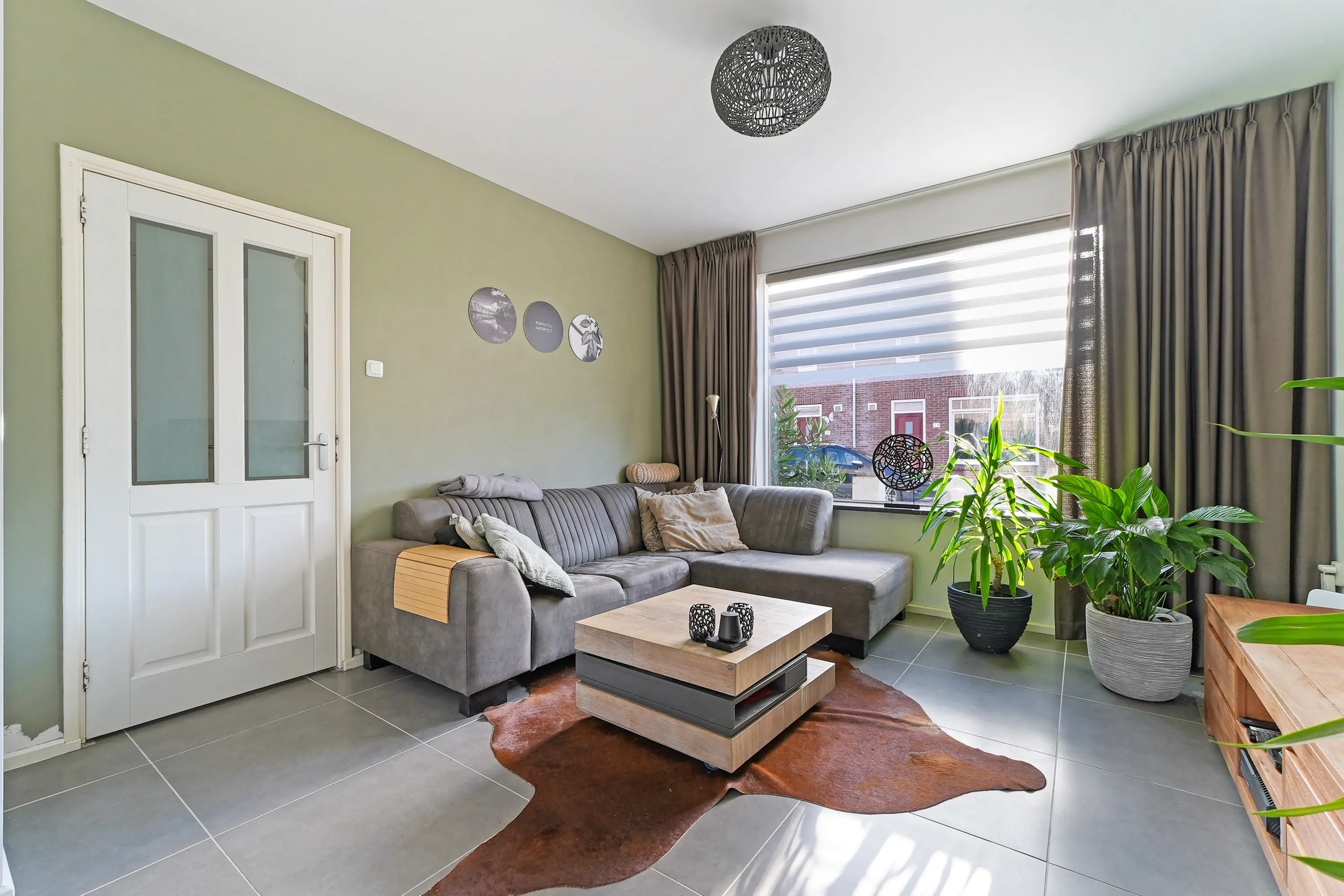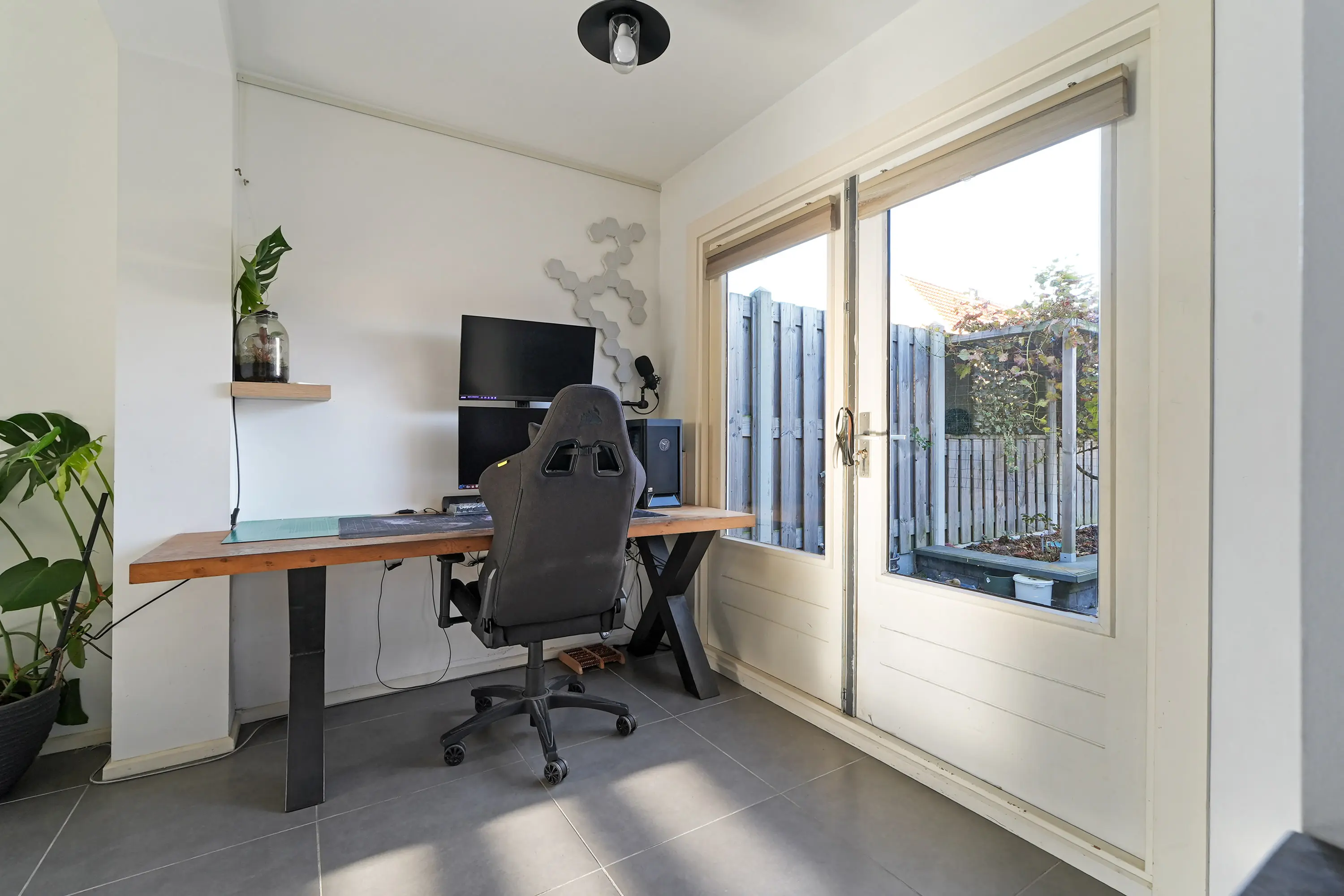 U betreedt de woning via de hal met meterkast, trapopgang en toilet. De woonkamer bevindt zich aan de voorzijde en biedt dankzij de grote raampartijen veel licht en leefruimte. De moderne open keuken (2017) is uitgerust met diverse inbouwapparaten en heeft dubbele openslaande deuren naar de tuin. Aangrenzend bevindt zich de bijkeuken met witgoedaansluitingen en cv-opstelling. Deze ruimte is in 2021 vernieuwd, geïsoleerd en keurig afgewerkt.