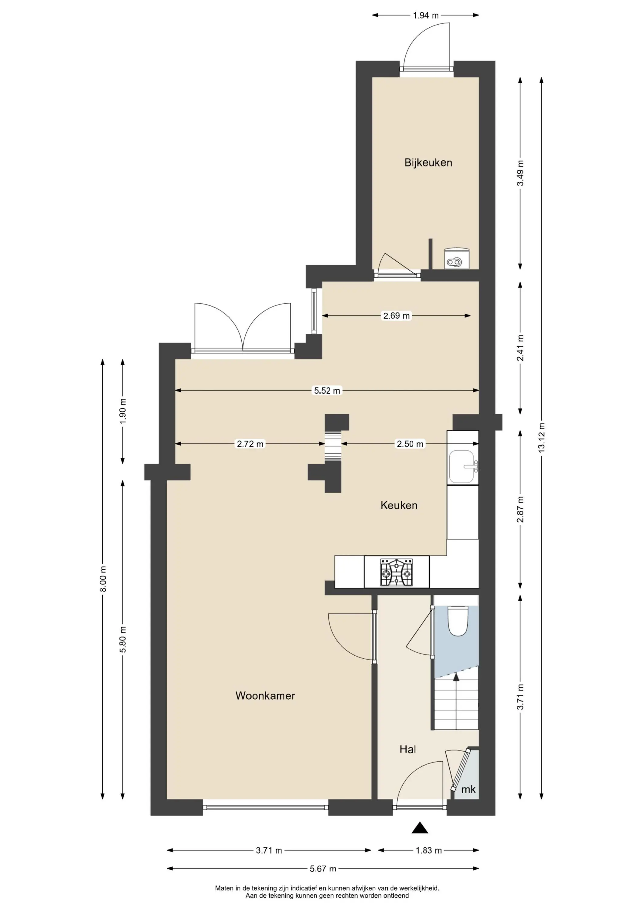 Deze informatie is door ons met de nodige zorgvuldigheid samengesteld. Onzerzijds wordt echter geen enkele aansprakelijkheid aanvaard voor enige onvolledigheid, onjuistheid of anderszins, dan wel de gevolgen daarvan. Alle opgegeven maten en oppervlakten zijn indicatief.