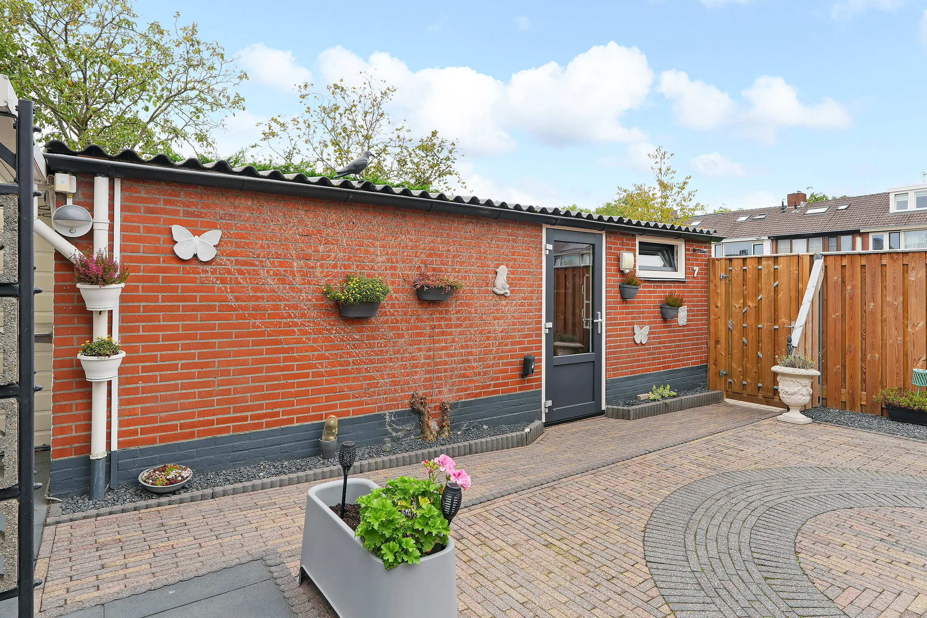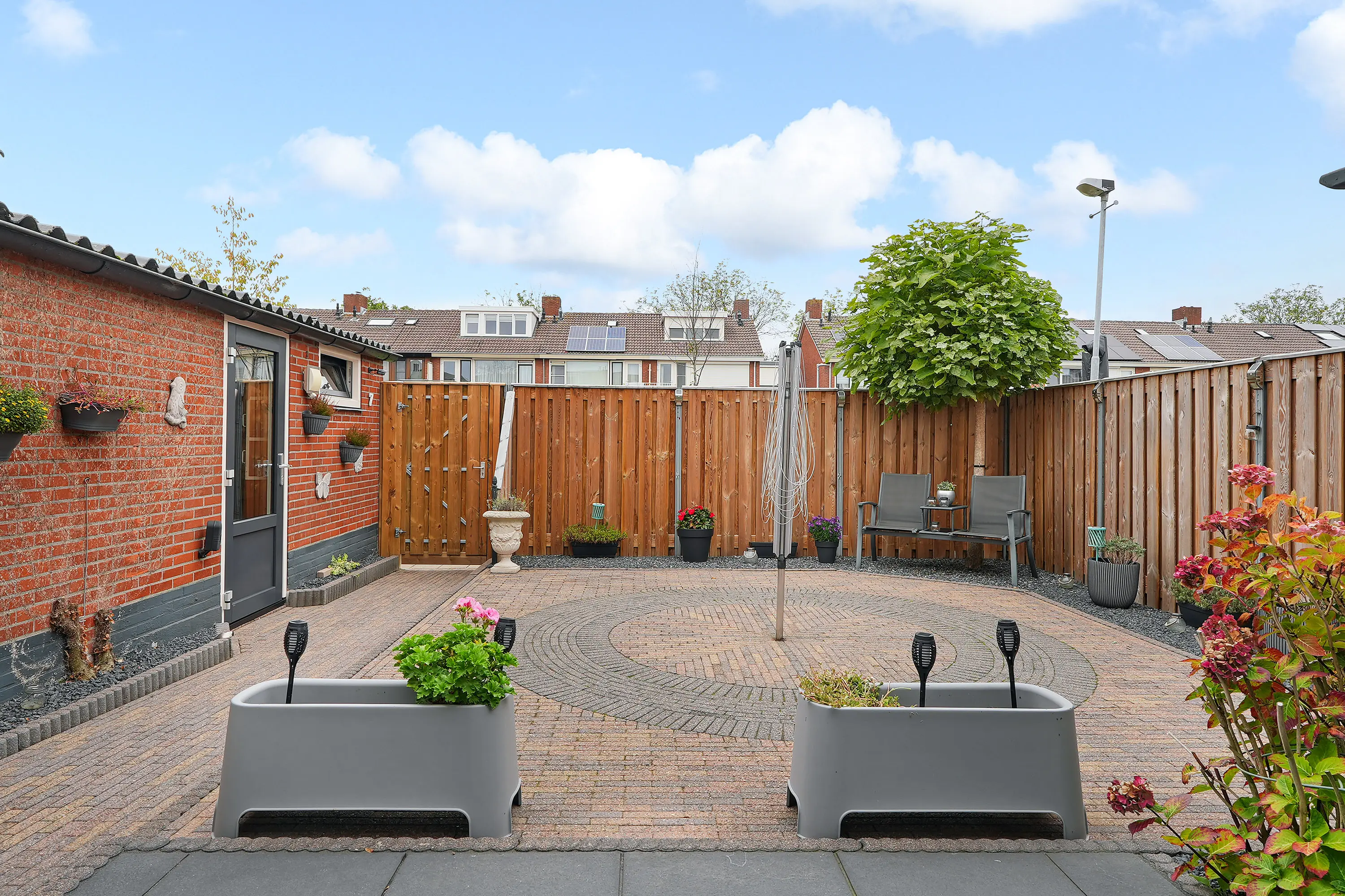 De tuin is royaal en bestaat uit een voor-, zij- en achtertuin, samen goed voor een prettige buitenruimte. Alles is netjes aangelegd en onderhoudsvriendelijk. Aan de achterzijde bevindt zich een overkapping, ideaal om spullen droog te stallen. In de tuin is zowel elektra als een buitenkraan aanwezig.