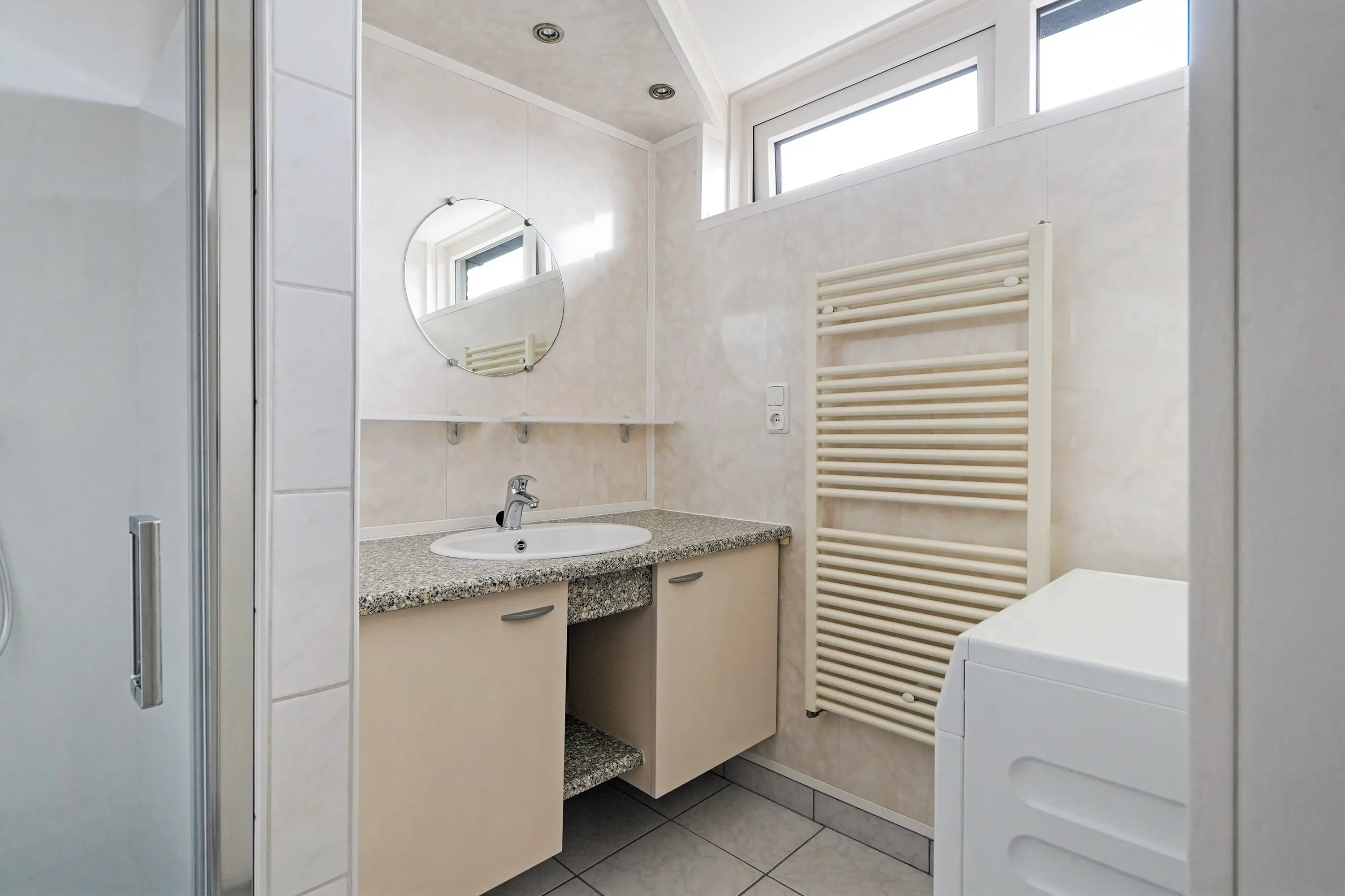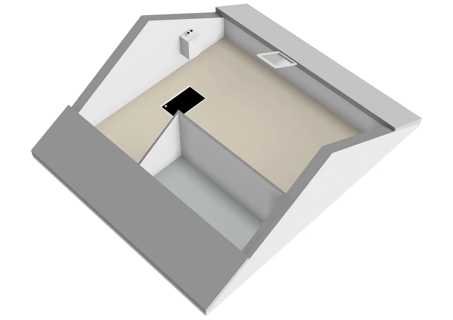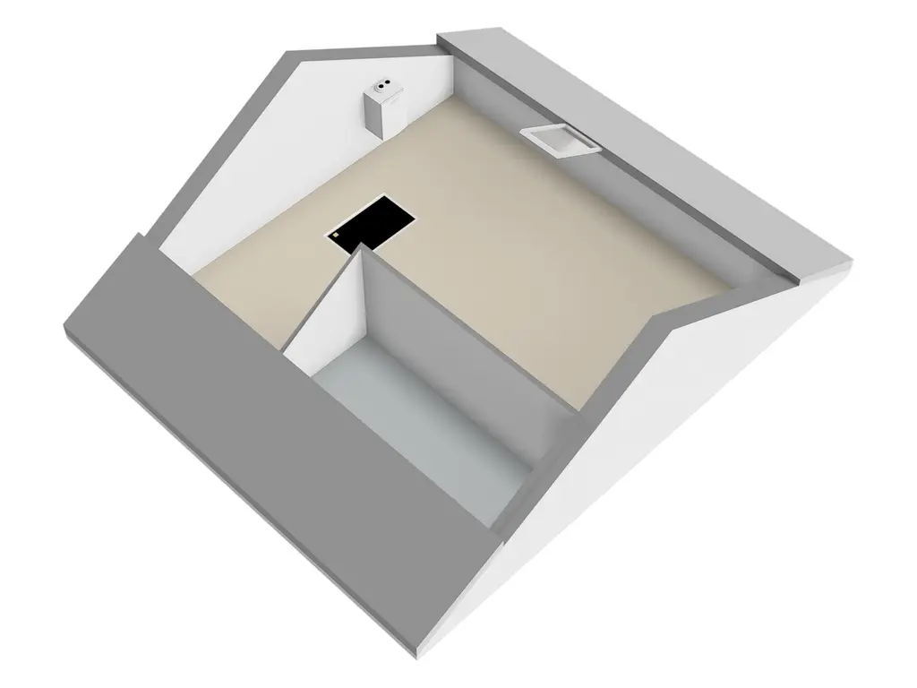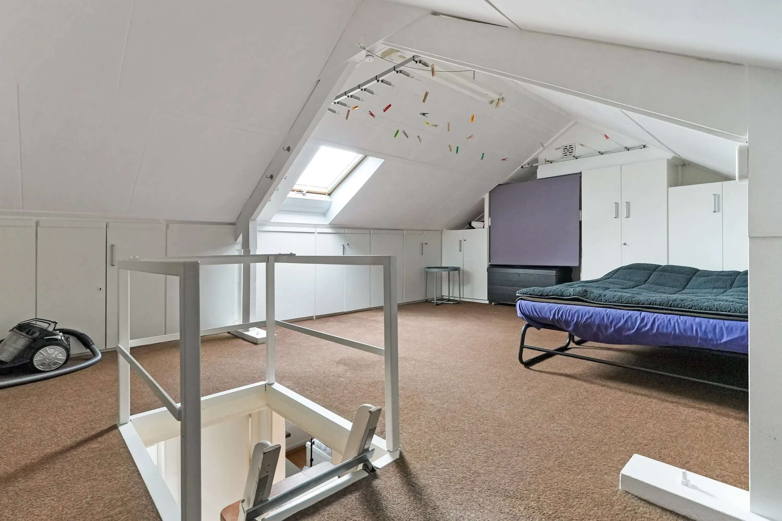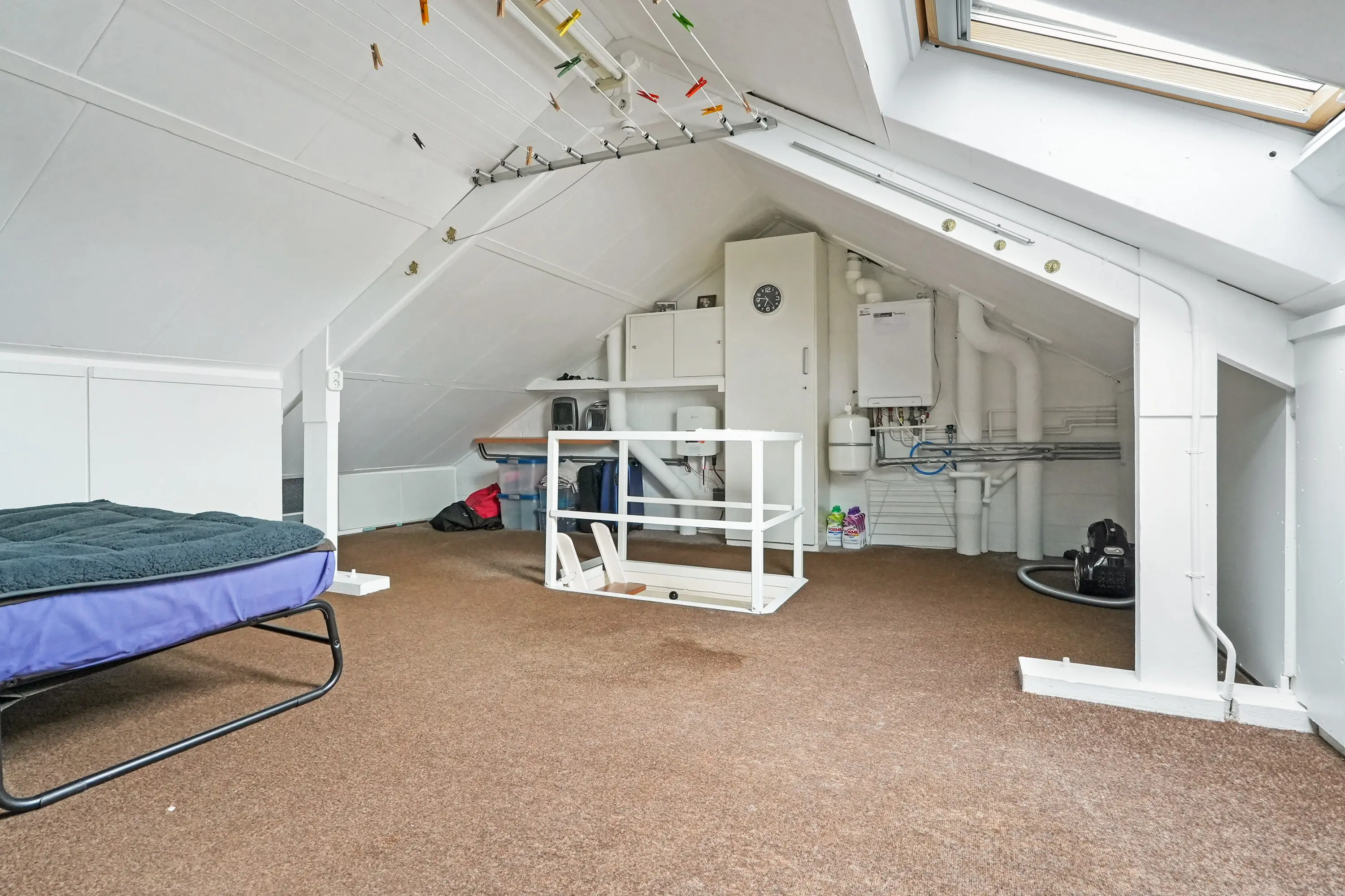De tweede verdieping beschikt over een dakraam voor daglicht en ventilatie. Hier vindt u de cv-installatie (Intergas, 2023) en de omvormer voor de zonnepanelen. Momenteel wordt deze verdieping gebruikt als praktische bergzolder – ideaal voor extra opslag.