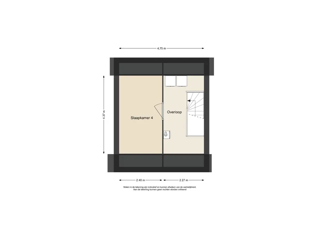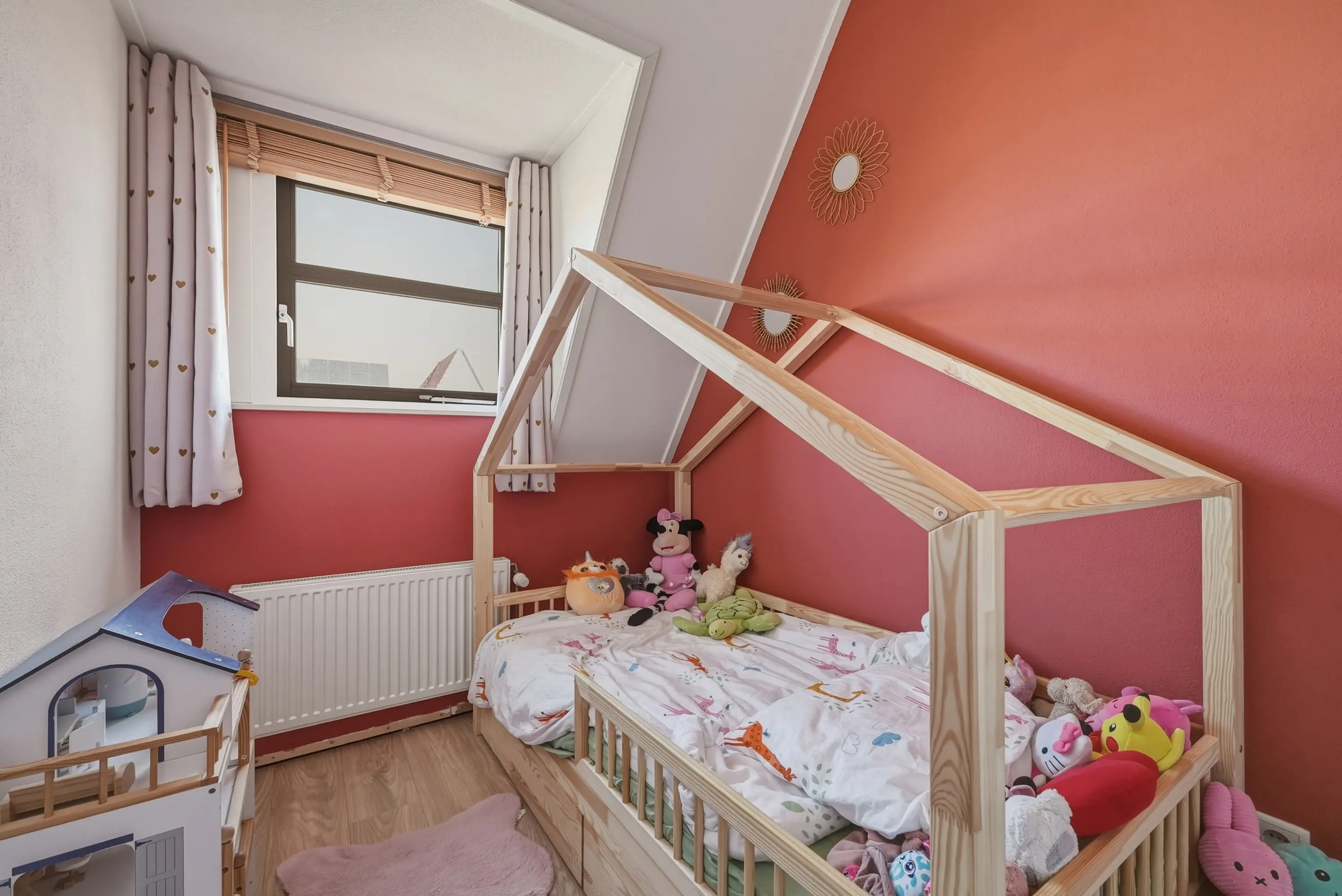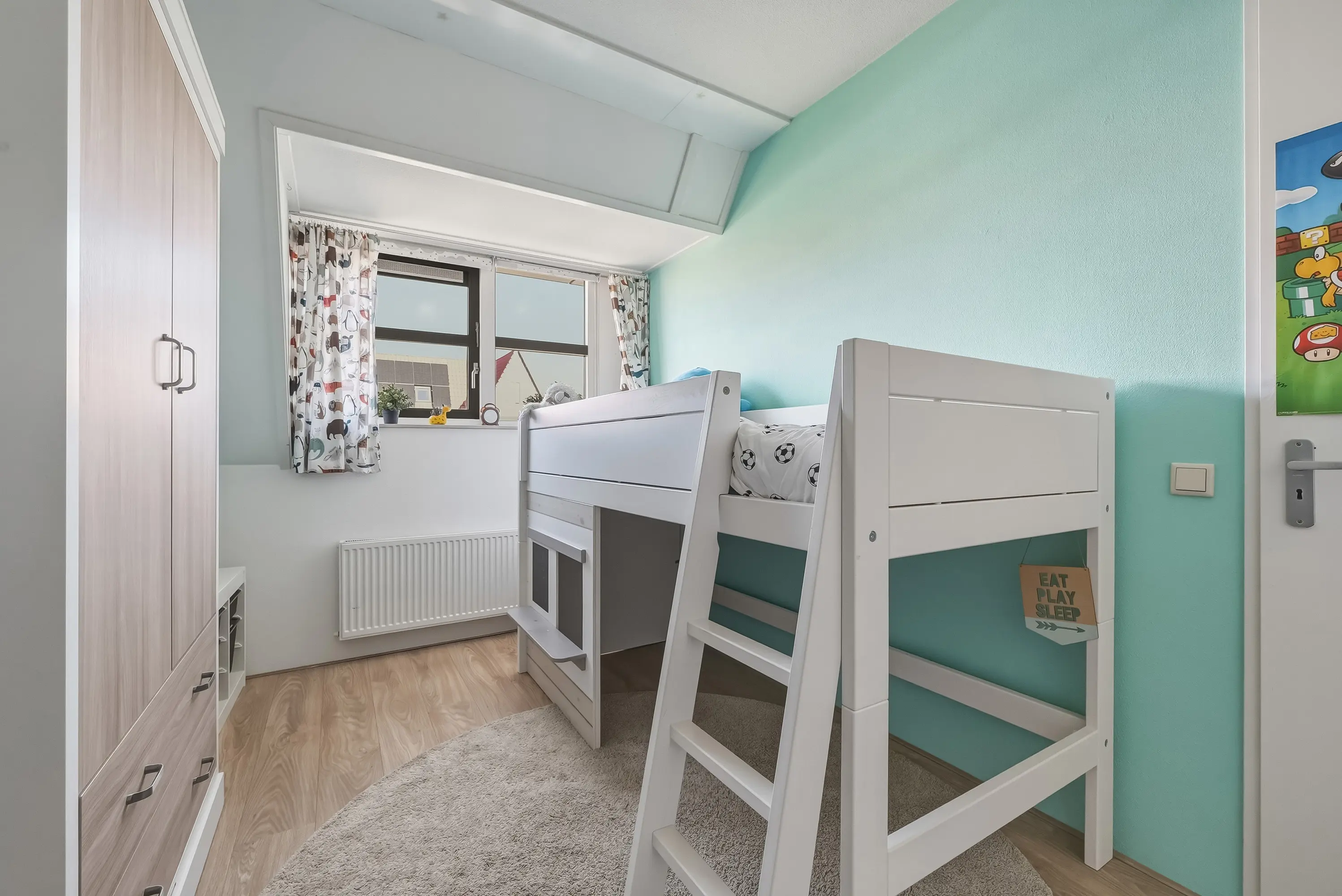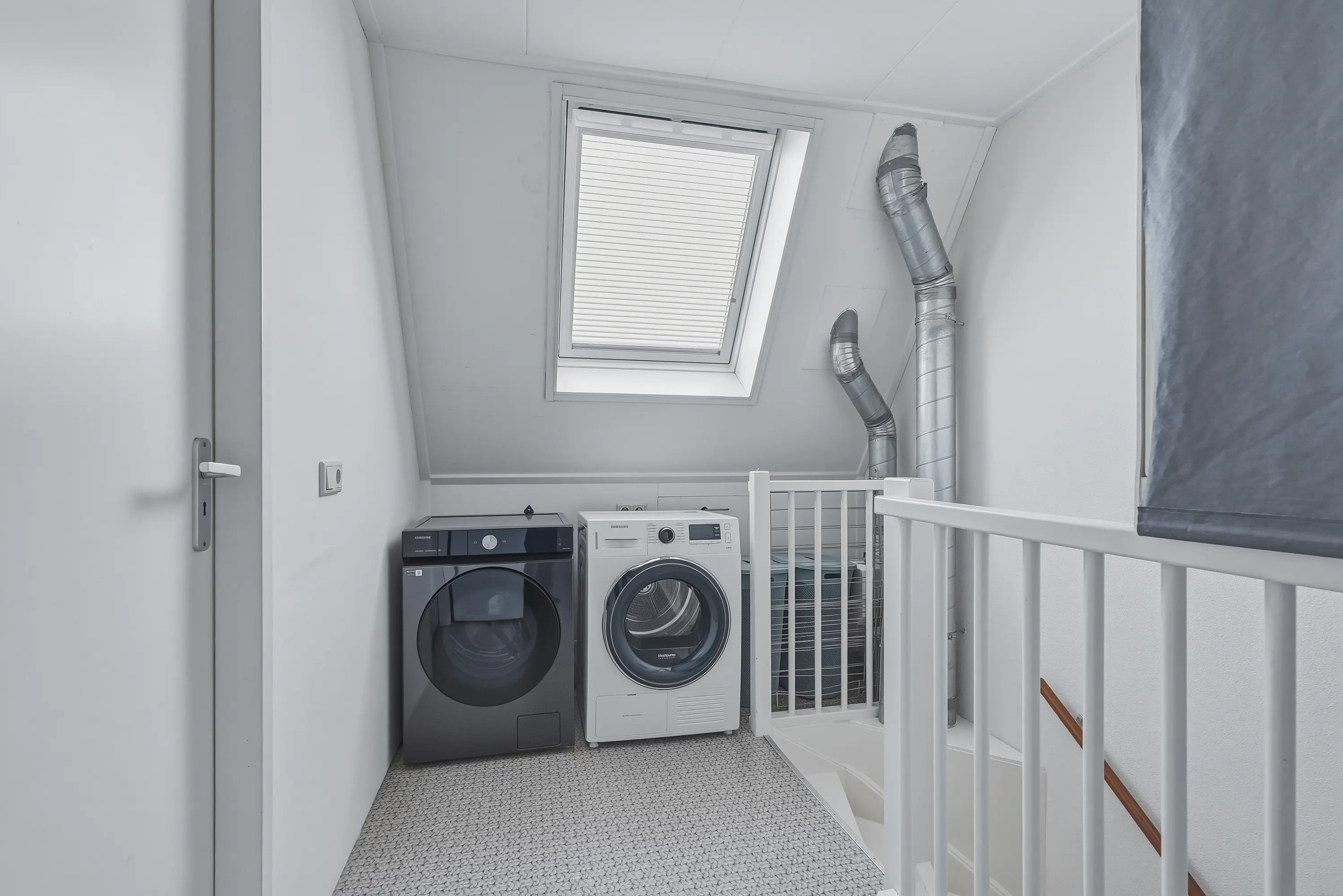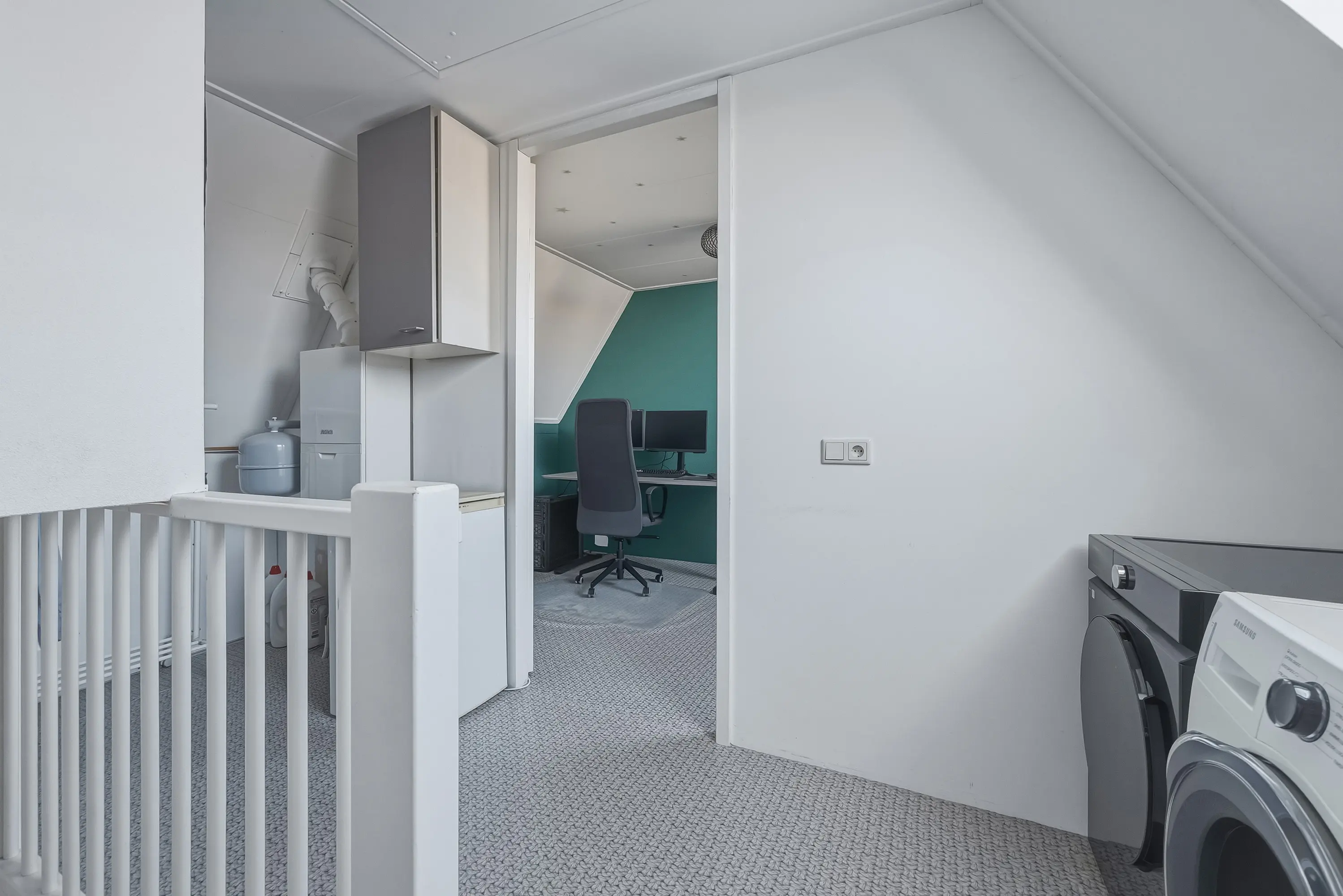 Bereikbaar via vaste trap treft u de overloop die toegang verleent tot de 4e slaapkamer. Eveneens een ruime slaapkamer met een fantastische nokhoogte, waardoor u over nog eens een extra opbergzolder beschikt. Deze zolder is bereikbaar via een vlizotrap. Op de overloop bevindt zich de cv-opstelling en de wasmachine- en drogeropstelling. De overloop en de slaapkamer zijn voorzien van een groot dakraam, wat zorgt voor een fijne lichtinval.