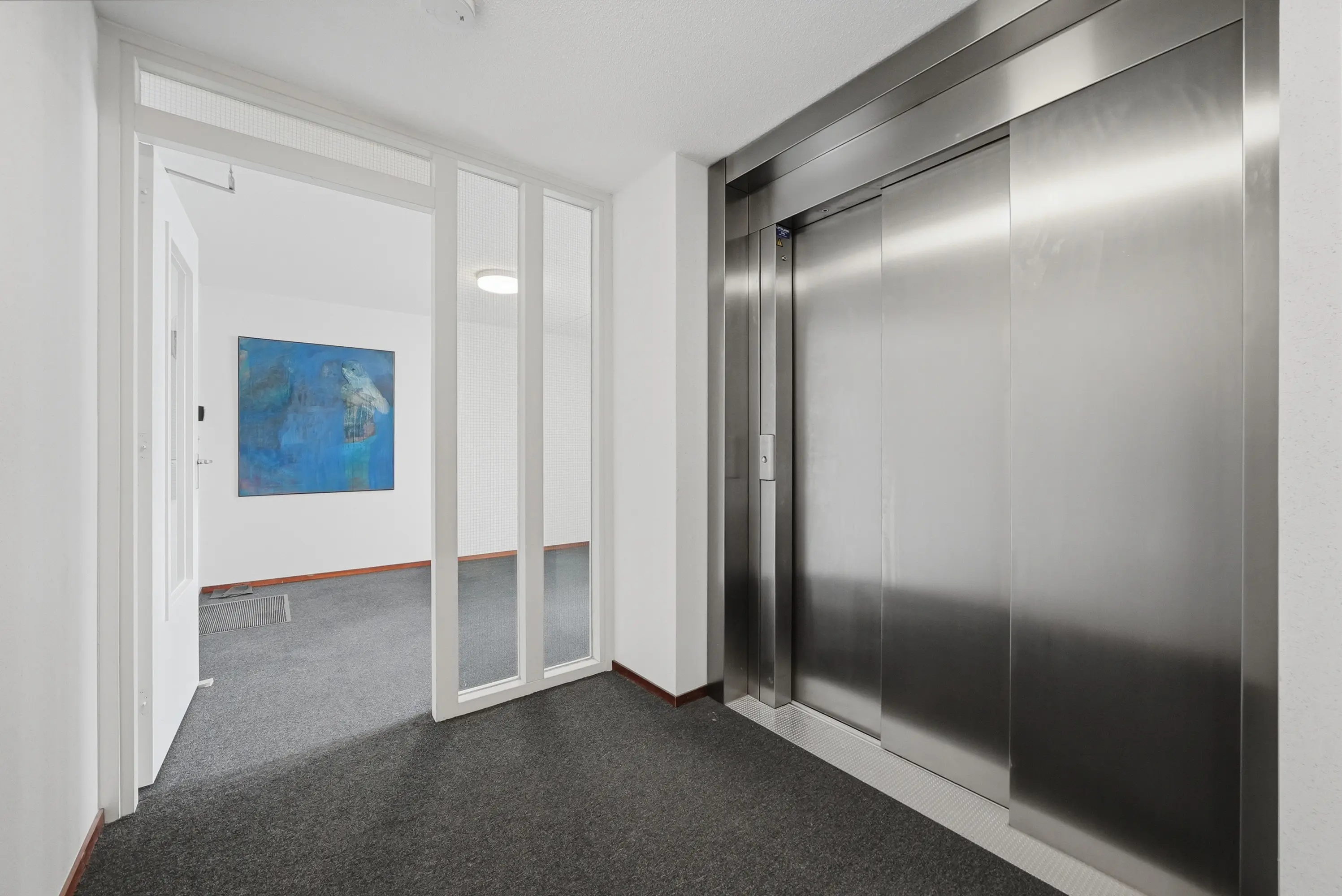 Gemeenschappelijke entree en hal met trappenhuis en lift.