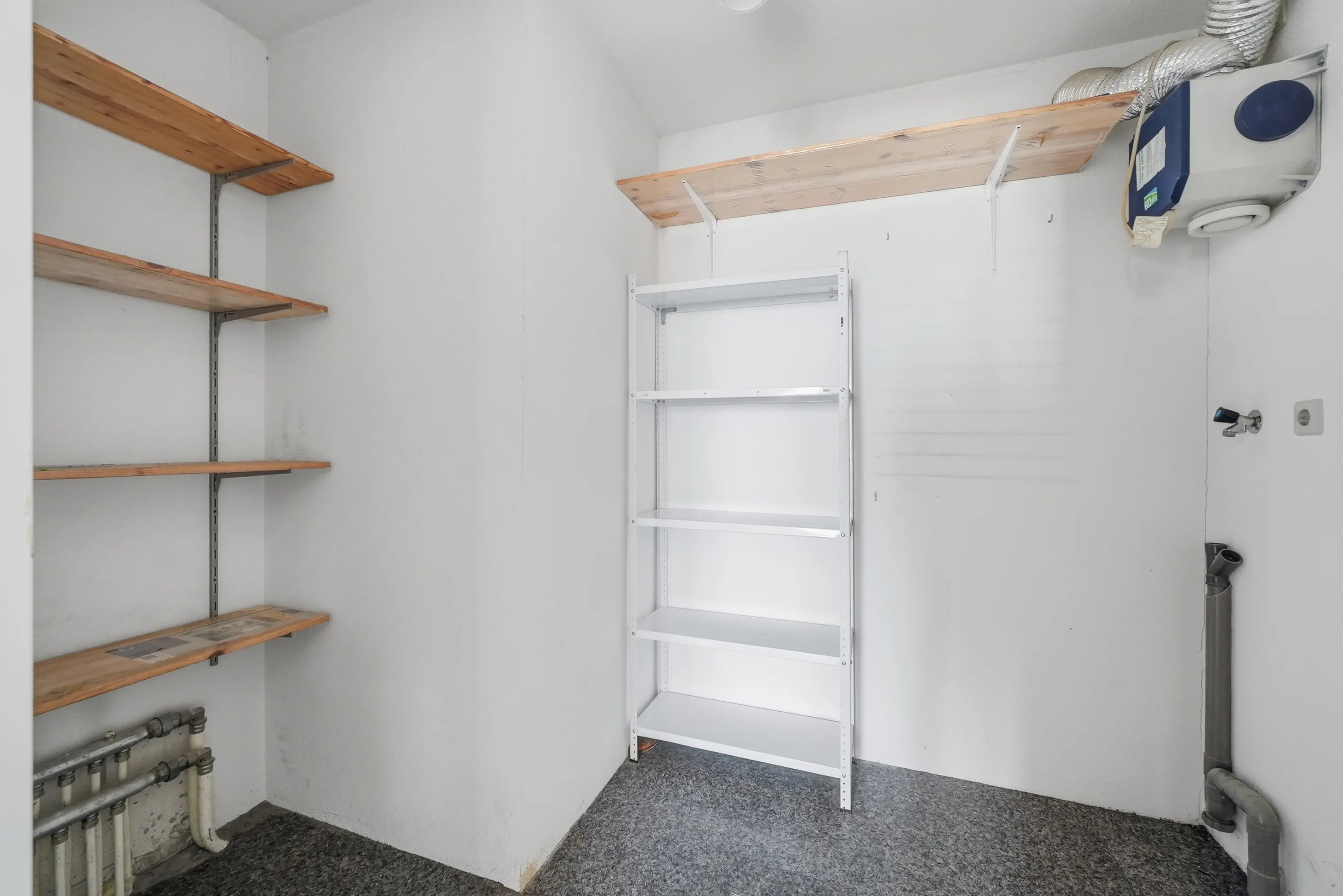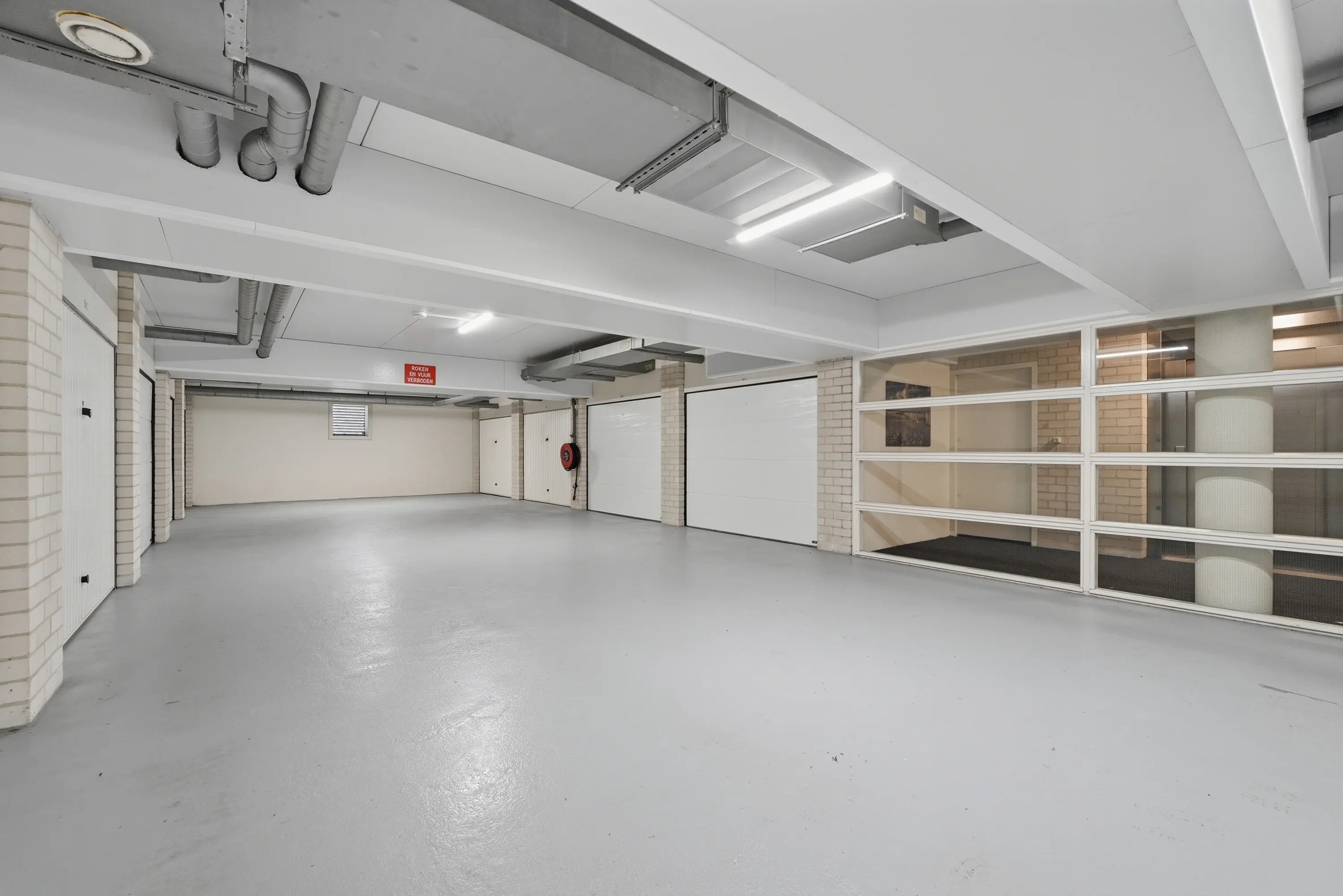 In de ondergelegen kelder bevindt zich de eigen afsluitbare garagebox met elektra en verlichting.