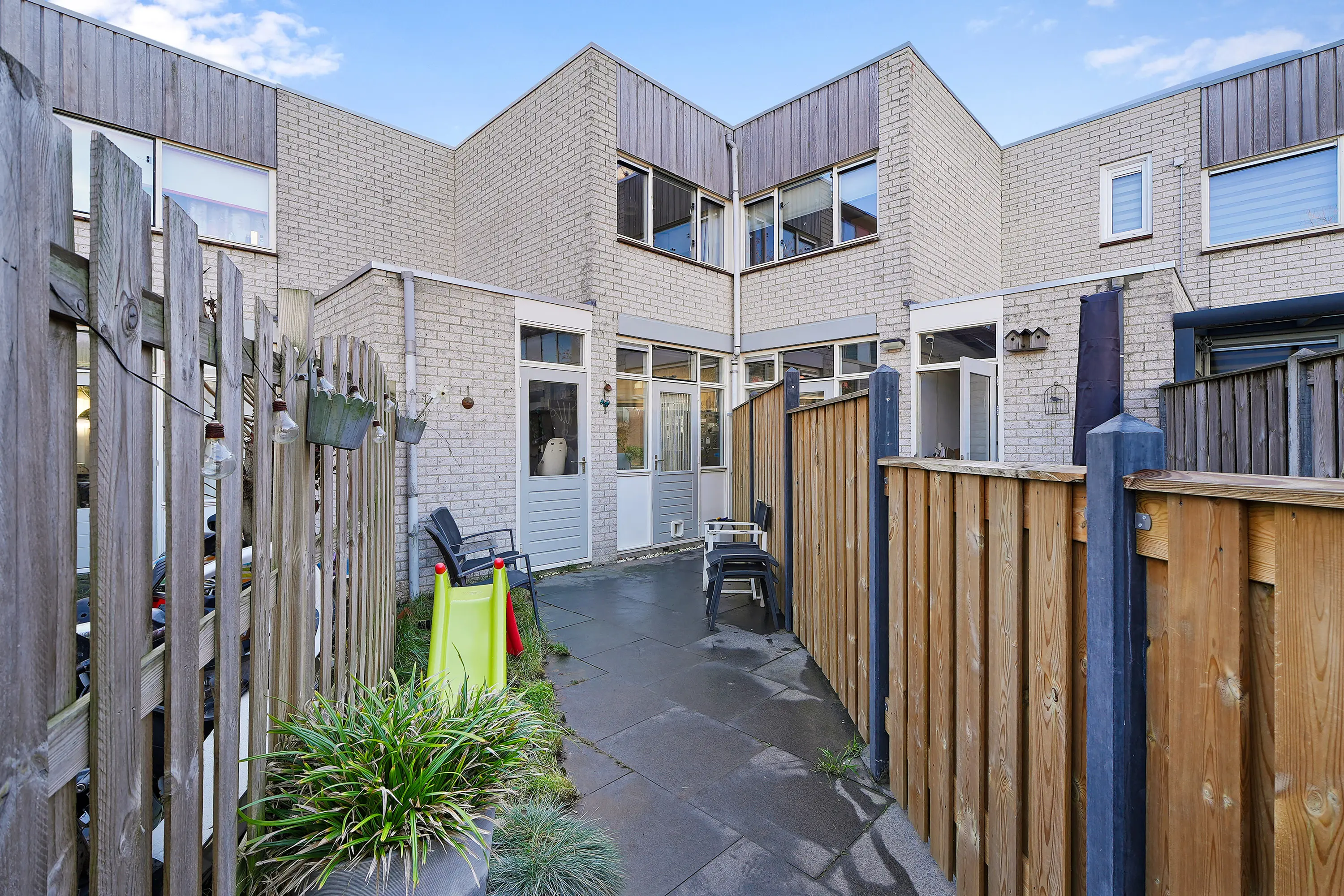De achtertuin is gelegen op het noordwesten, waardoor u in de middag en avond van de zon kunt genieten. Aan de achterzijde van de woning bevindt zich een stenen berging, ideaal voor het stallen van fietsen en tuinspullen. De tuin beschikt over een vrije achterom en aan de achterzijde is parkeergelegenheid voor de auto aanwezig.