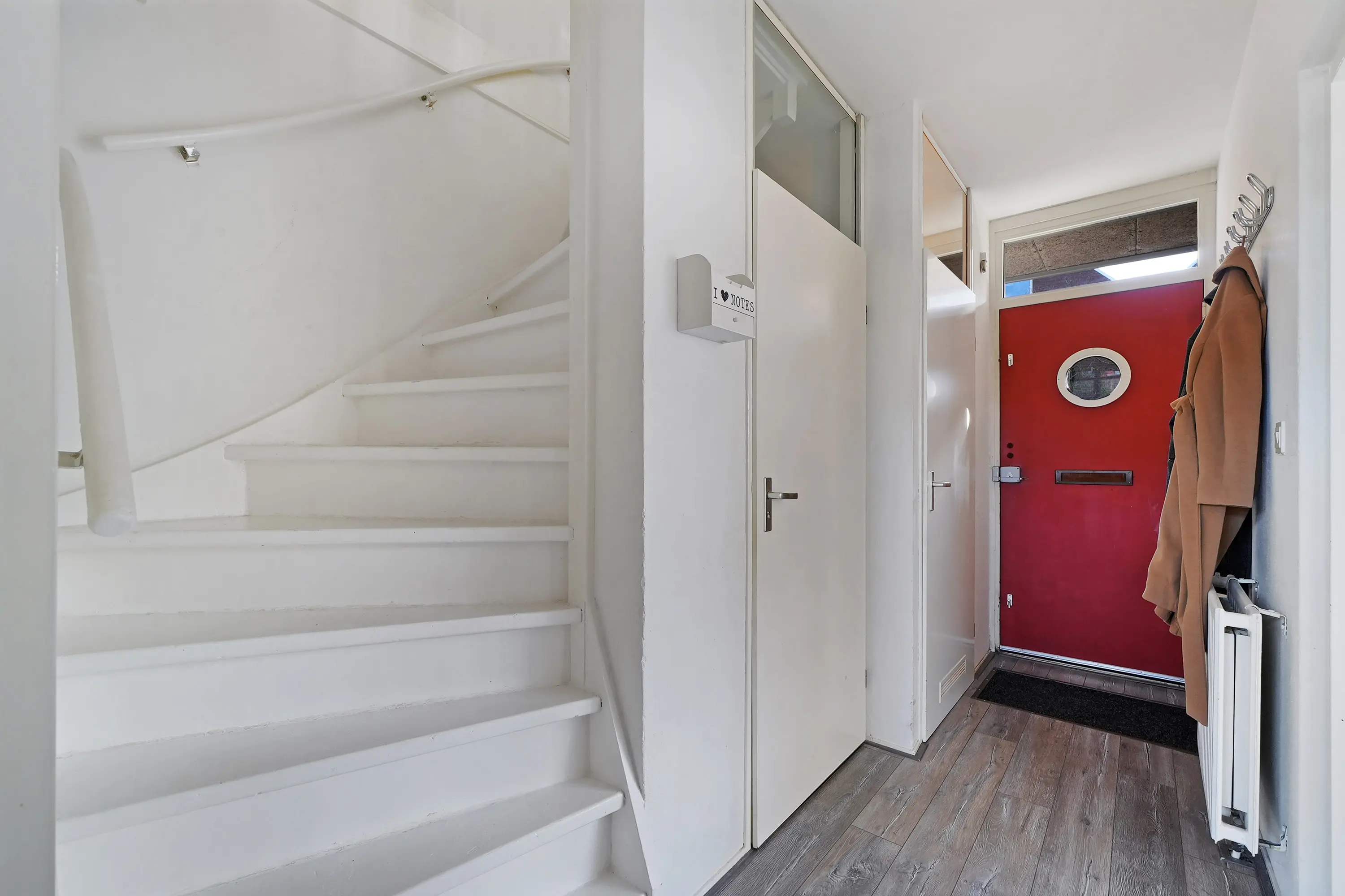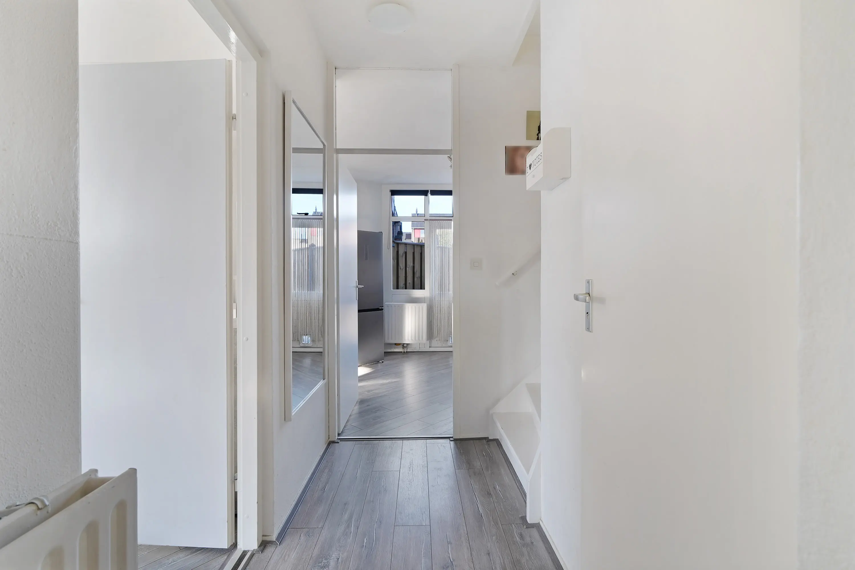 U betreedt de woning via de hal, waar zich de garderobe, het toilet en de trapopgang bevinden. Vanuit de hal heeft u toegang tot zowel de woonkamer aan de voorzijde als de keuken aan de achterzijde. De woonkamer is ruim opgezet en geniet van veel daglicht dankzij de grote raampartijen. De open keuken, gelegen aan de achterzijde, is vernieuwd in 2020 en biedt toegang tot de achtertuin.