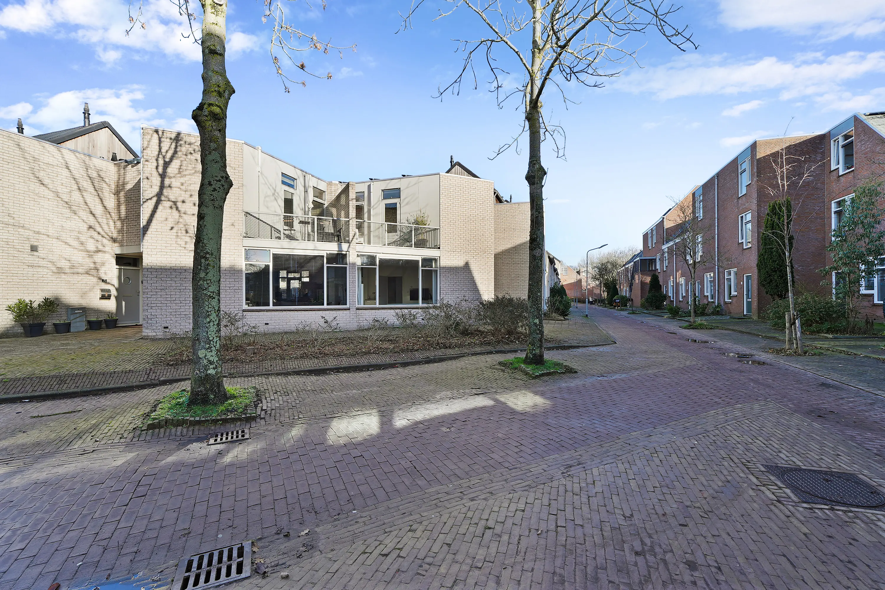 De woning is gesitueerd in een bocht en kenmerkt zich door de grote raampartijen, wat zorgt voor veel lichtinval en een prettig uitzicht over de voorliggende straat. De woning beschikt over een ruime woonkamer met open keuken, drie goed afgewerkte slaapkamers en een badkamer op de eerste verdieping. Het bouwjaar is 1980. De woning is voorzien van muur- en dakisolatie, dubbel glas en acht zonnepanelen (geplaatst in 2021).