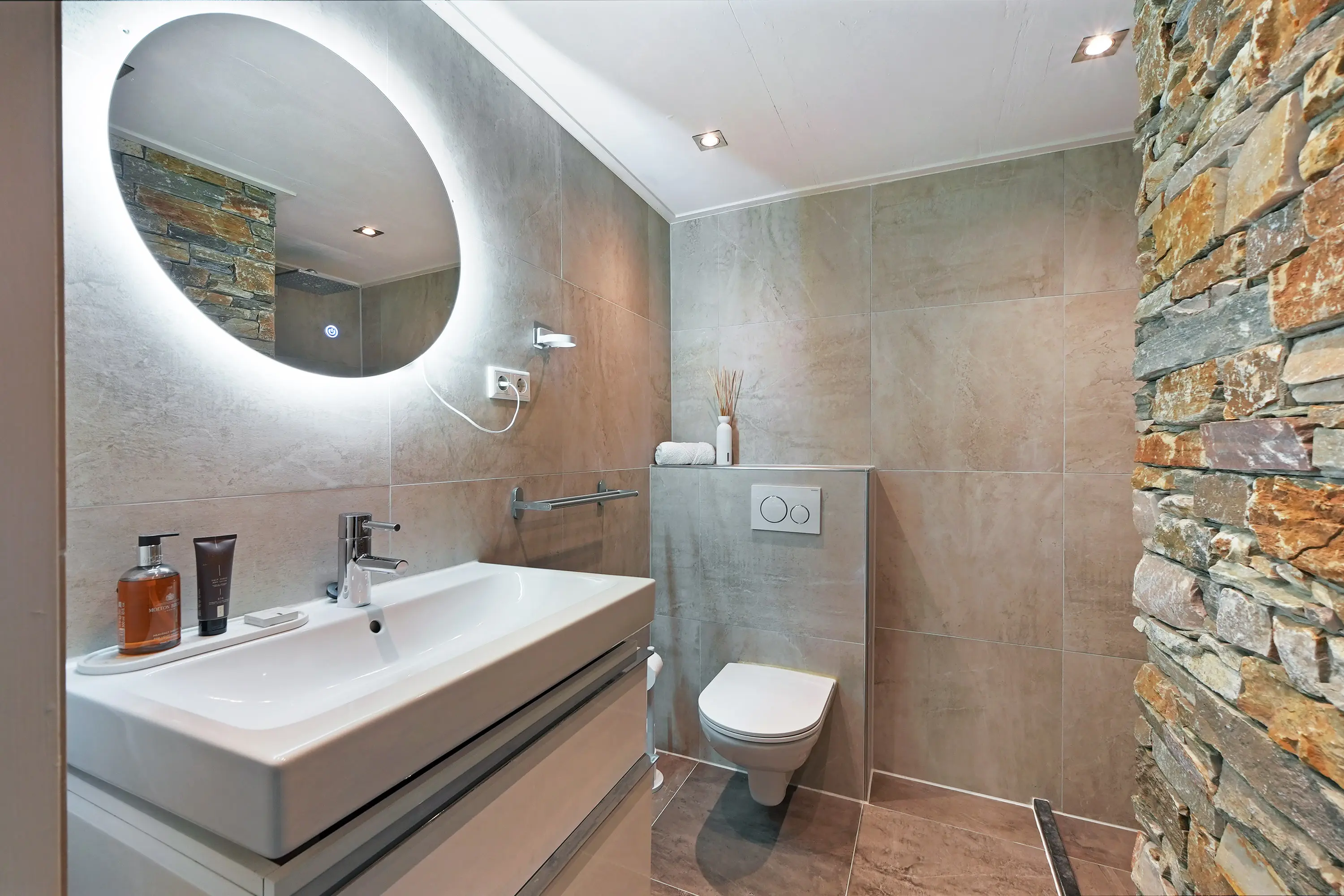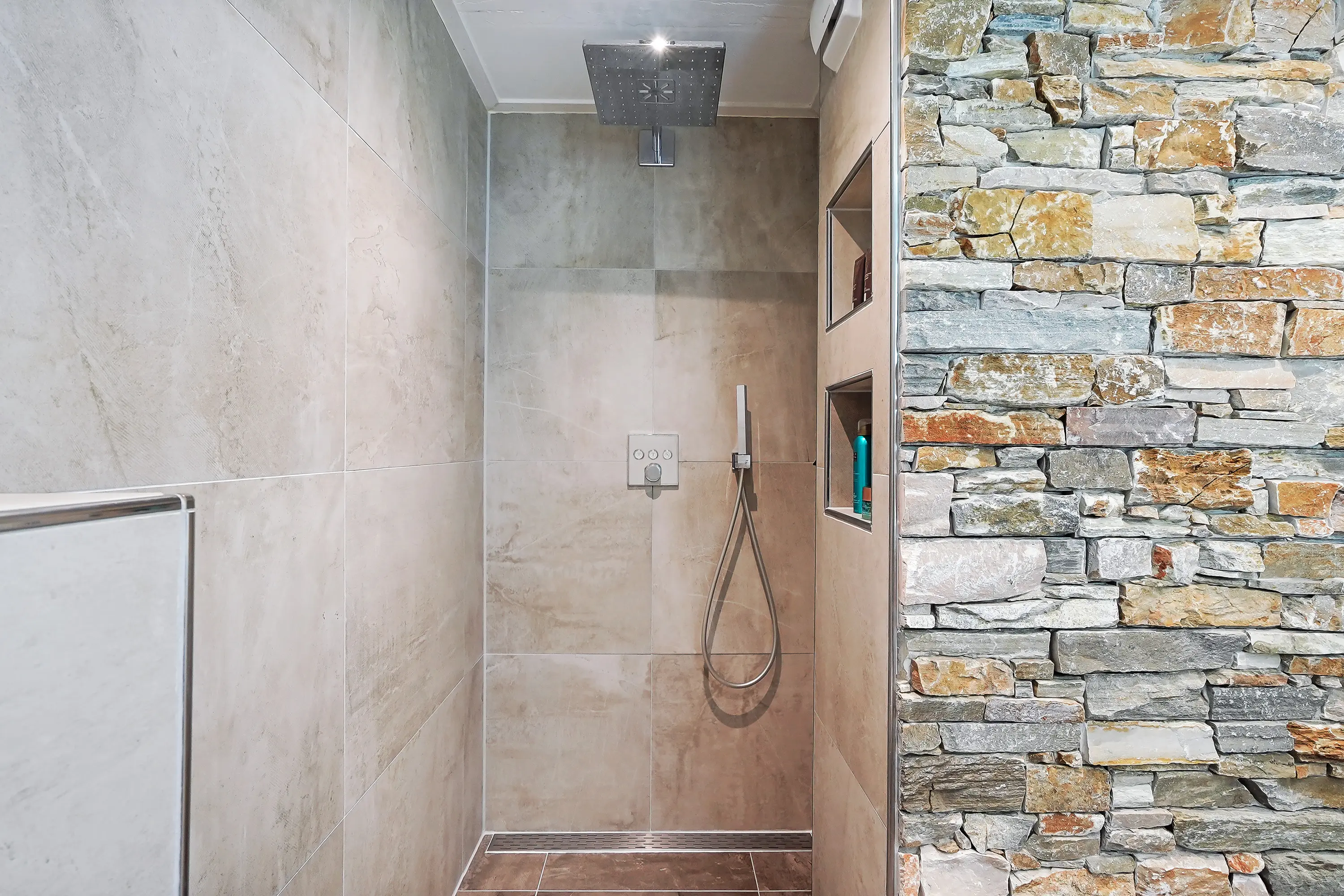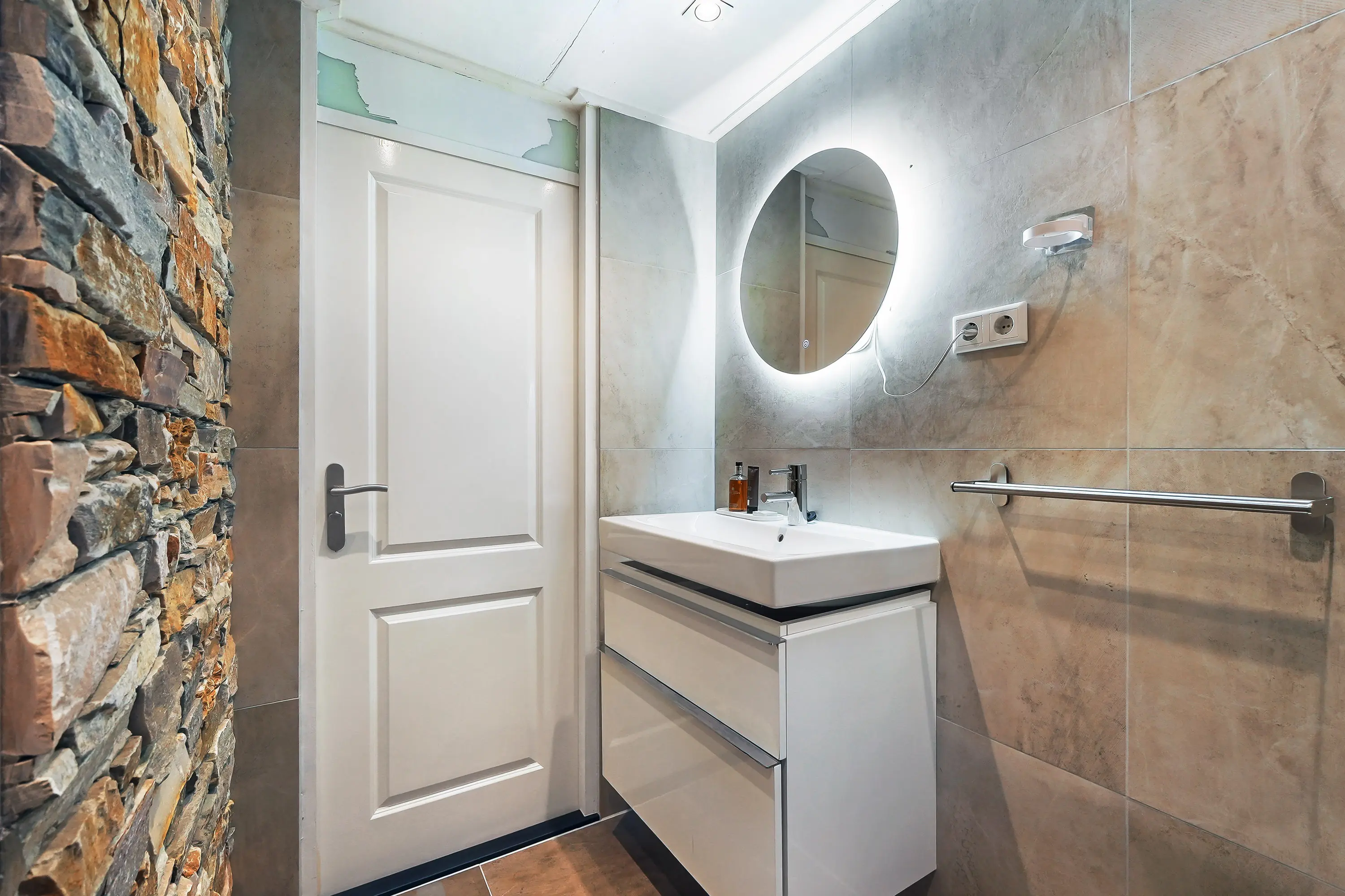 De badkamer is in 2019 vernieuwd en voorzien van een wastafel, toilet en een ruime inloopdouche. De ruimte is afgewerkt met hoogwaardige en stijlvolle wand- en vloertegels. Een badkamer van dit niveau komt u niet vaak tegen!