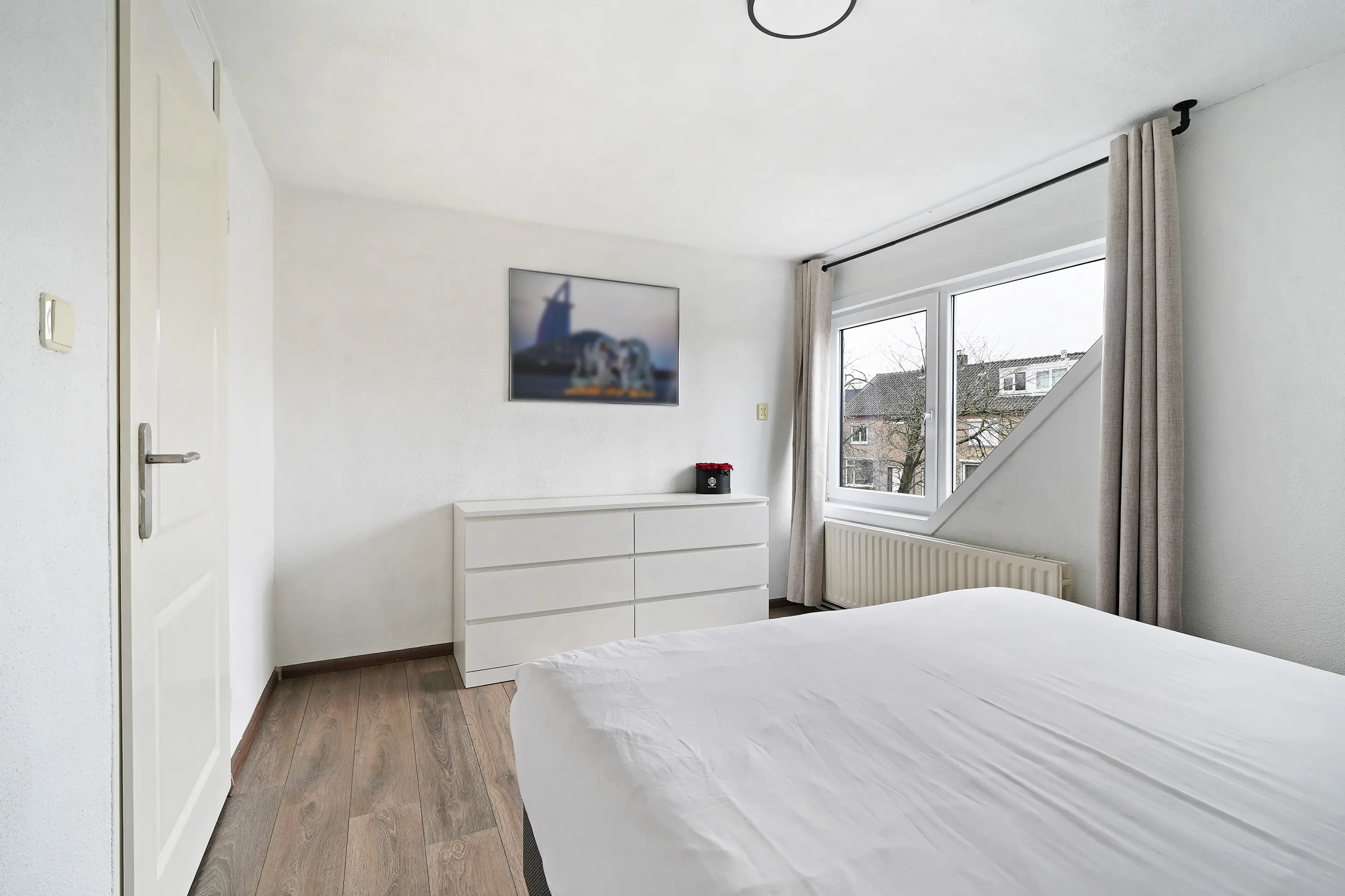 De ouderslaapkamer is bovendien uitgerust met een airco-unit, die tijdens de warme zomermaanden zorgt voor een aangename temperatuur op de verdieping.