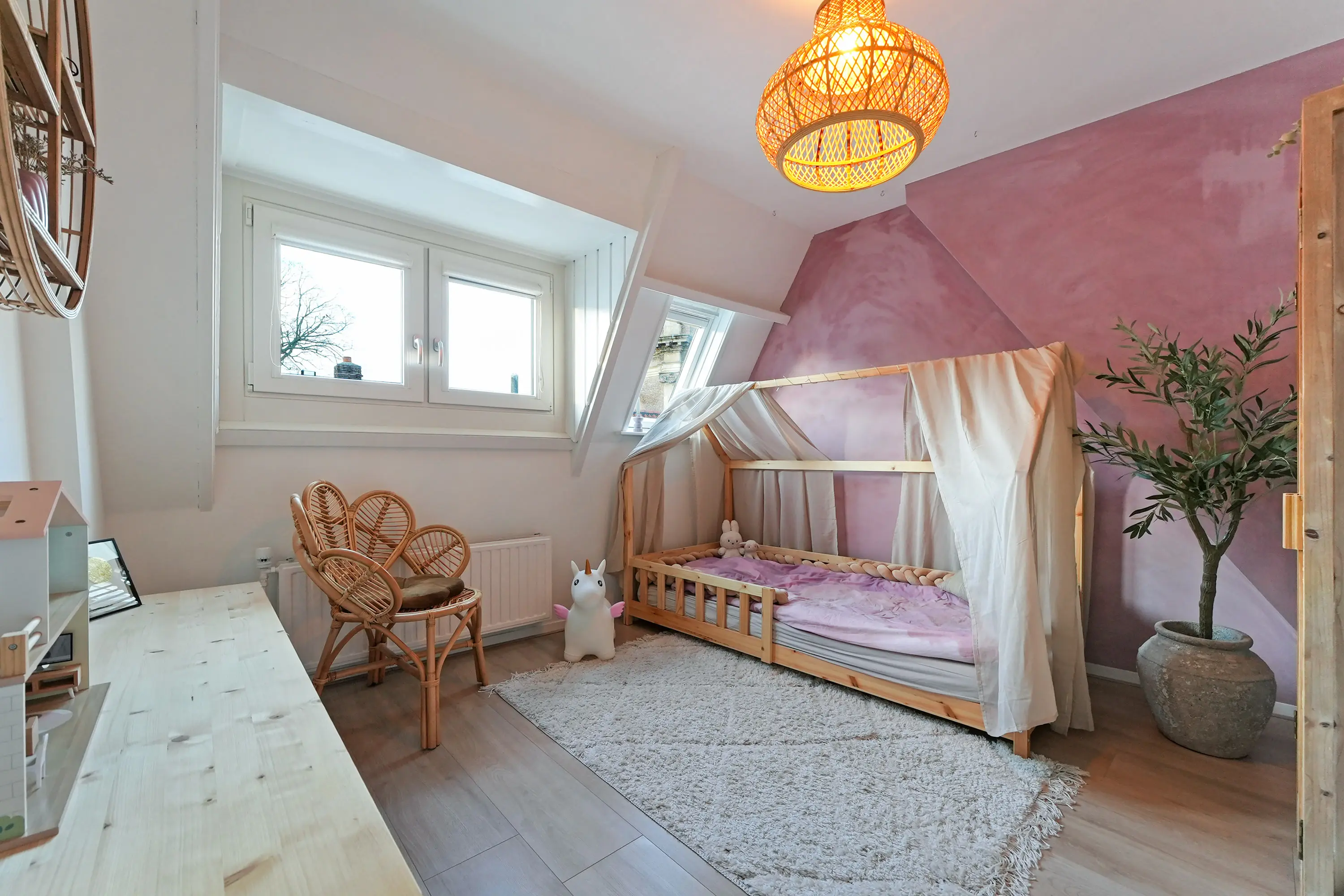 Via de vaste trap bereikt u de overloop die toegang verleent tot drie prachtig afgewerkte slaapkamers. Voor binnenstad-begrippen is de ruimte hier ronduit uniek: alle kamers zijn royaal bemeten en dankzij de dakkapellen heerlijk licht en ruimtelijk. De twee grootste slaapkamers liggen aan de straat- en tuinzijde en bieden volop mogelijkheden voor een luxe master bedroom, een kinderkamer of een stijlvolle logeerkamer. Ook de derde kamer is verrassend ruim en praktisch ingedeeld.