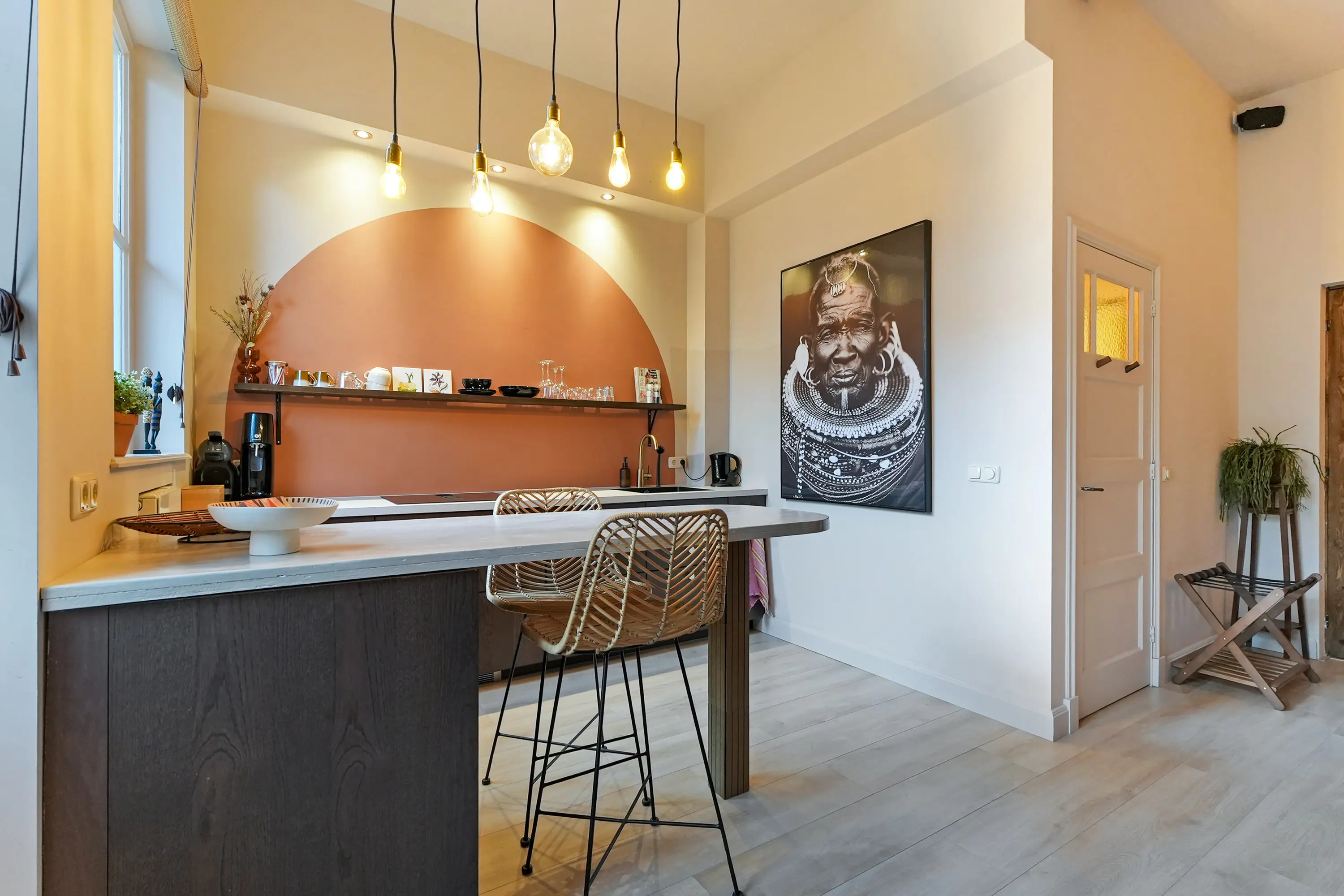 De voormalige smederij is omgetoverd tot een loft-achtig appartement met hoge plafonds, speelse indeling en een unieke Oosterse uitstraling. Authentiek én eigentijds, pal naast de Oostkerk en op loopafstand van winkels en restaurants. De woonkamer met zithoek en keuken met bar grenst aan de stadstuin. Het sanitair en de keuken zijn hagelnieuw en stijlvol afgewerkt. In de berging vindt u een nette wasmachine- en drogeropstelling.