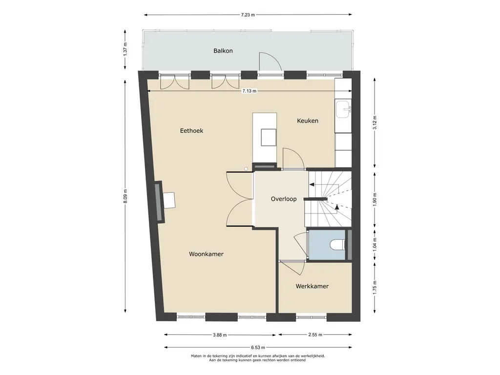 Deze informatie is door ons met de nodige zorgvuldigheid samengesteld. Onzerzijds wordt echter geen enkele aansprakelijkheid aanvaard voor enige onvolledigheid, onjuistheid of anderszins, dan wel de gevolgen daarvan. Alle opgegeven maten en oppervlakten zijn indicatief.