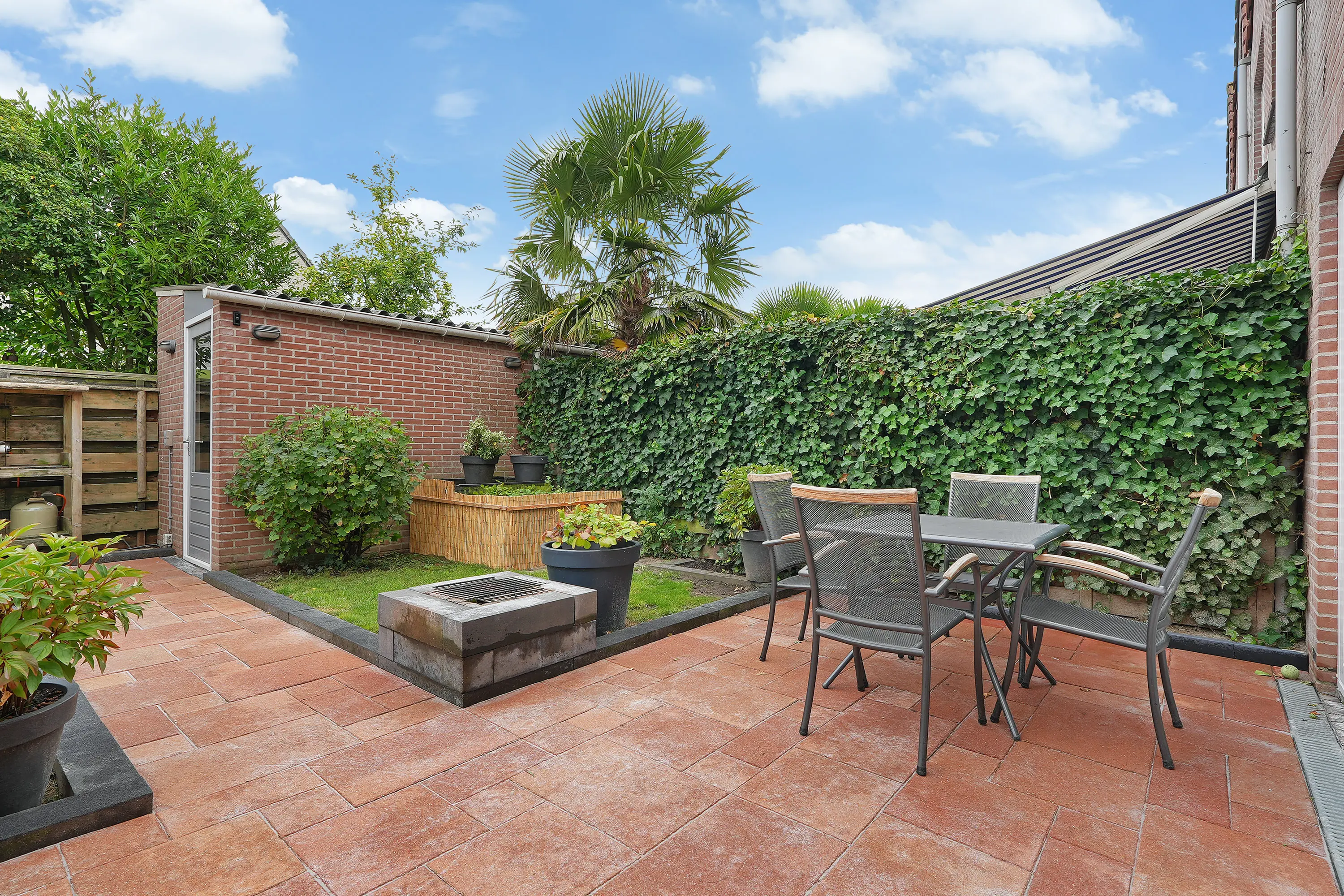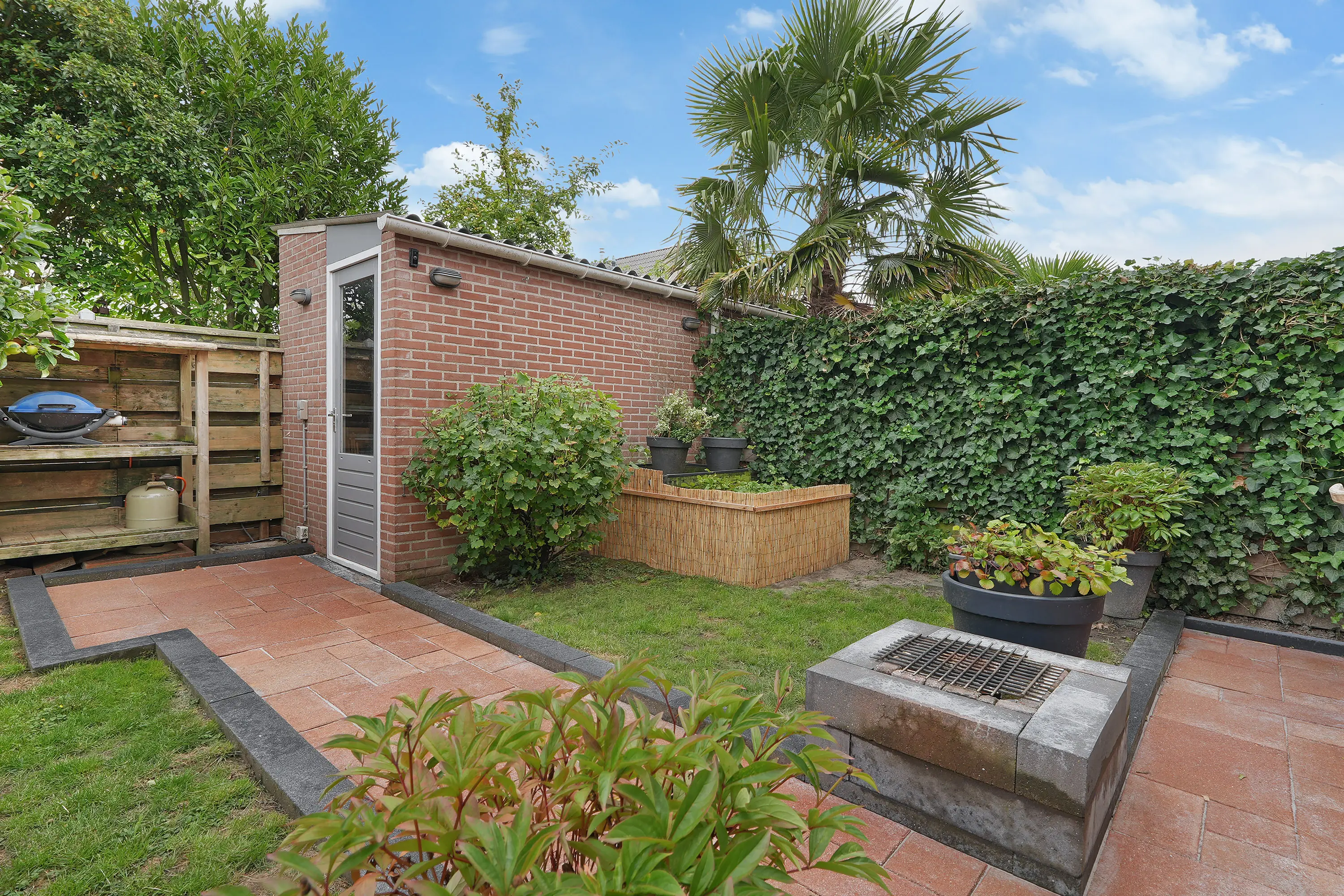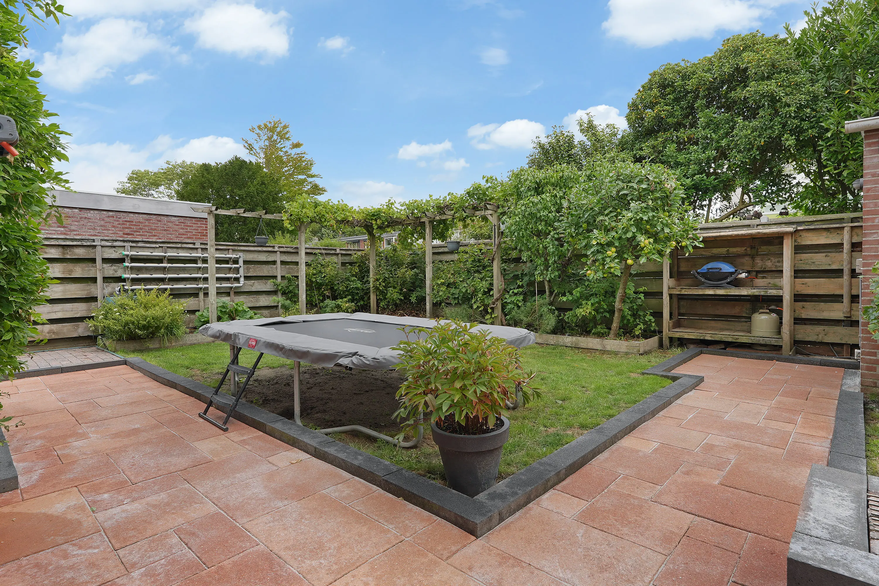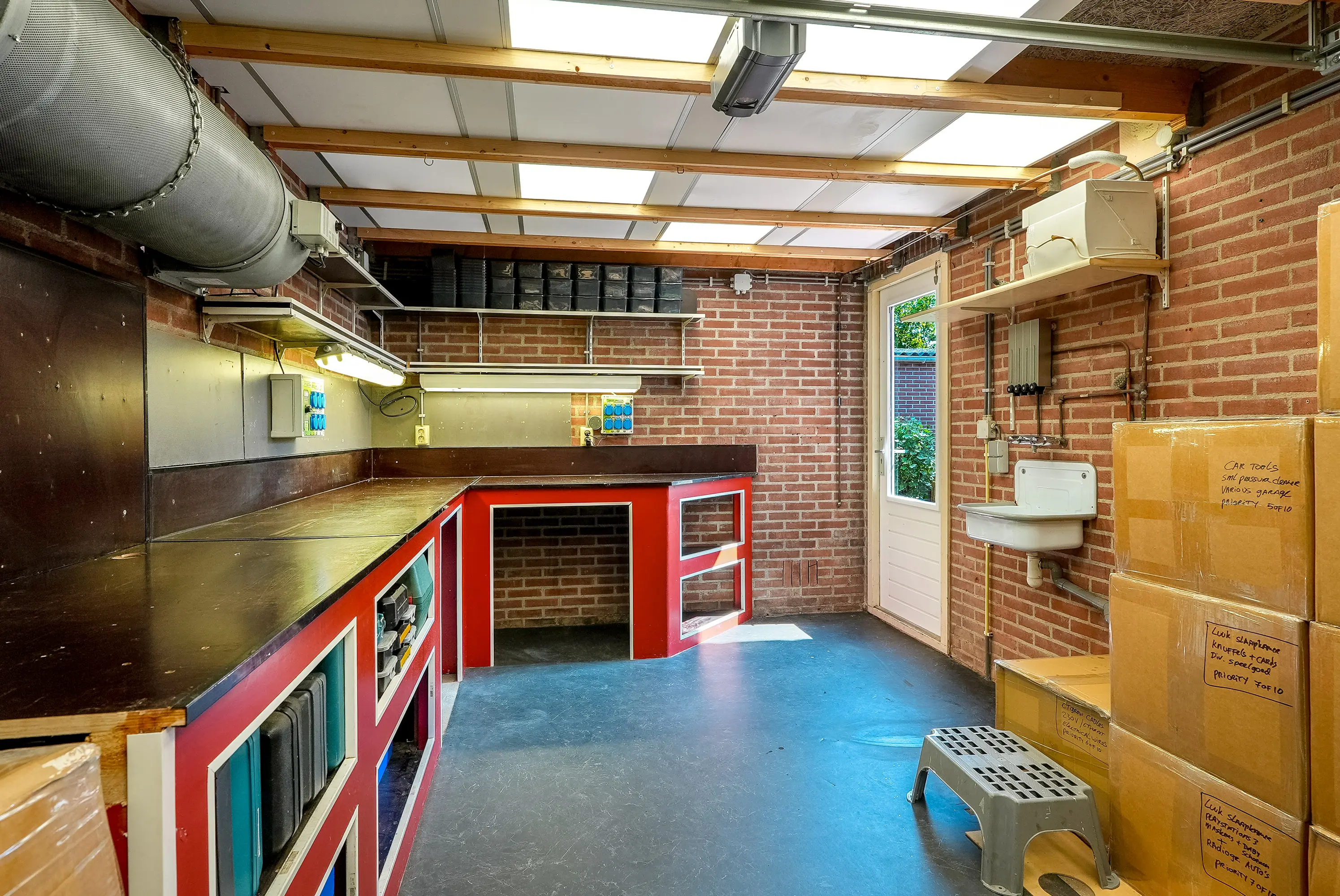 De tuin is voor deze locatie uitzonderlijk ruim met een voor-, zij- en achtertuin. Er is plaats voor 2 auto's en daarnaast voldoende ruimte voor fietsen of scooters. De achtertuin ligt op het oosten en biedt door de omvang vrijwel de hele dag zon. Achterin de tuin staat een schuur. De garage is voorzien van elektra, verwarming, wateraansluiting en een elektrische overheaddeur; de achterdeur is recent vernieuwd. In de tuin treft u diverse beplanting én fruitbomen.