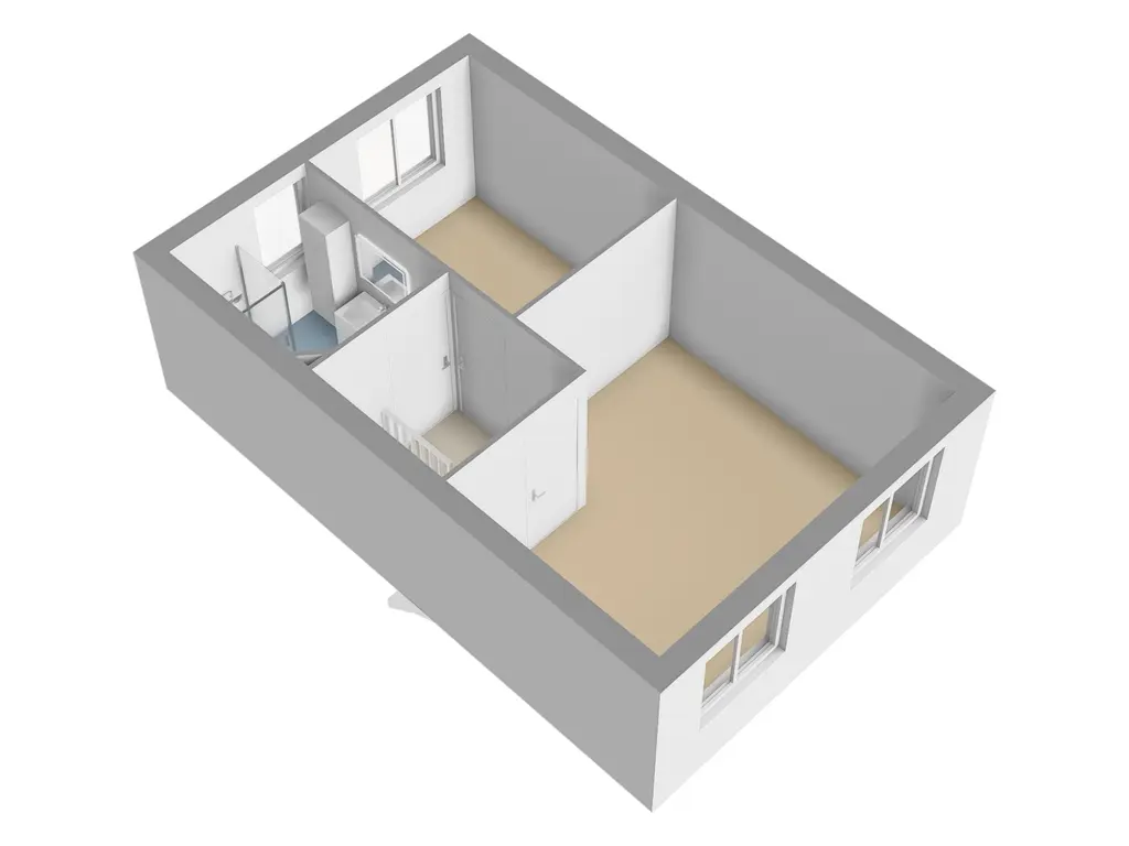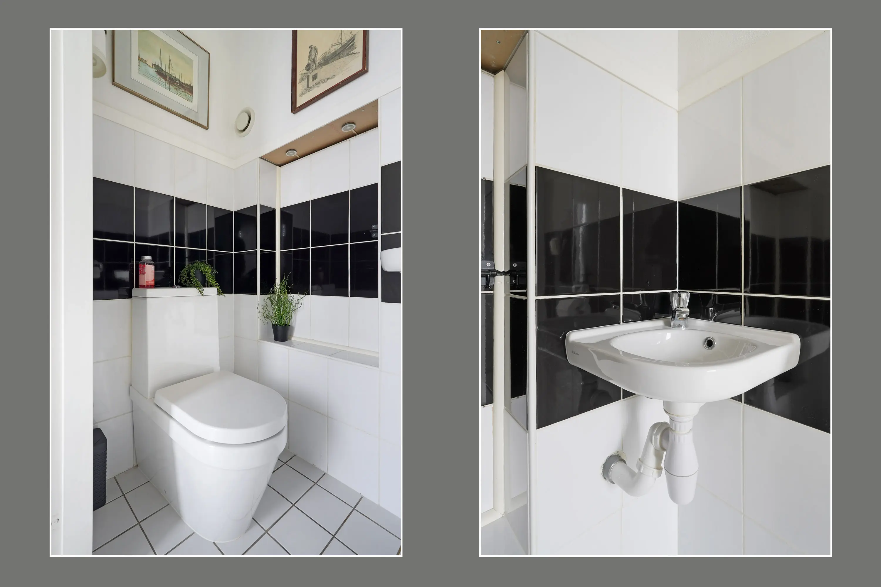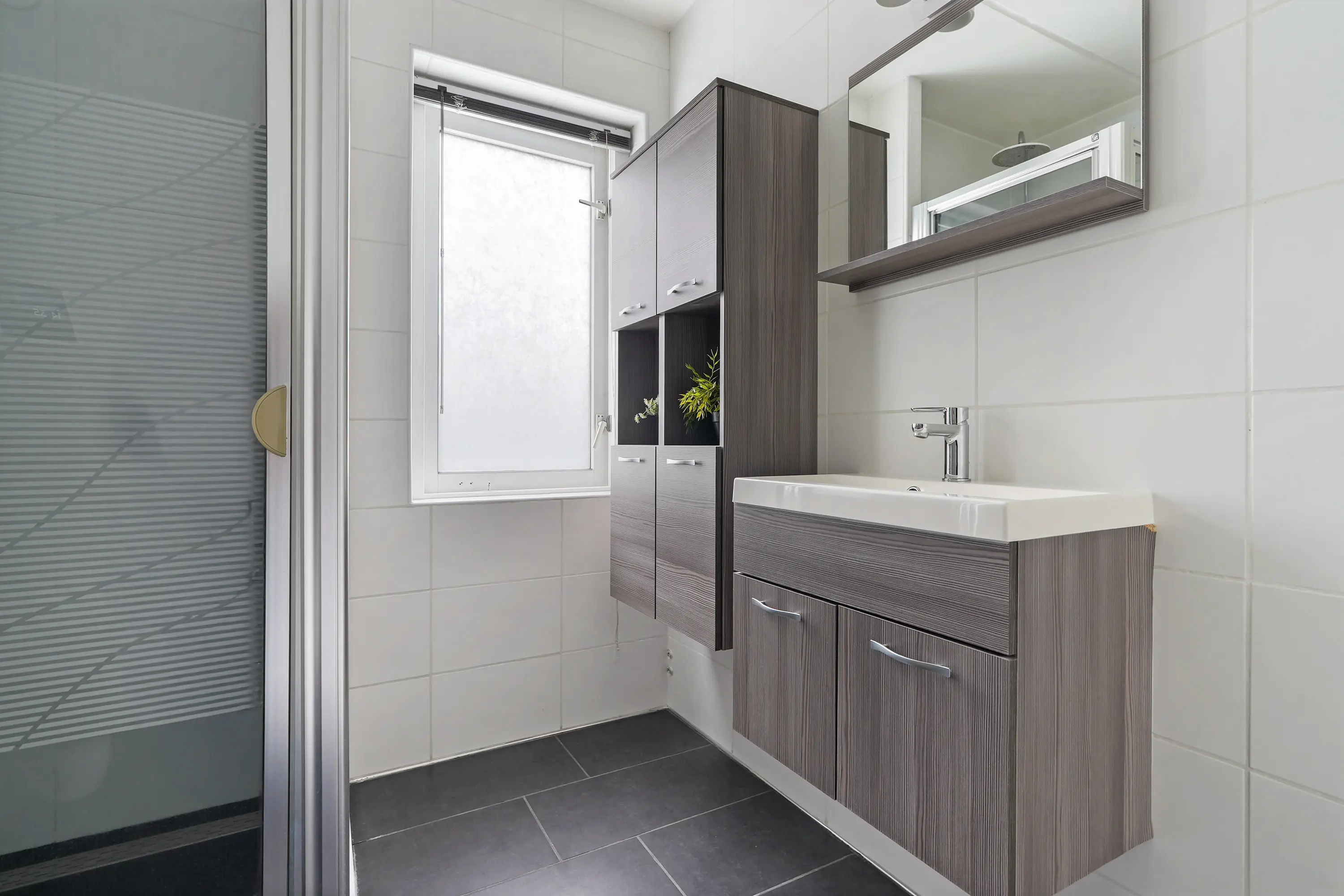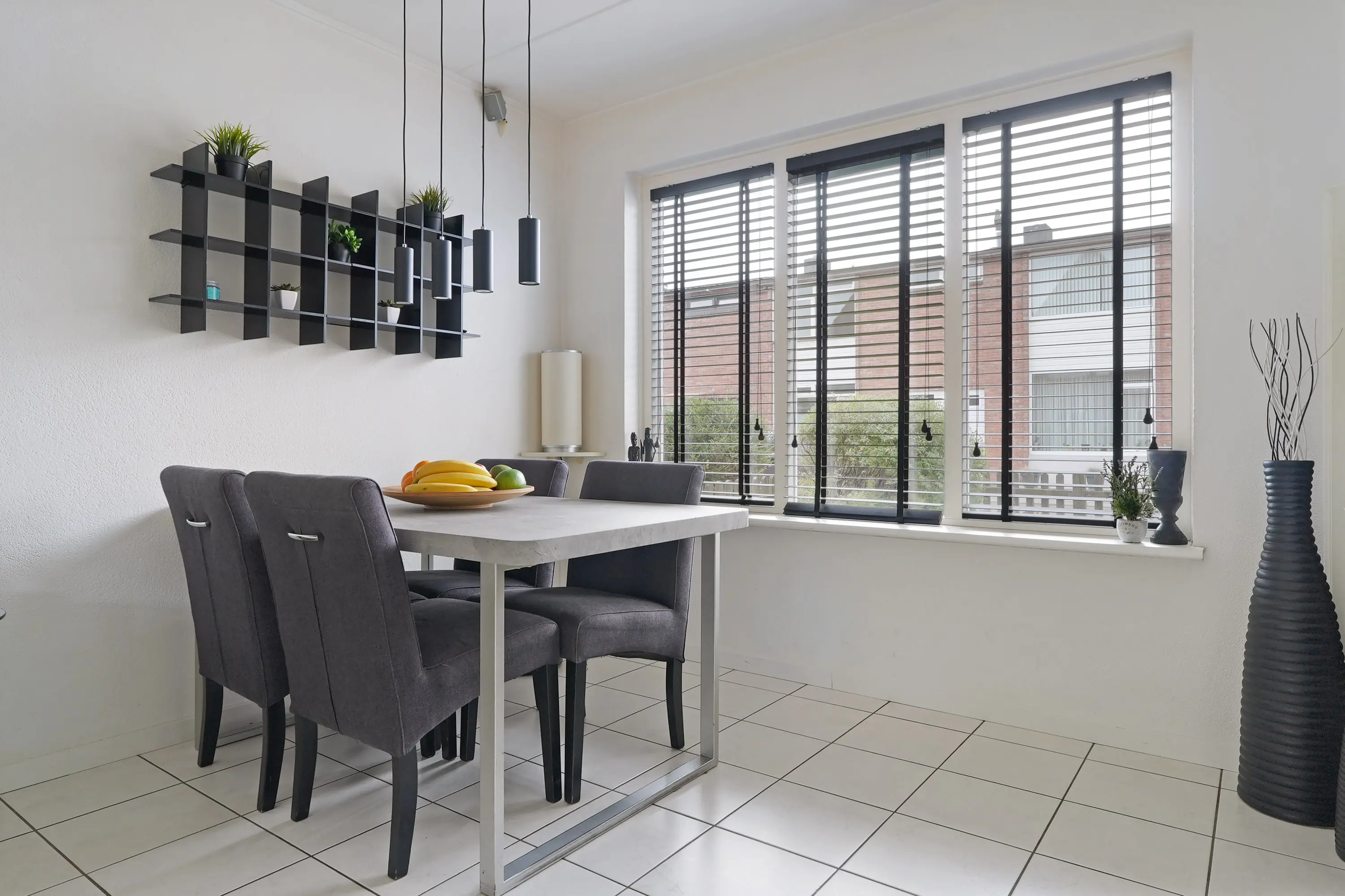 Binnenkomst in de hal met meterkast en toilet (met fonteintje). Vanuit de hal bereikt u de lichte eet- en woonkamer, praktisch ingedeeld en voorzien van veel daglicht dankzij de grote raampartijen. Aan de achterzijde vindt u een schuifpui én een loopdeur vanuit de keuken naar de tuin. De L-vormige keuken is uitgerust met diverse inbouwapparatuur.