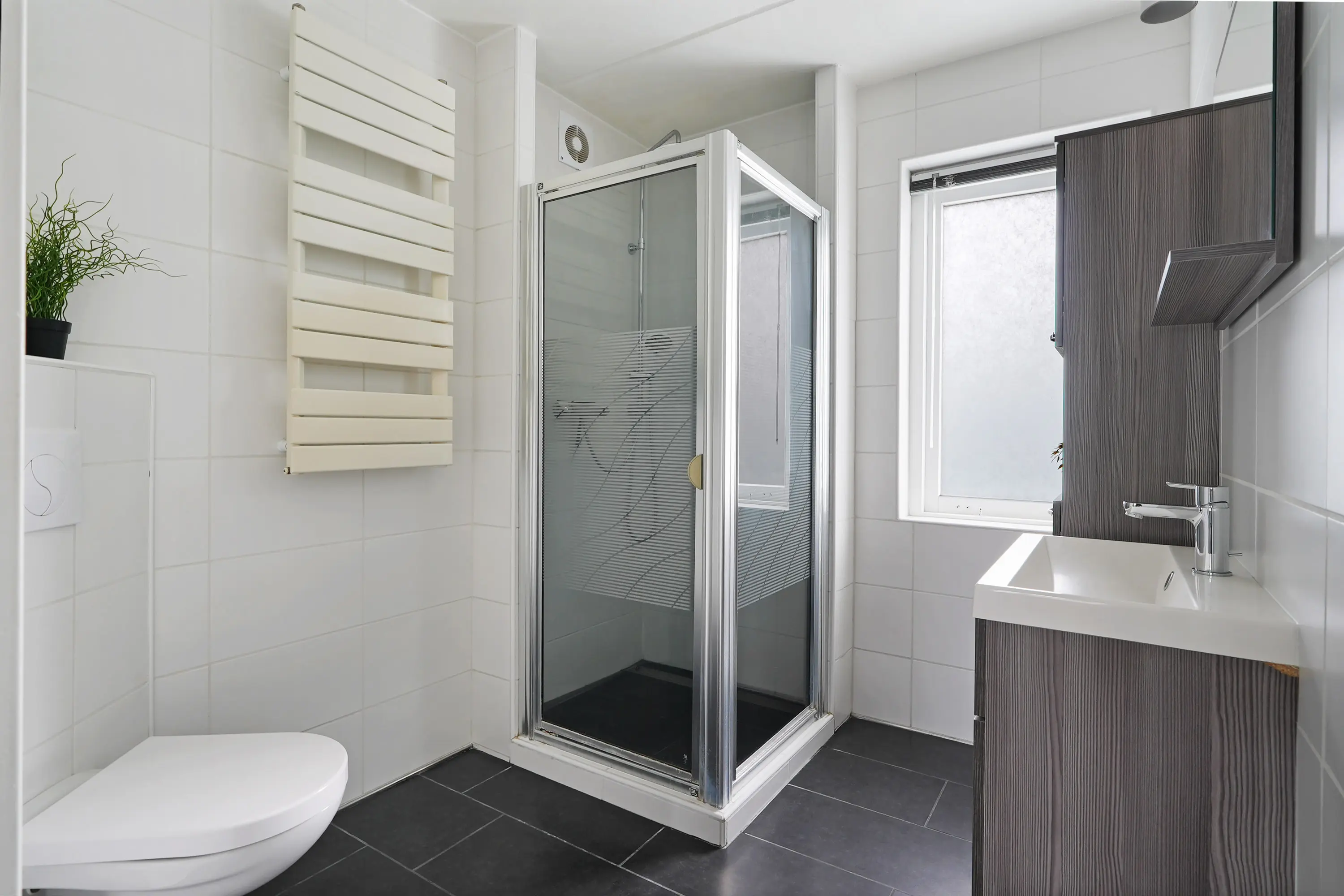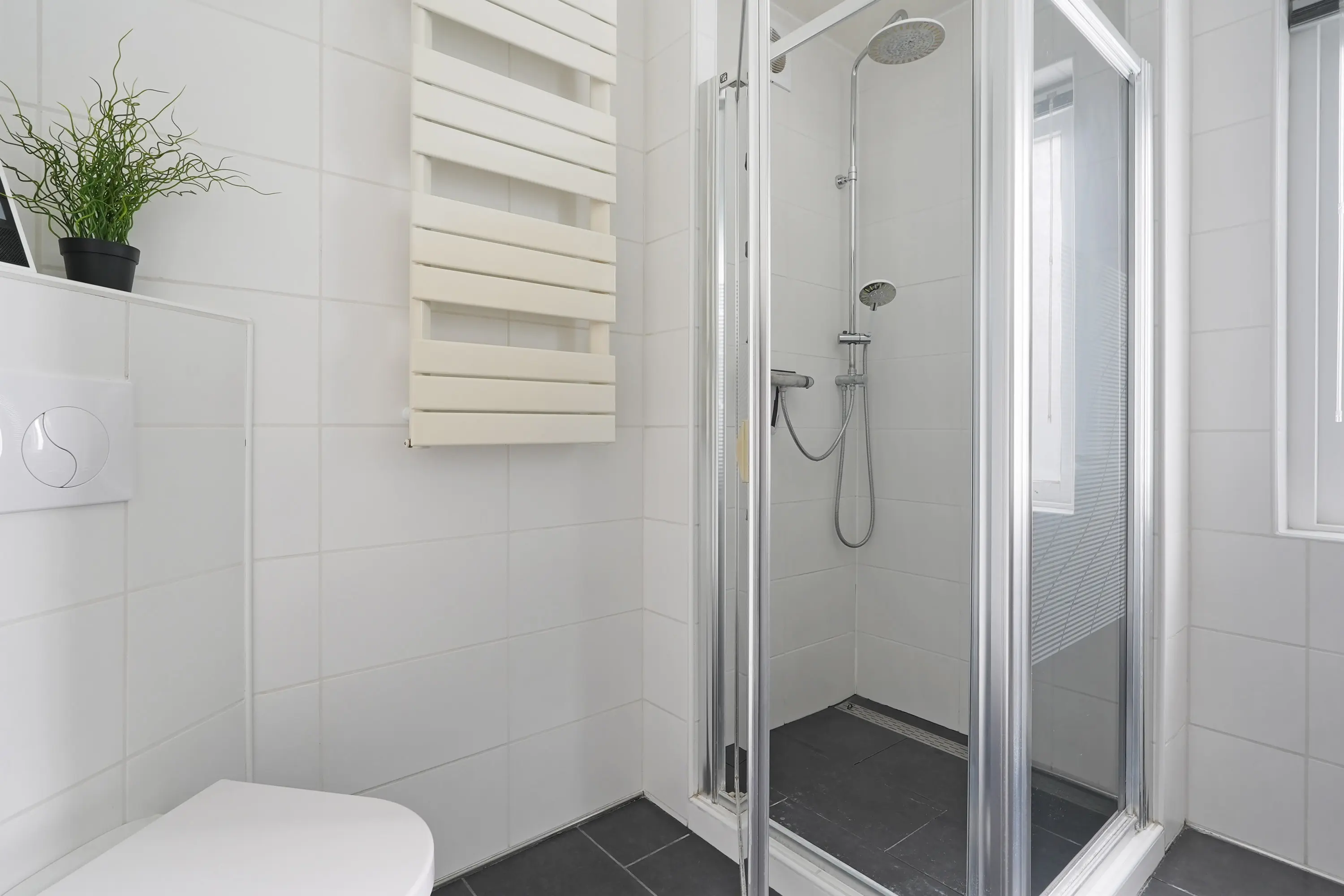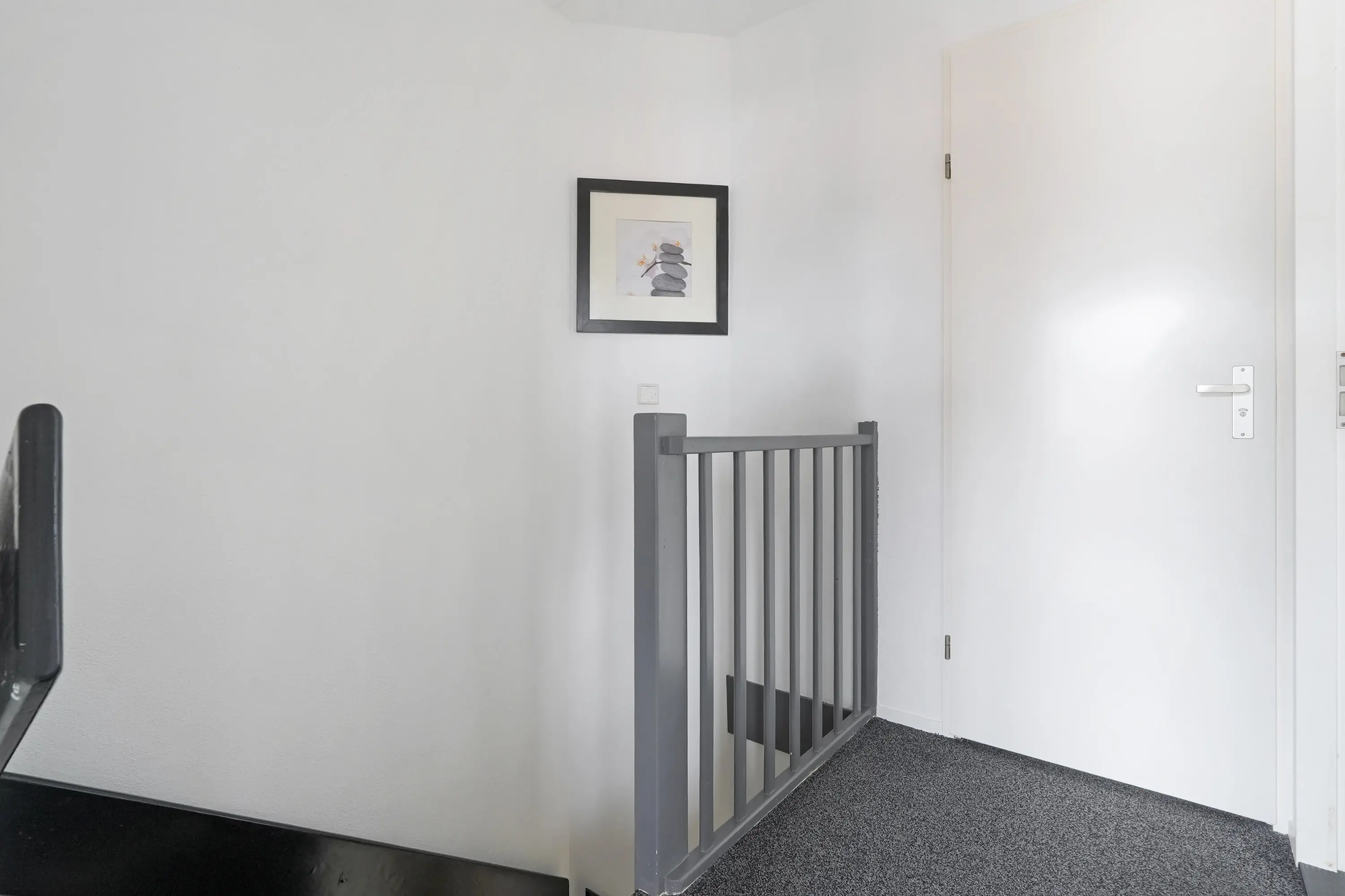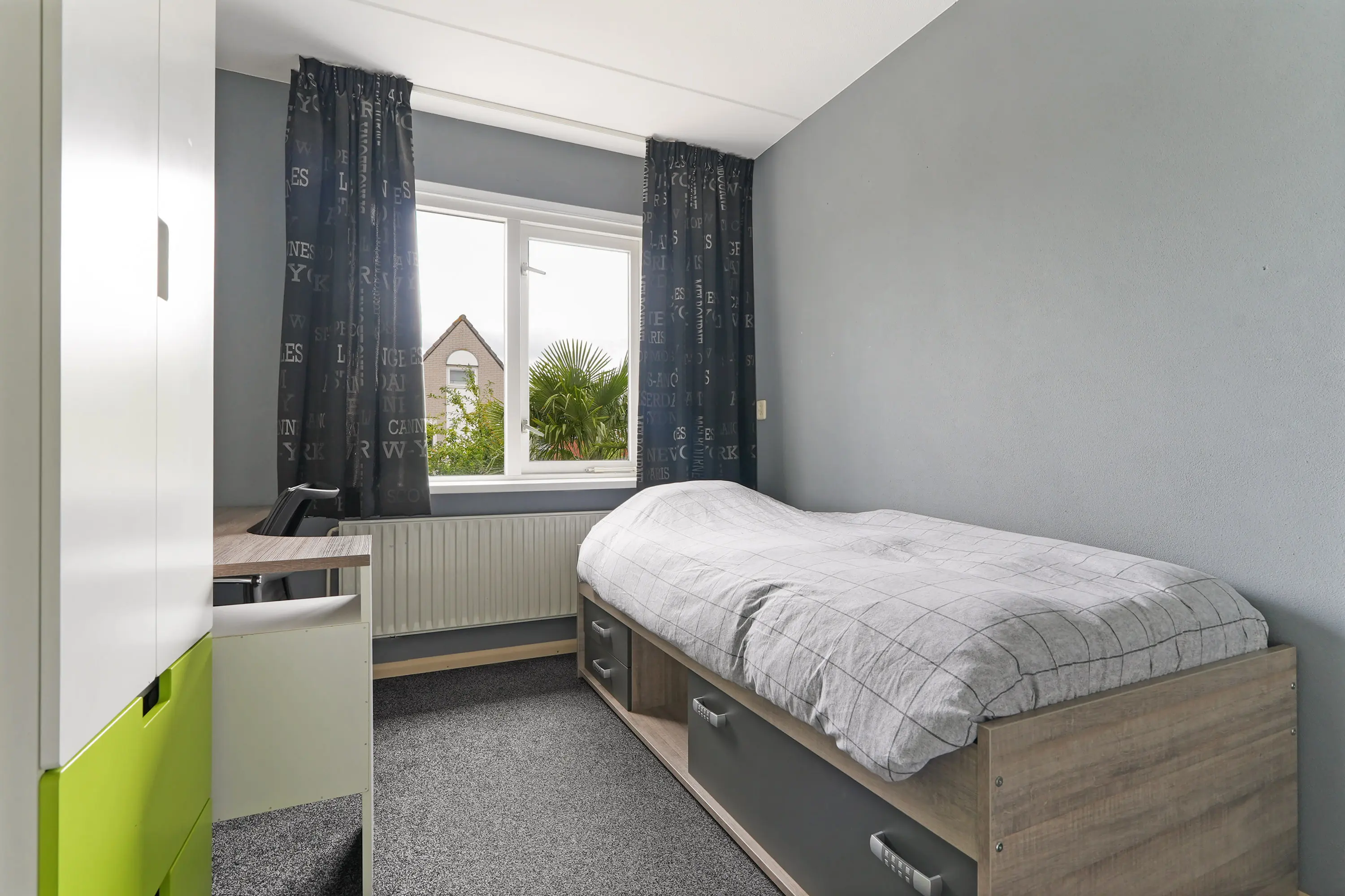 De eerste verdieping telt 2 ruime slaapkamers en een badkamer. De ouderslaapkamer is extra groot doordat een aangrenzende kamer is samengevoegd. De badkamer, vernieuwd in 2014, is voorzien van een douche, tweede toilet en wastafel. Via de vlizotrap bereikt u de tweede verdieping.