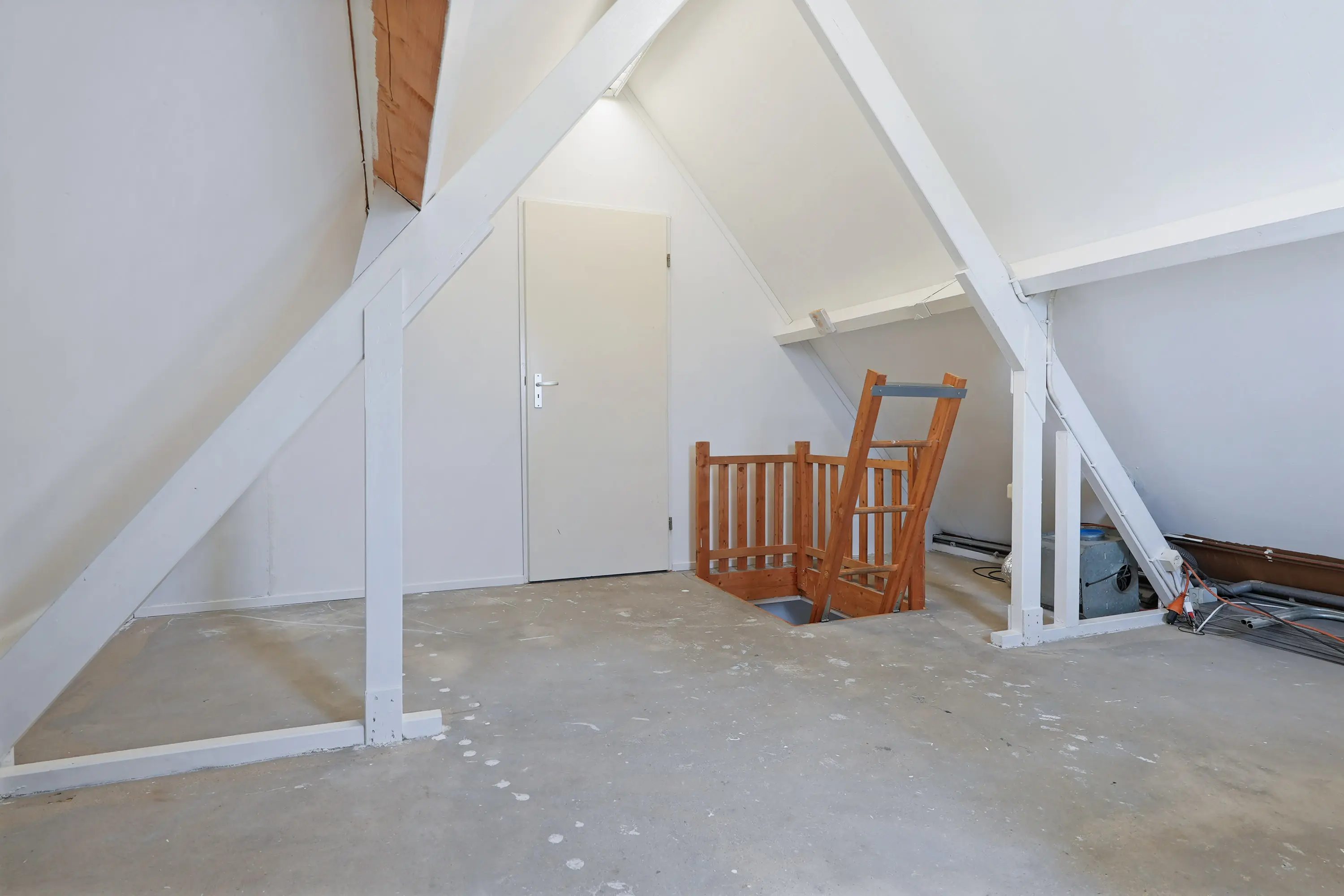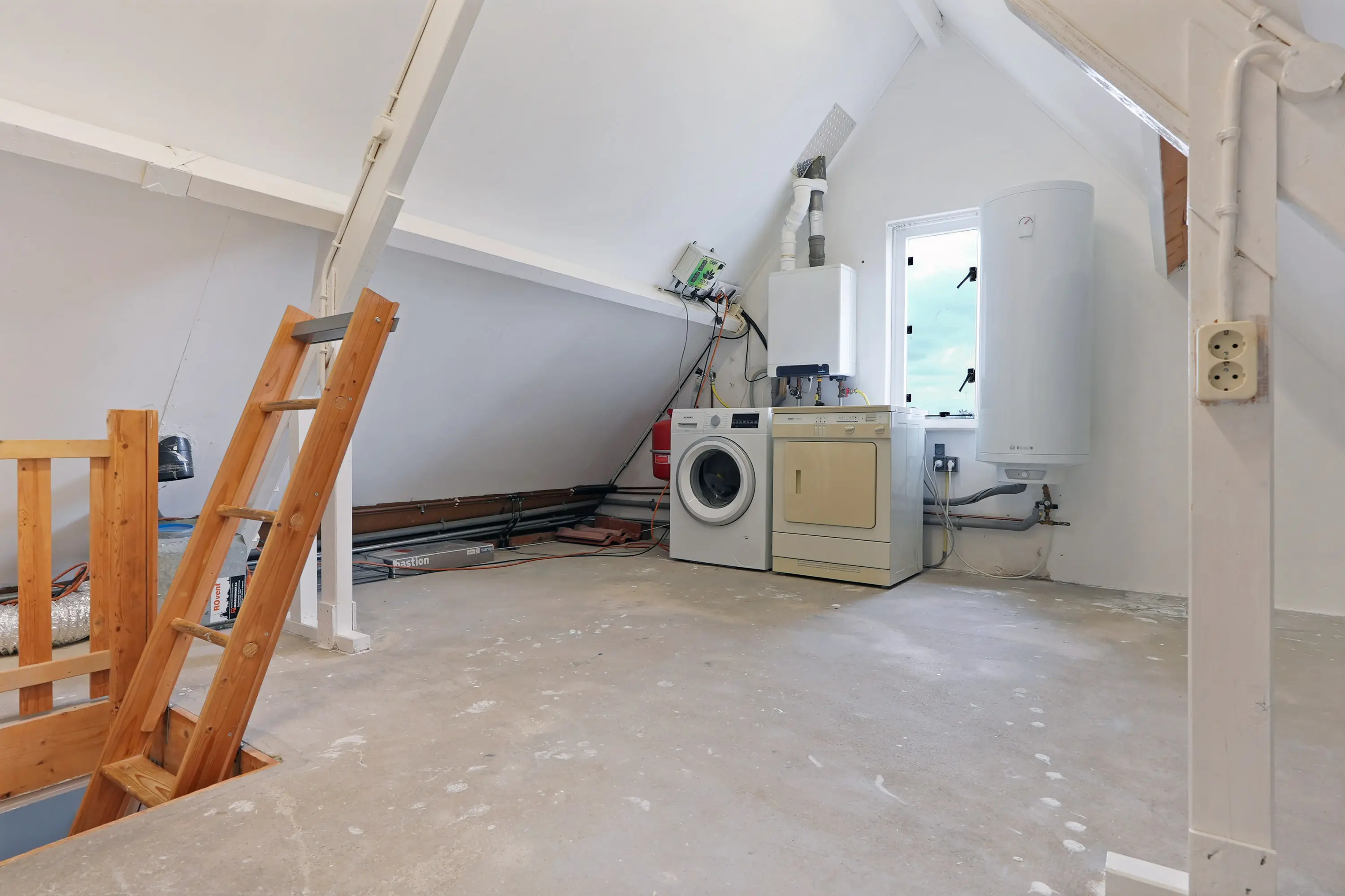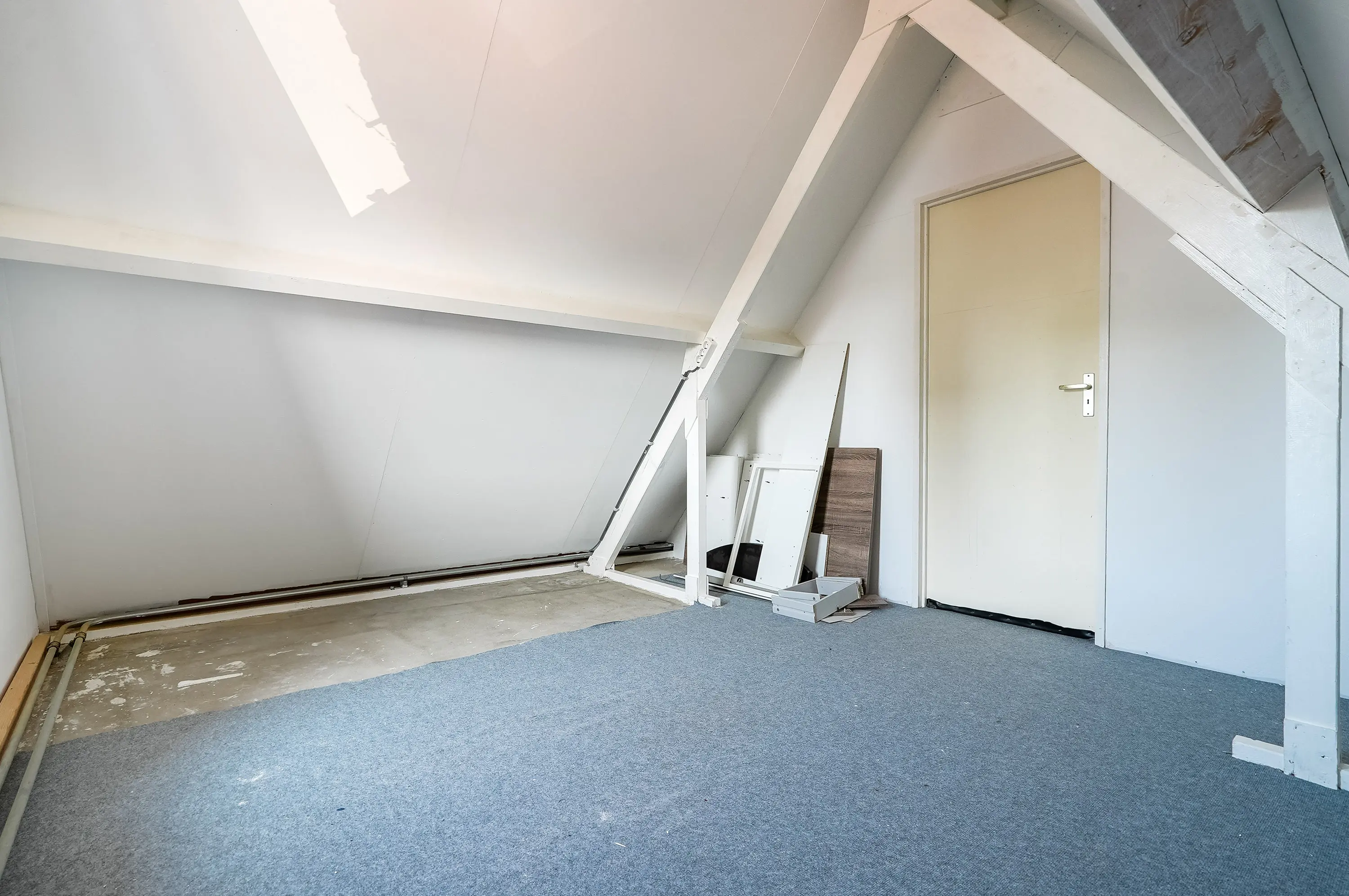 De zolder biedt volop mogelijkheden: met een vaste trap kan hier extra woonoppervlakte of een slaapkamer worden gecreëerd. Momenteel wordt deze verdieping gebruikt voor opslag, witgoed en de CV-installatie (2024).
