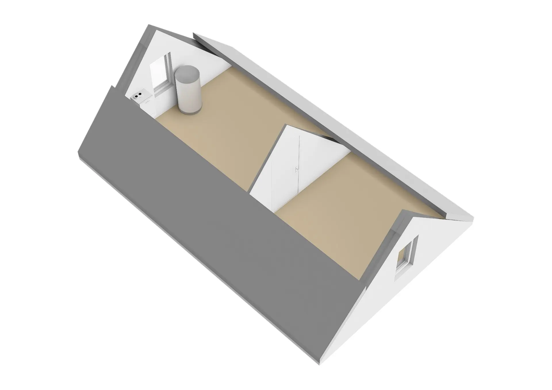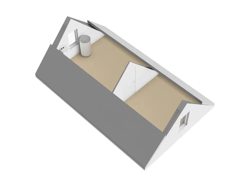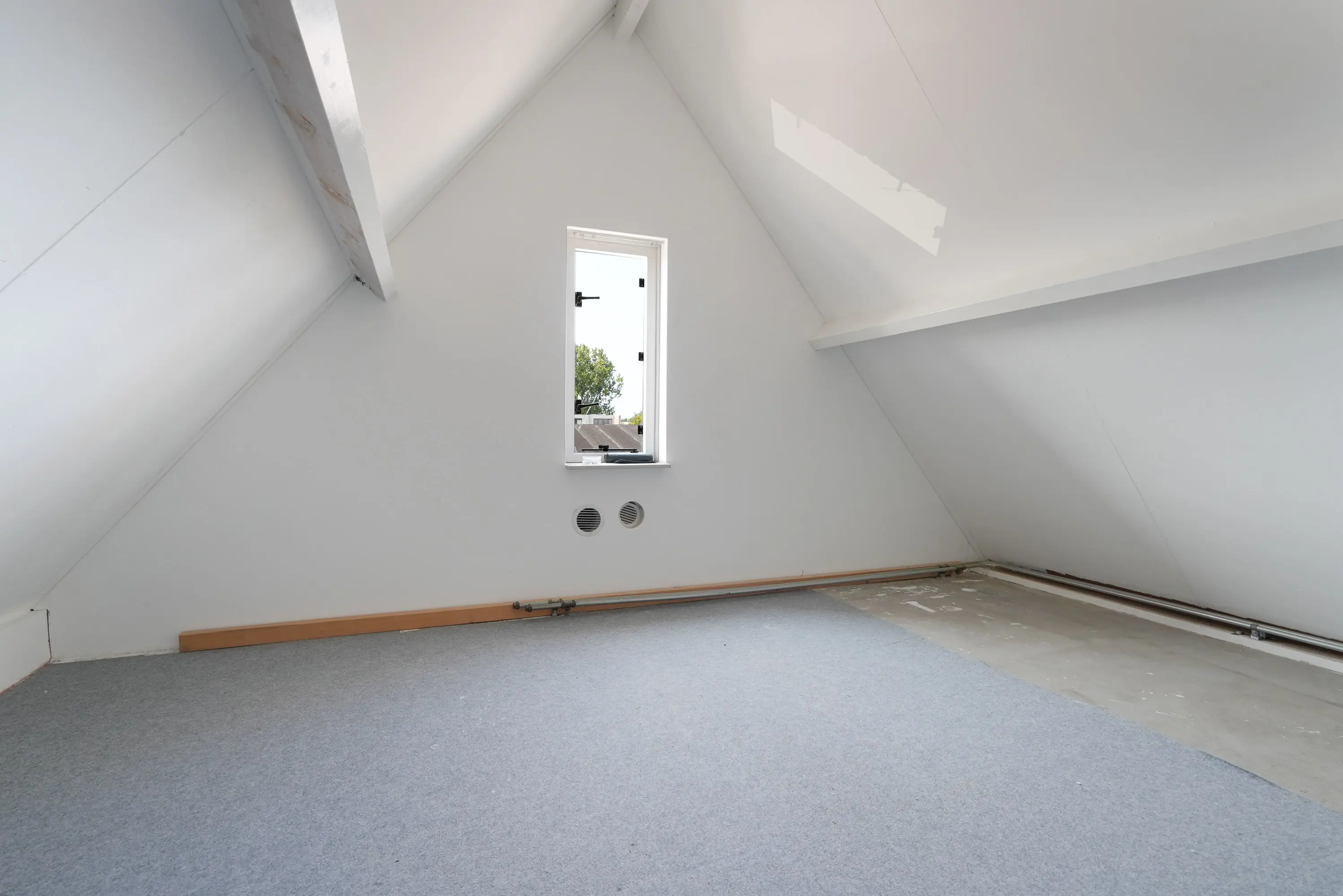 De zolder biedt volop mogelijkheden: met een vaste trap kan hier extra woonoppervlakte of een slaapkamer worden gecreëerd. Momenteel wordt deze verdieping gebruikt voor opslag, witgoed en de CV-installatie (2024).