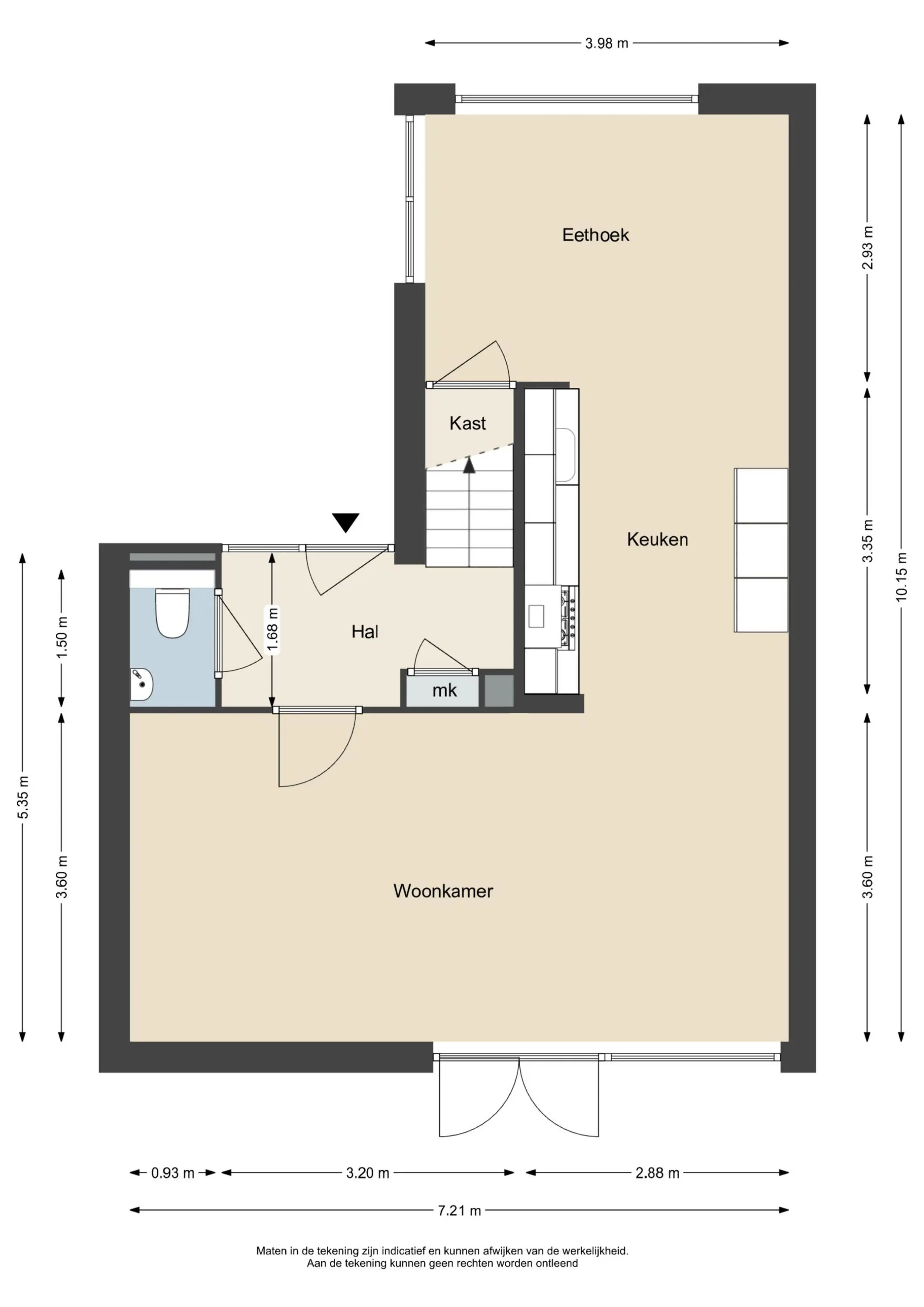 Deze informatie is door ons met de nodige zorgvuldigheid samengesteld. Onzerzijds wordt echter geen enkele aansprakelijkheid aanvaard voor enige onvolledigheid, onjuistheid of anderszins, dan wel de gevolgen daarvan. Alle opgegeven maten en oppervlakten zijn indicatief.