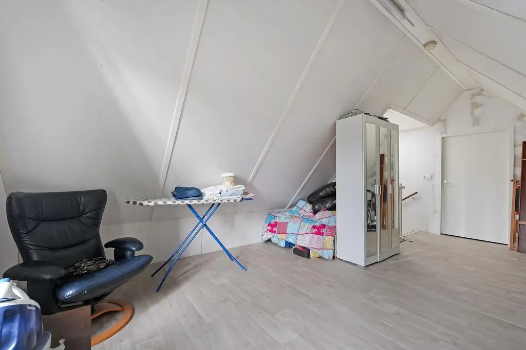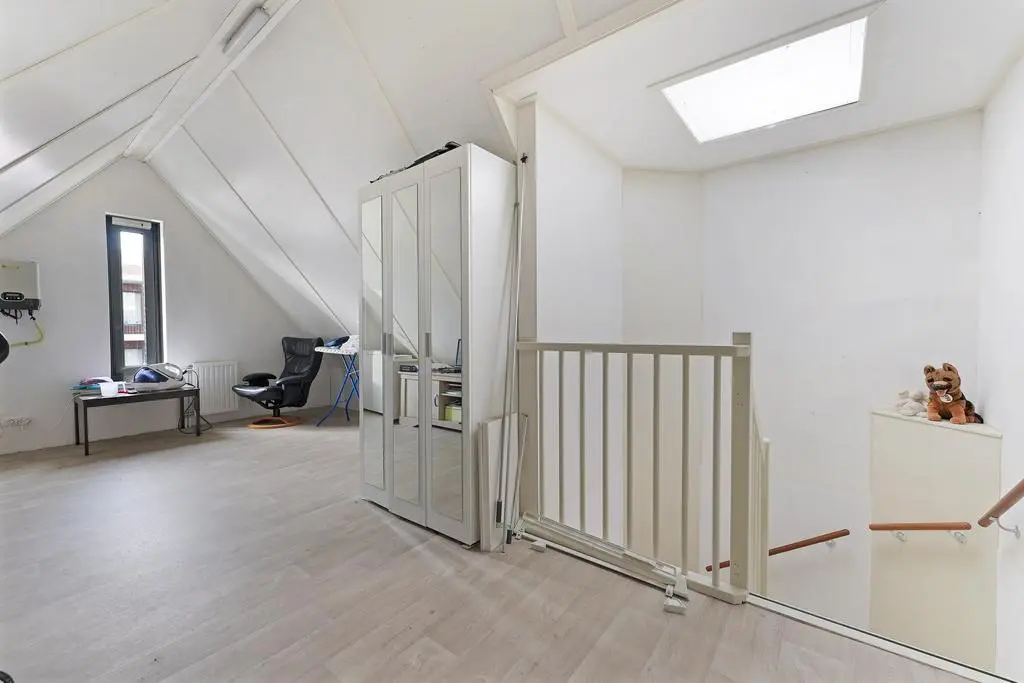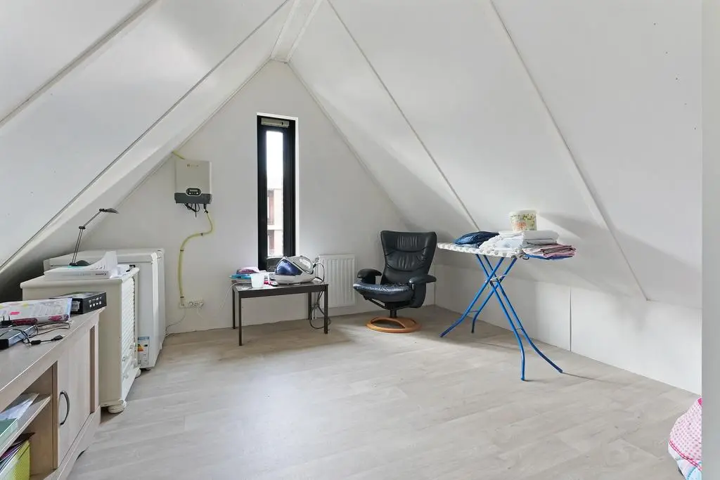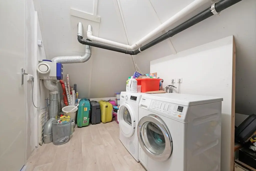 Grote open zolderruimte met mogelijkheid tot extra kamer, lichtkoepel, omvormer t.b.v. de zonnepanelen en separate technische ruimte voorzien van wasmachineaansluiting, unit mechanische ventilatie en c.v.-ketel.