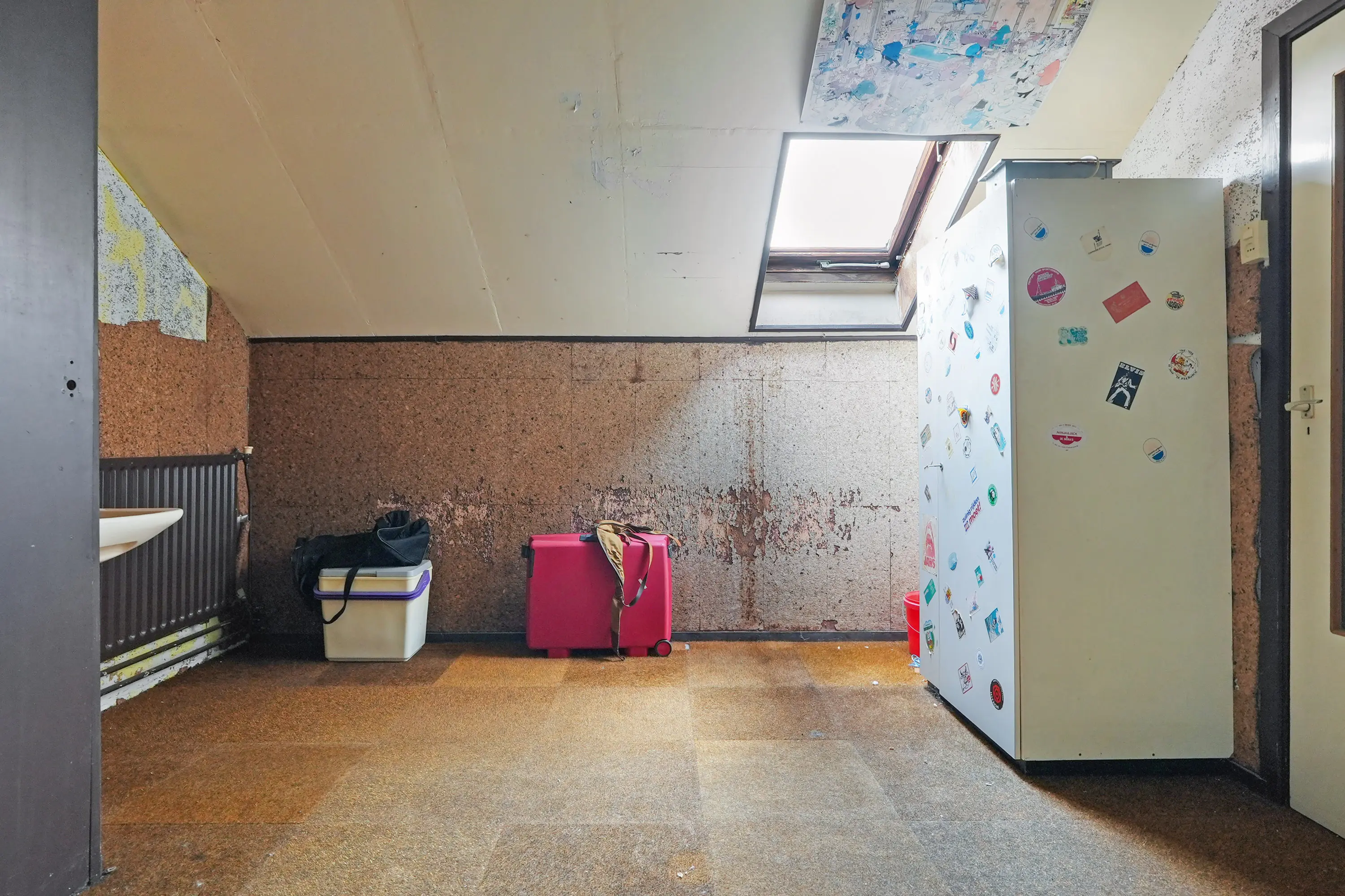 Overloop en vijfde slaapkamer met dakraam, wastafel en c.v.-kast.