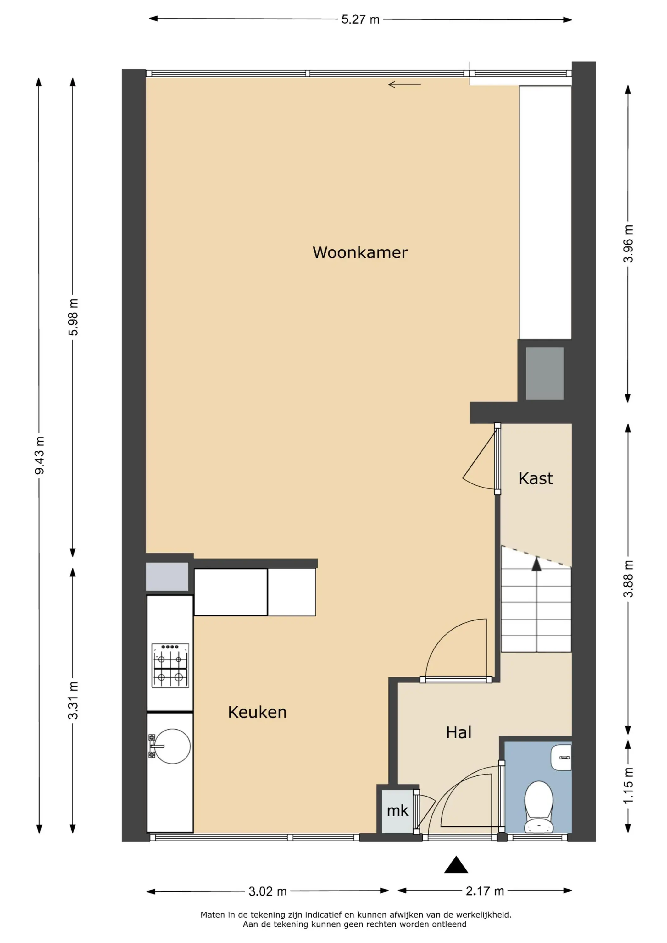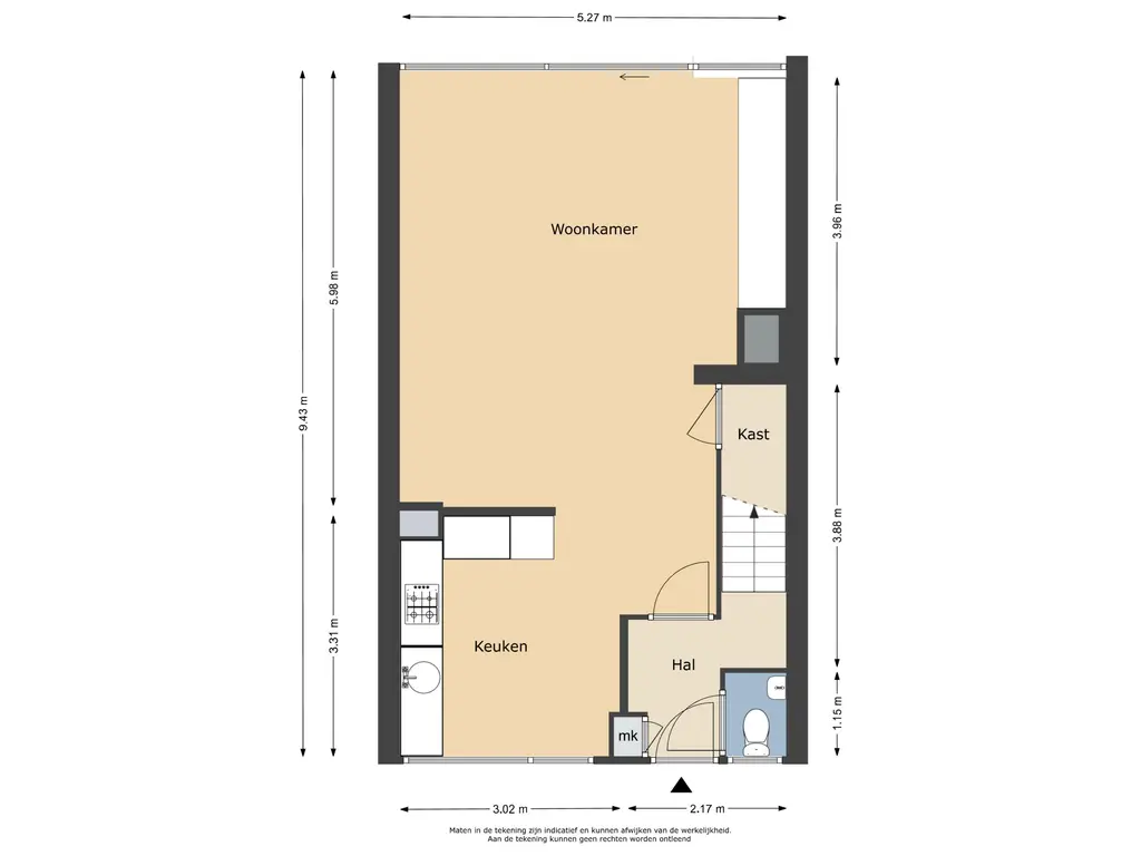 Deze informatie is door ons met de nodige zorgvuldigheid samengesteld. Onzerzijds wordt echter geen enkele aansprakelijkheid aanvaard voor enige onvolledigheid, onjuistheid of anderszins, dan wel de gevolgen daarvan. Alle opgegeven maten en oppervlakten zijn indicatief.