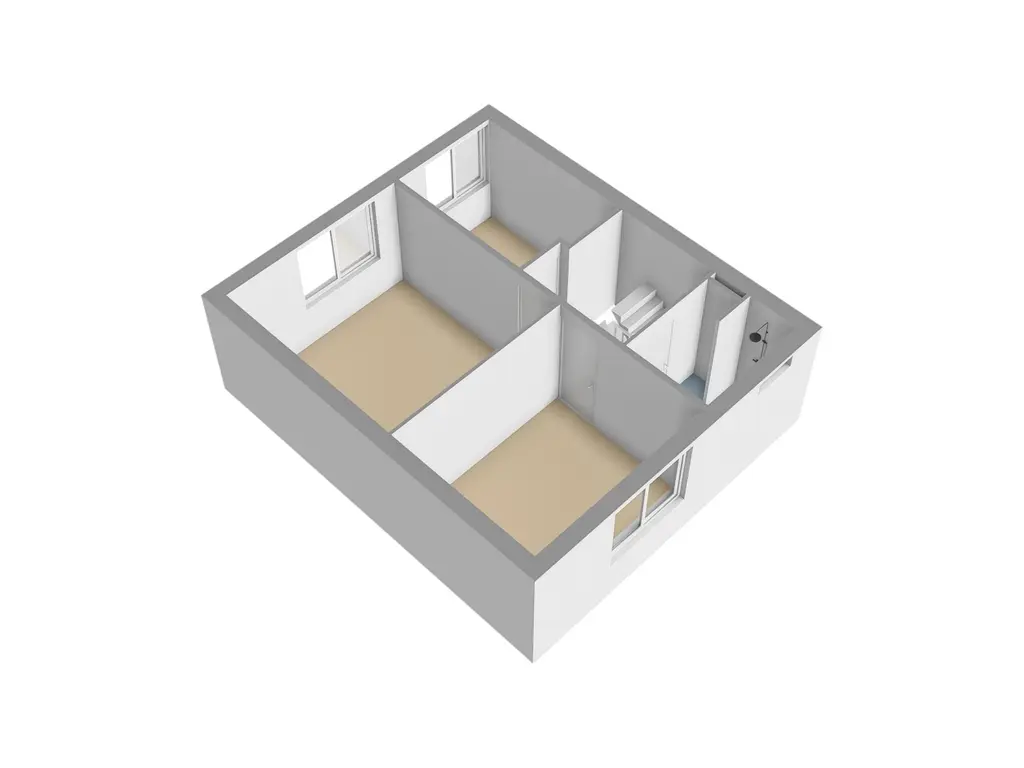 De overloop geeft toegang tot drie mooie slaapkamers, waarvan twee zeer ruim van opzet zijn. De moderne badkamer is uitgerust met een royale inloopdouche, een fraai dubbel wastafelmeubel en een designradiator. De aansluiting voor het toilet is nog altijd aanwezig. De slaapkamers zijn strak afgewerkt en voorzien van kunststof kozijnen met elektrische rolluiken. In het trapgat hangt de airco-unit met verwarm- en koelfunctie.