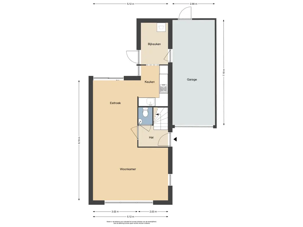 Deze informatie is door ons met de nodige zorgvuldigheid samengesteld. Onzerzijds wordt echter geen enkele aansprakelijkheid aanvaard voor enige onvolledigheid, onjuistheid of anderszins, dan wel de gevolgen daarvan. Alle opgegeven maten en oppervlakten zijn indicatief.