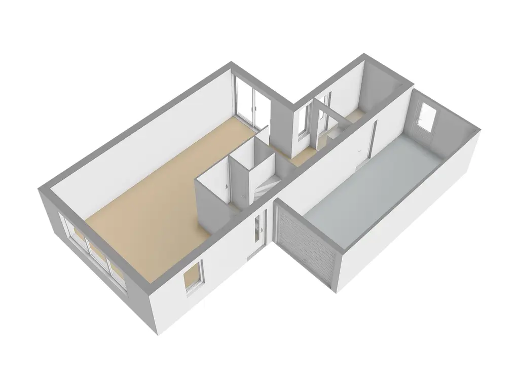 Hal via een zijdeur, meterkast, toiletruimte, L-vormige woonkamer met een fijne zithoek, via de schuifpui bereikt u hier de tuin. De keuken in een hoekopstelling inclusief inbouwapparatuur en een praktische bijkeuken. Naast de woning staat een ruim bemeten garage. Ideaal voor het parkeren van uw auto of andere spullen.