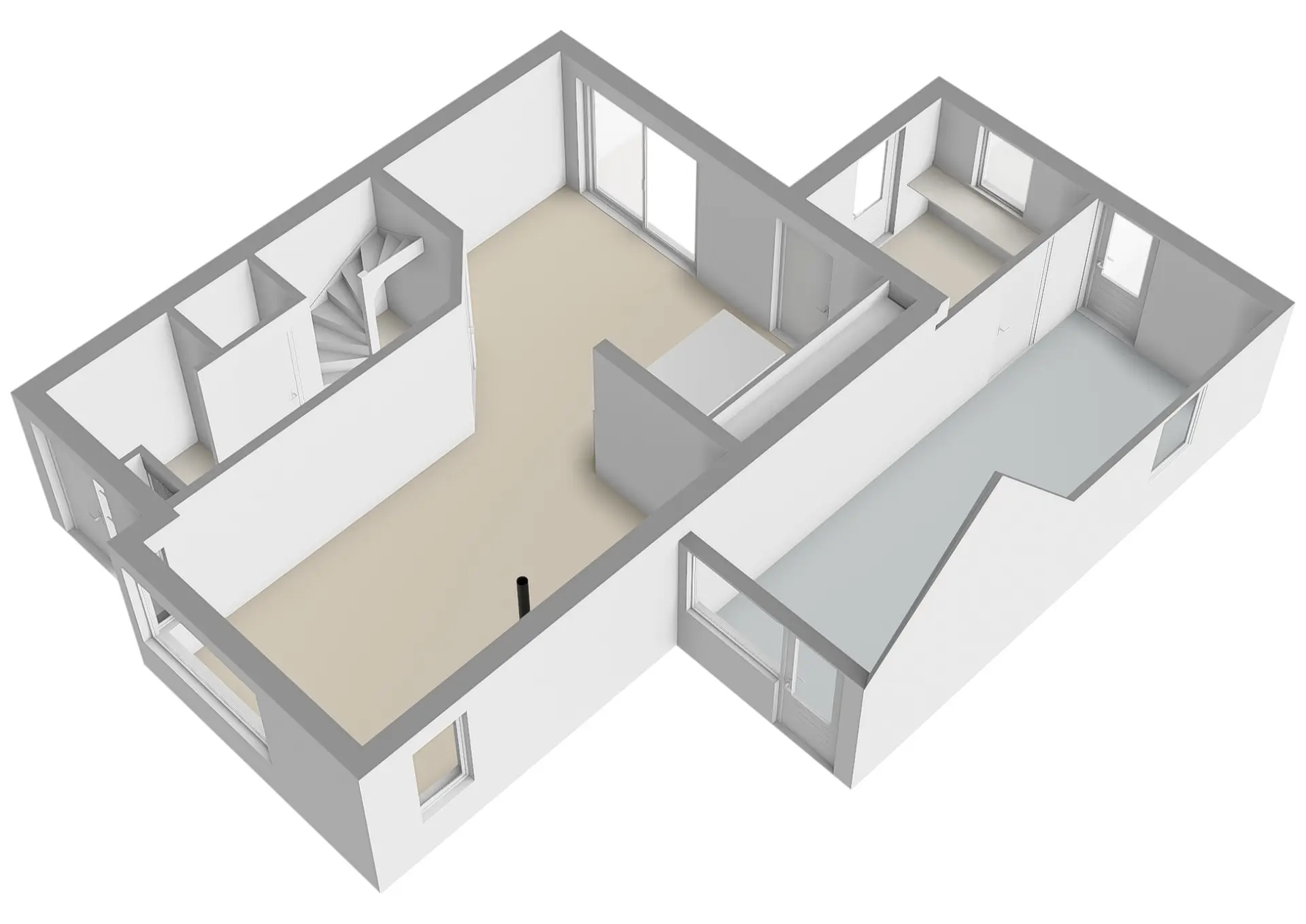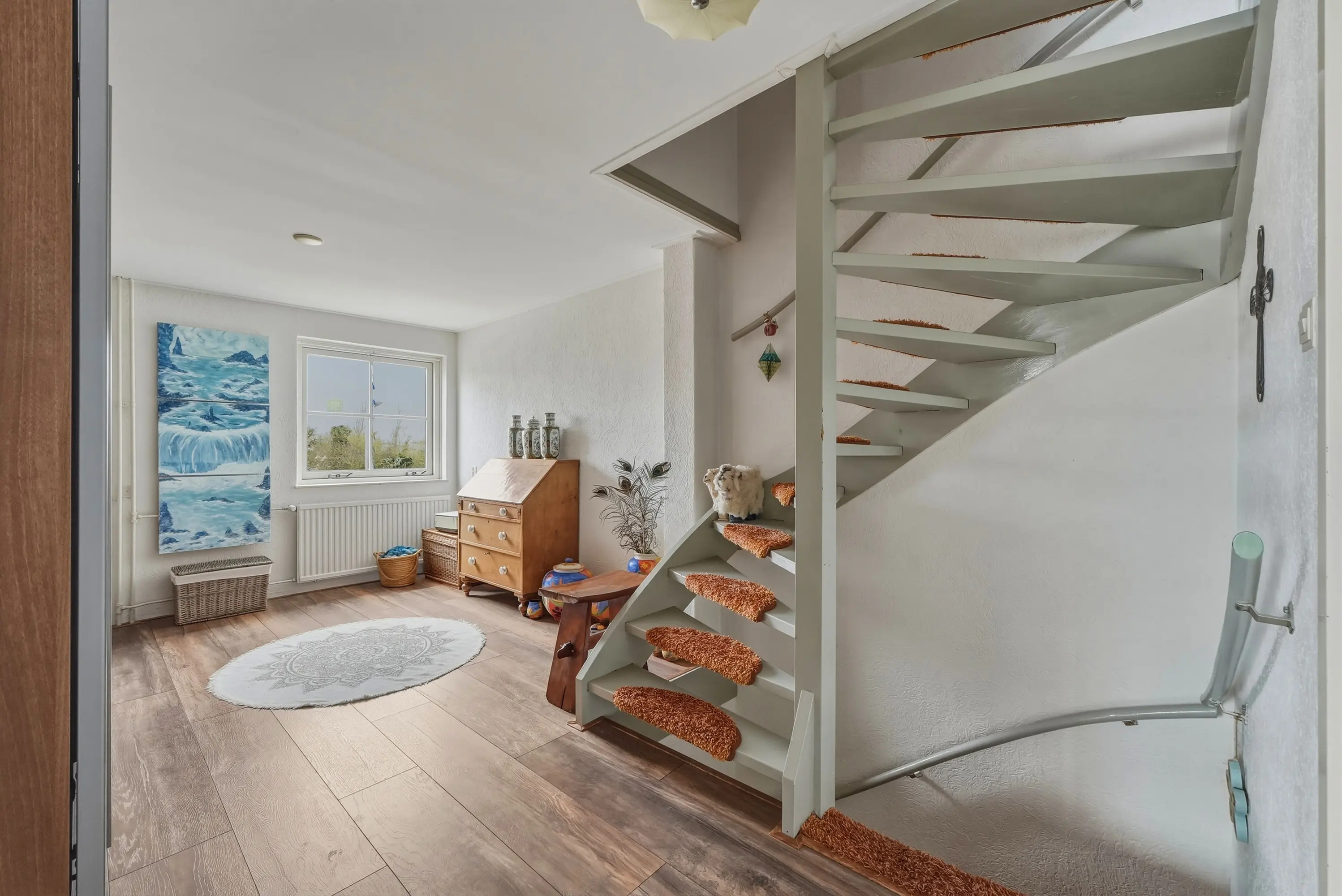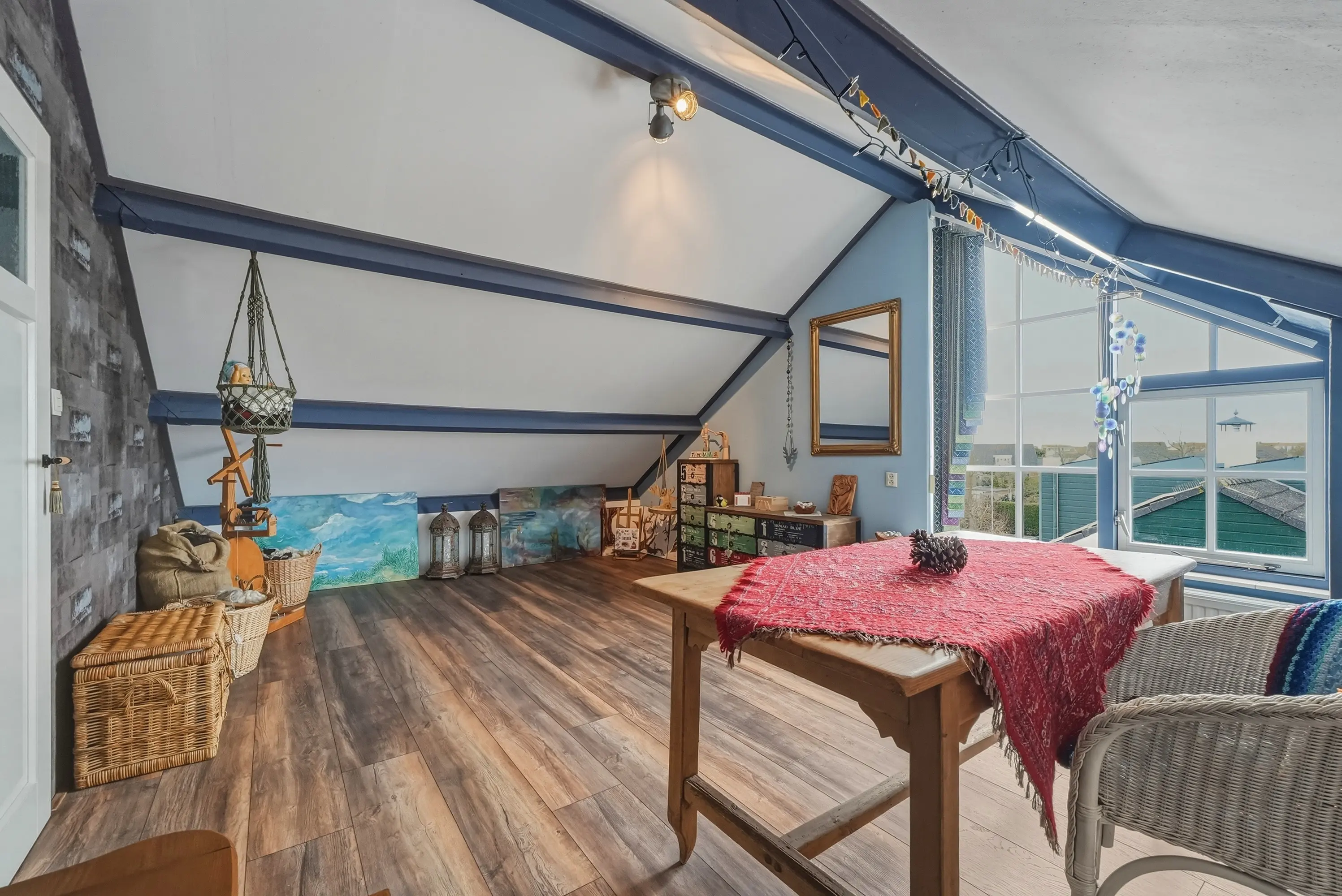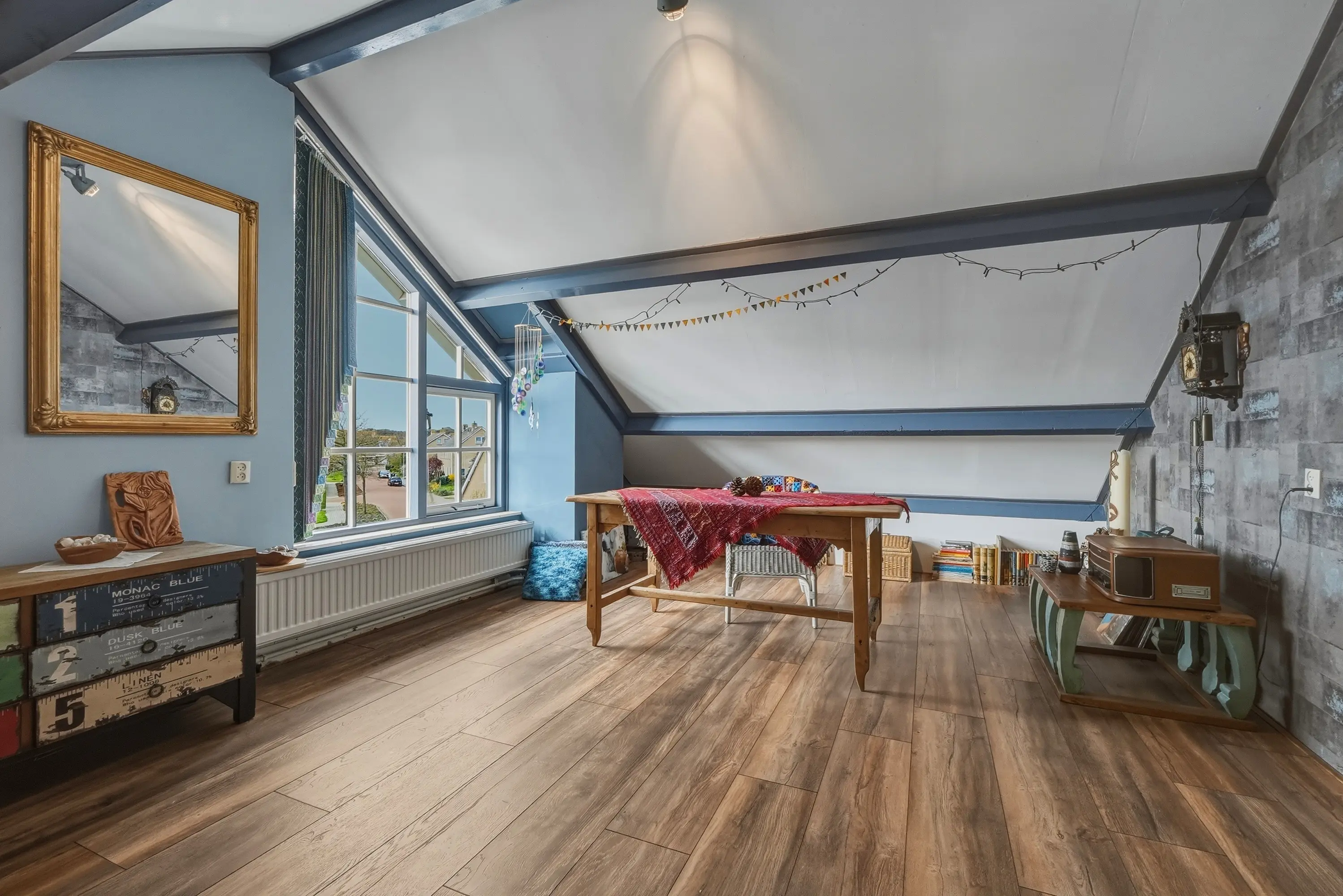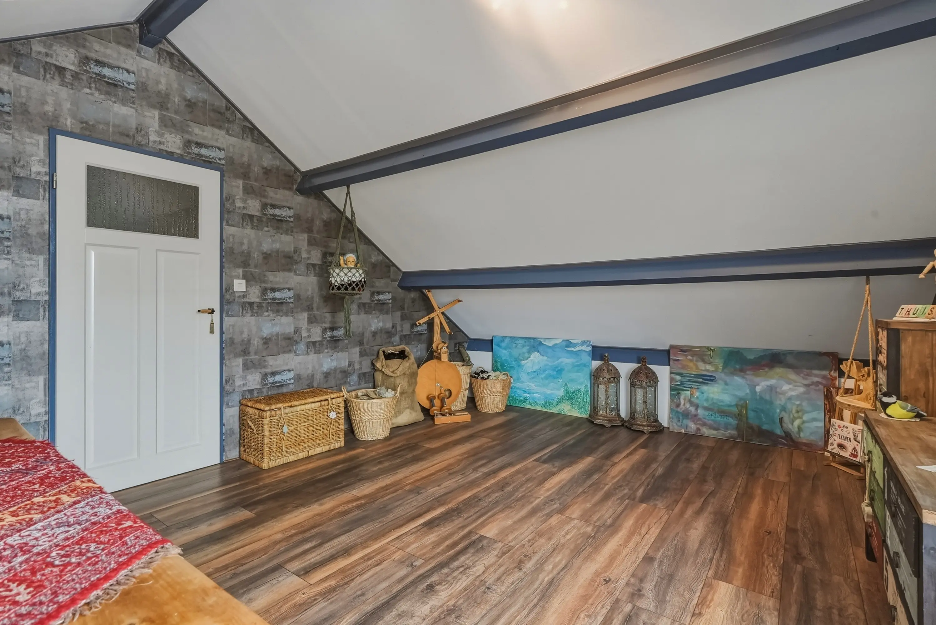 Deze verdieping bestaat uit een ruime overloop met vaste kasten, ideaal voor het opbergen van huishoudelijke spullen, en een derde royale slaapkamer. Deze kamer is extra ruimtelijk doordat deze tot in de nok open is, wat zorgt voor een aangenaam ruimtelijk effect. De ruimte is uitstekend geschikt als hobbykamer, speelkamer, kantoor of slaapkamer.