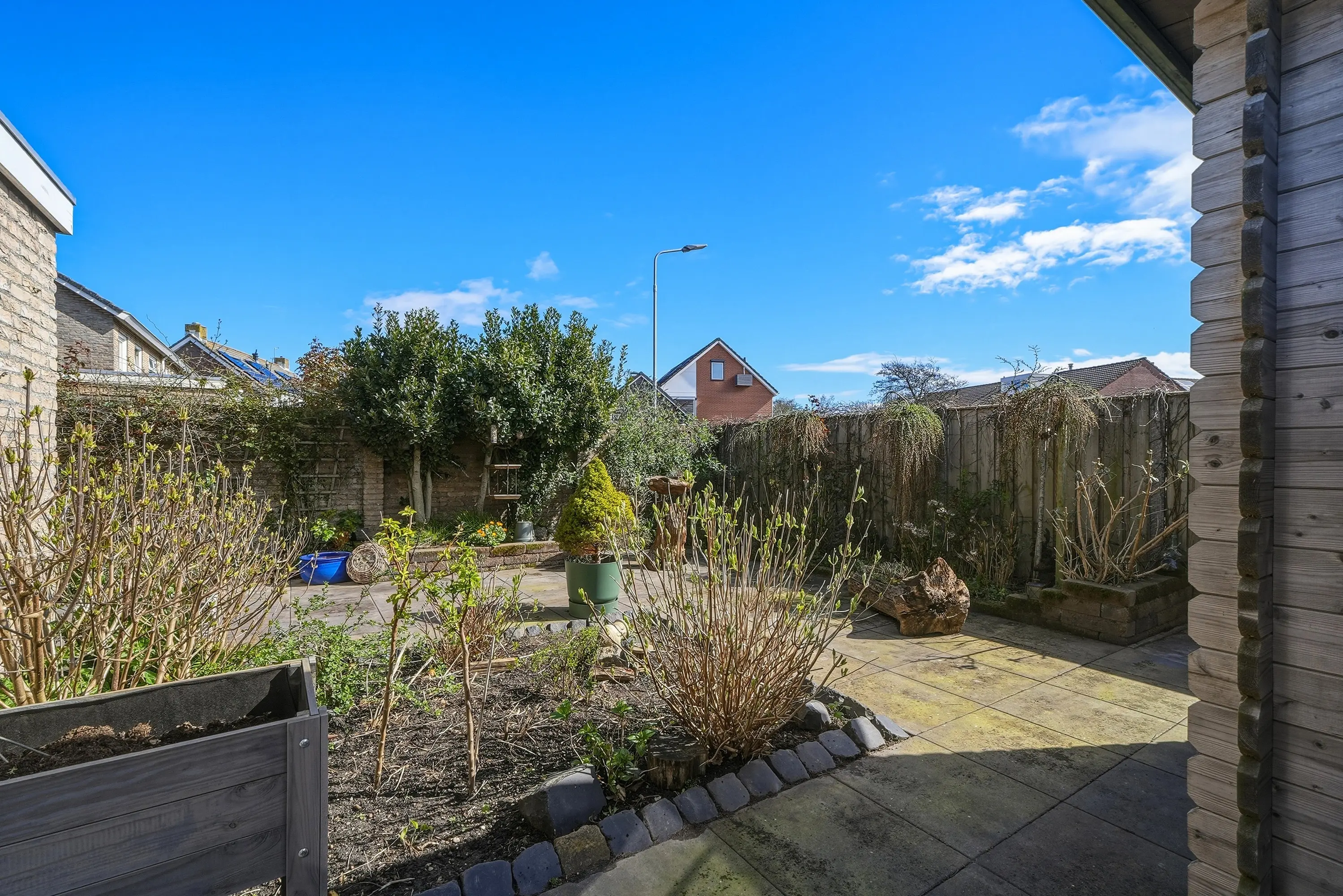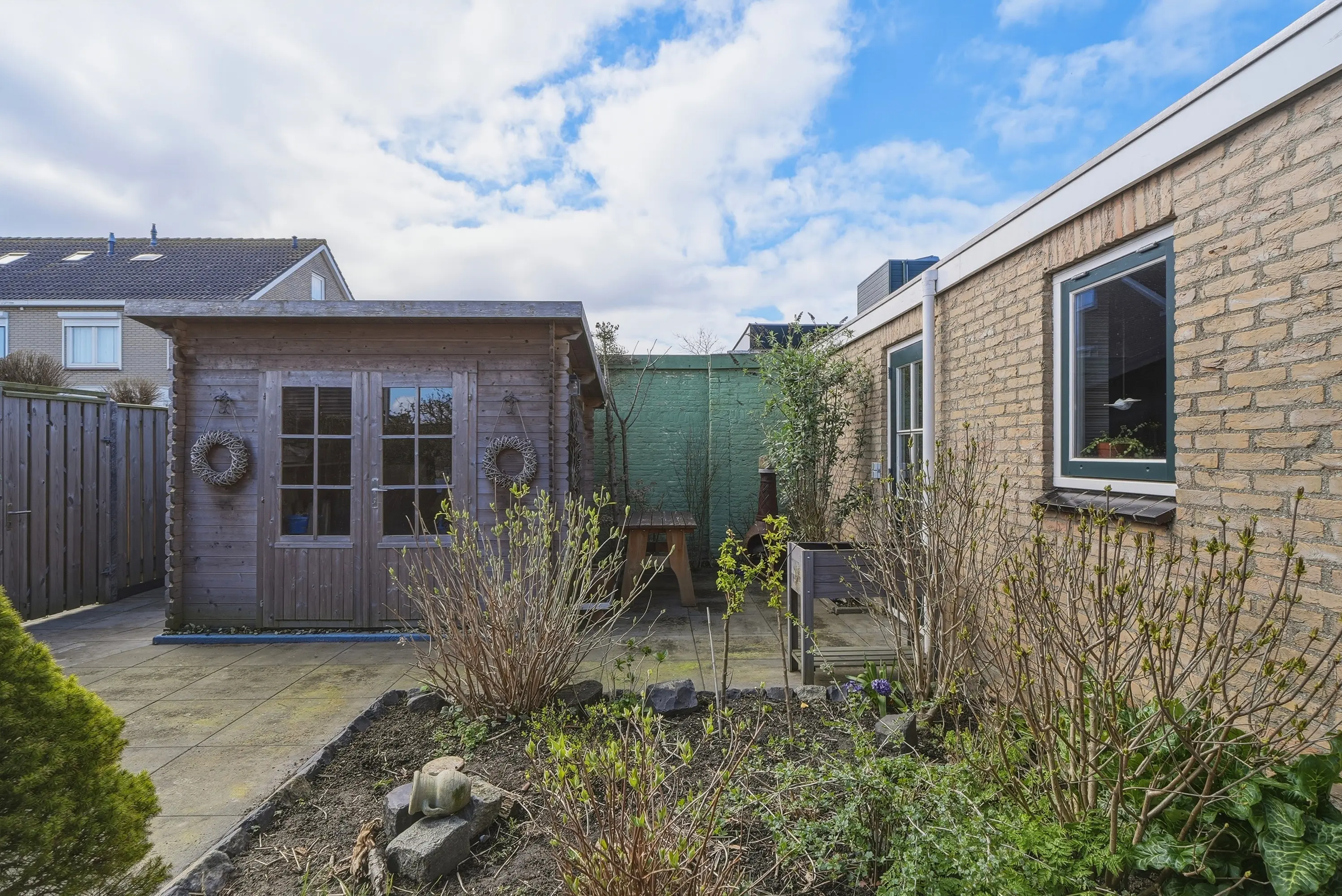 De woning beschikt over een ruime voortuin met een eigen dubbele oprit en een achtertuin met vrije achterom en houten schuur. De achtertuin ligt op het zuidoosten en biedt opvallend veel privacy. Aan de achterzijde kijkt u vrij weg zonder inkijk van buren. De zonligging is uitstekend: u kunt hier de hele dag van de zon genieten of juist een schaduwplek opzoeken.