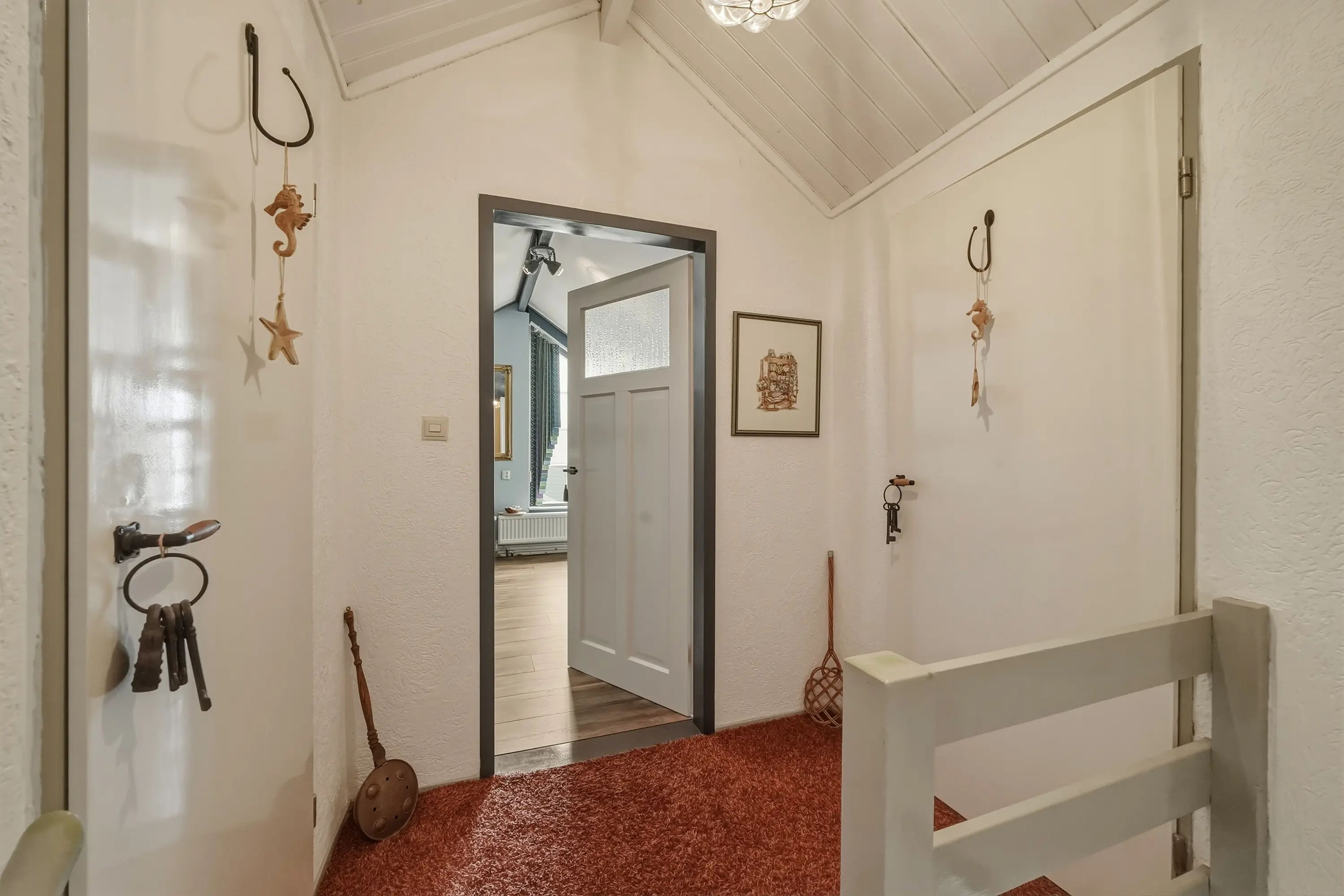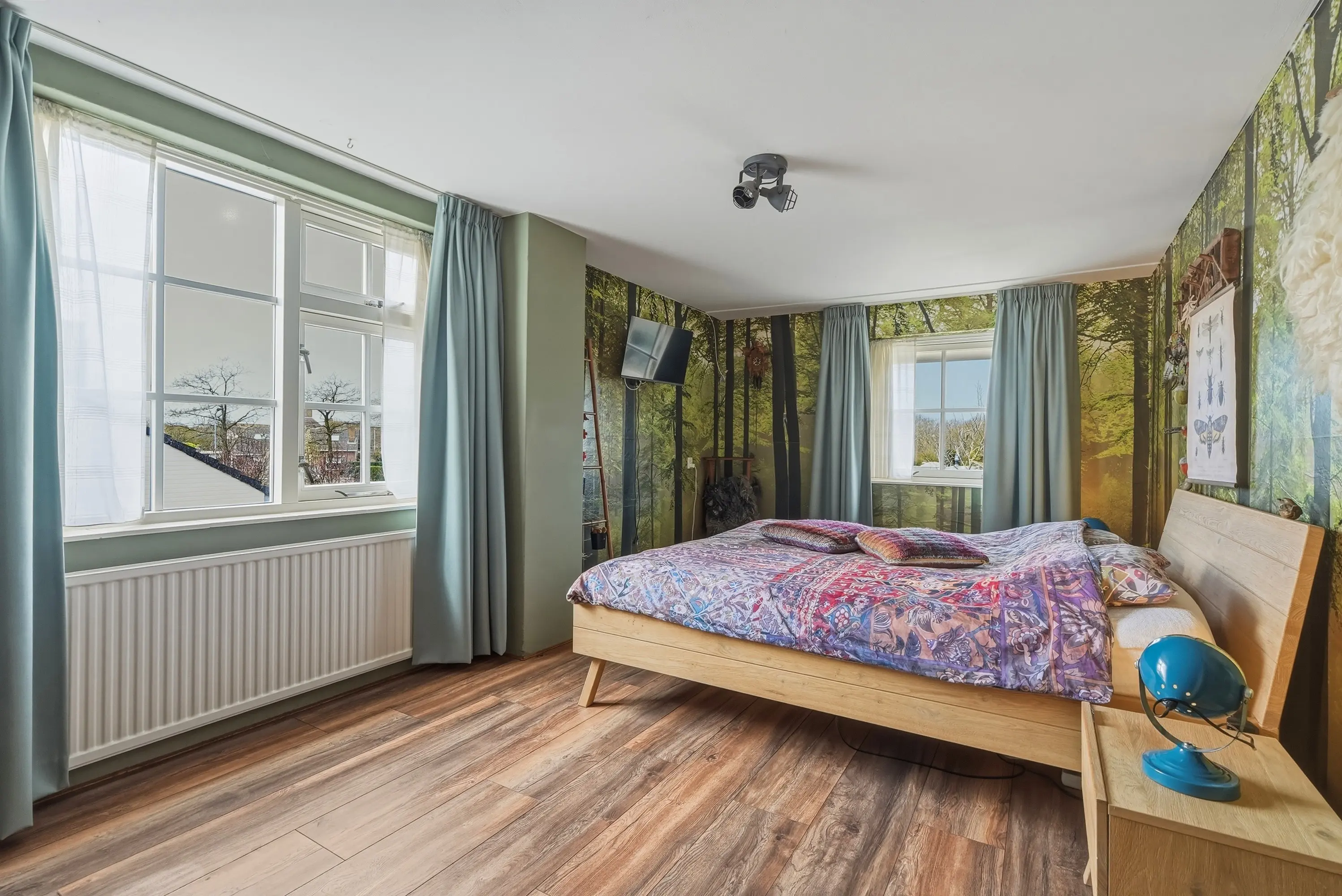 De eerste verdieping is door de huidige eigenaar aangepast. Een voormalige slaapkamer aan de voorzijde is opgeofferd ten behoeve van een ruime overloop, ideaal voor kasten, een werkplek of andere invulling. Op deze verdieping bevinden zich twee ruime slaapkamers en een badkamer. De badkamer is uitgerust met een ligbad, douche, wastafelmeubel en toilet.