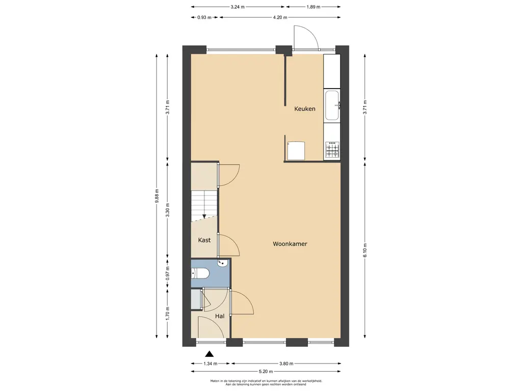 Deze informatie is door ons met de nodige zorgvuldigheid samengesteld. Onzerzijds wordt echter geen enkele aansprakelijkheid aanvaard voor enige onvolledigheid, onjuistheid of anderszins, dan wel de gevolgen daarvan. Alle opgegeven maten en oppervlakten zijn indicatief.