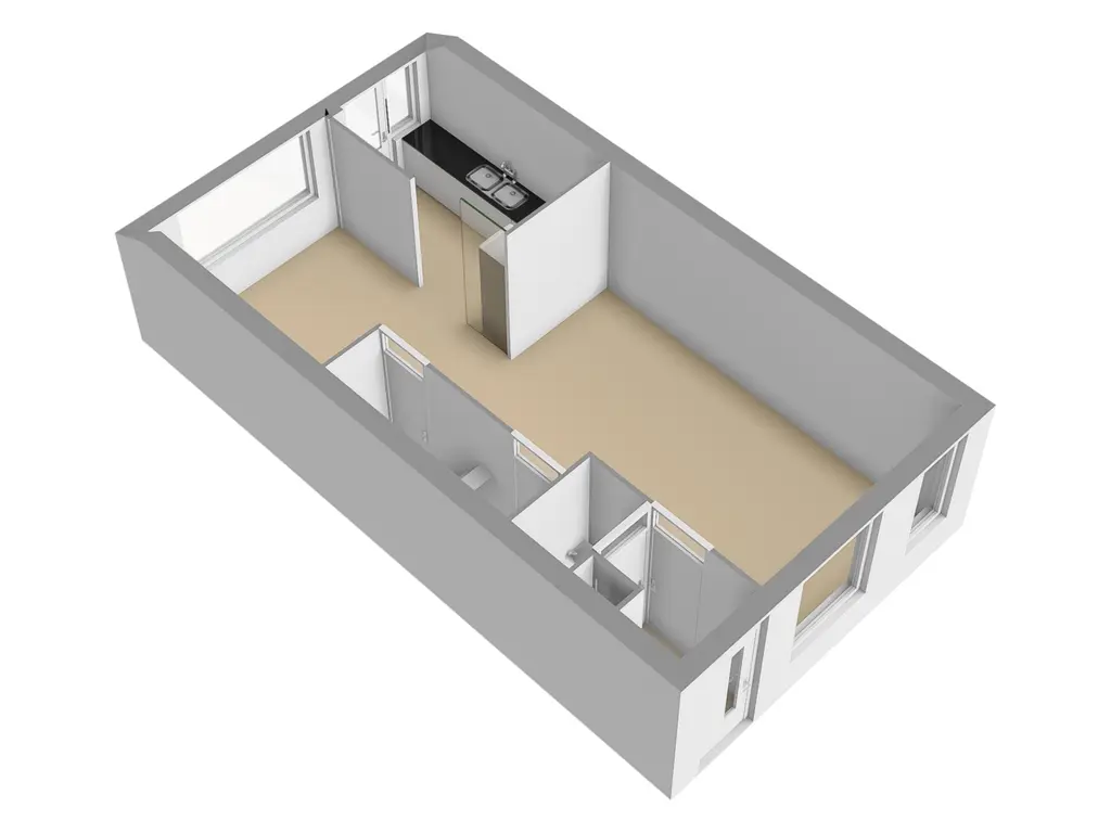 Entree in hal met meterkast, toilet en doorgang naar de woonkamer. Bij binnenkomst in de woonkamer ervaart u direct de ruimtelijke woonbeleving. Speels ingedeeld met de zithoek aan de voorzijde en de eethoek met de halfopen keuken aan de tuinzijde. Verder nog een handige trapkast. De scheiding tussen keuken en woonkamer is uitgevoerd met een glazen, verplaatsbaar schuifpaneel – praktisch én stijlvol! De keuken is netjes en sluit mooi aan bij de open uitstraling van de woning. Vanuit de woonkamer loopt u zo de zonnige achtertuin in.