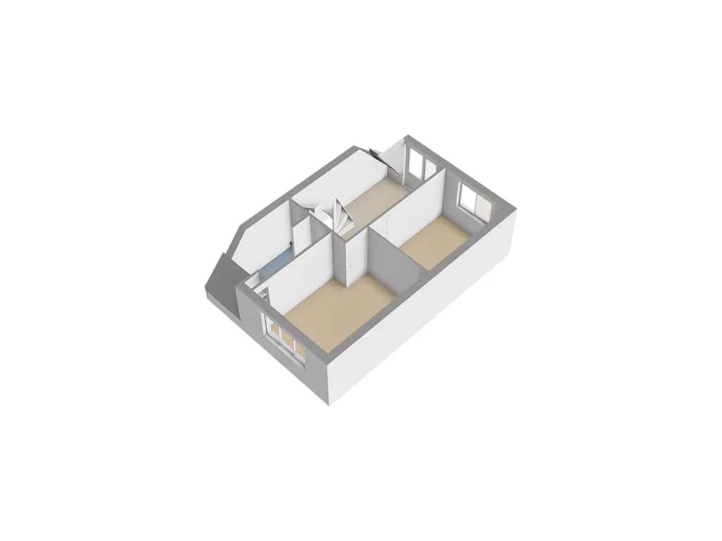 Ruime overloop (extra kinder- of werkkamer mogelijk) met vaste trap naar de 2e verdieping en deur naar het platte dak, twee ruime slaapkamers en luxe volledig betegelde badkamer voorzien van inloopdouche, wastafelmeubel, hangcloset en dakraam.
