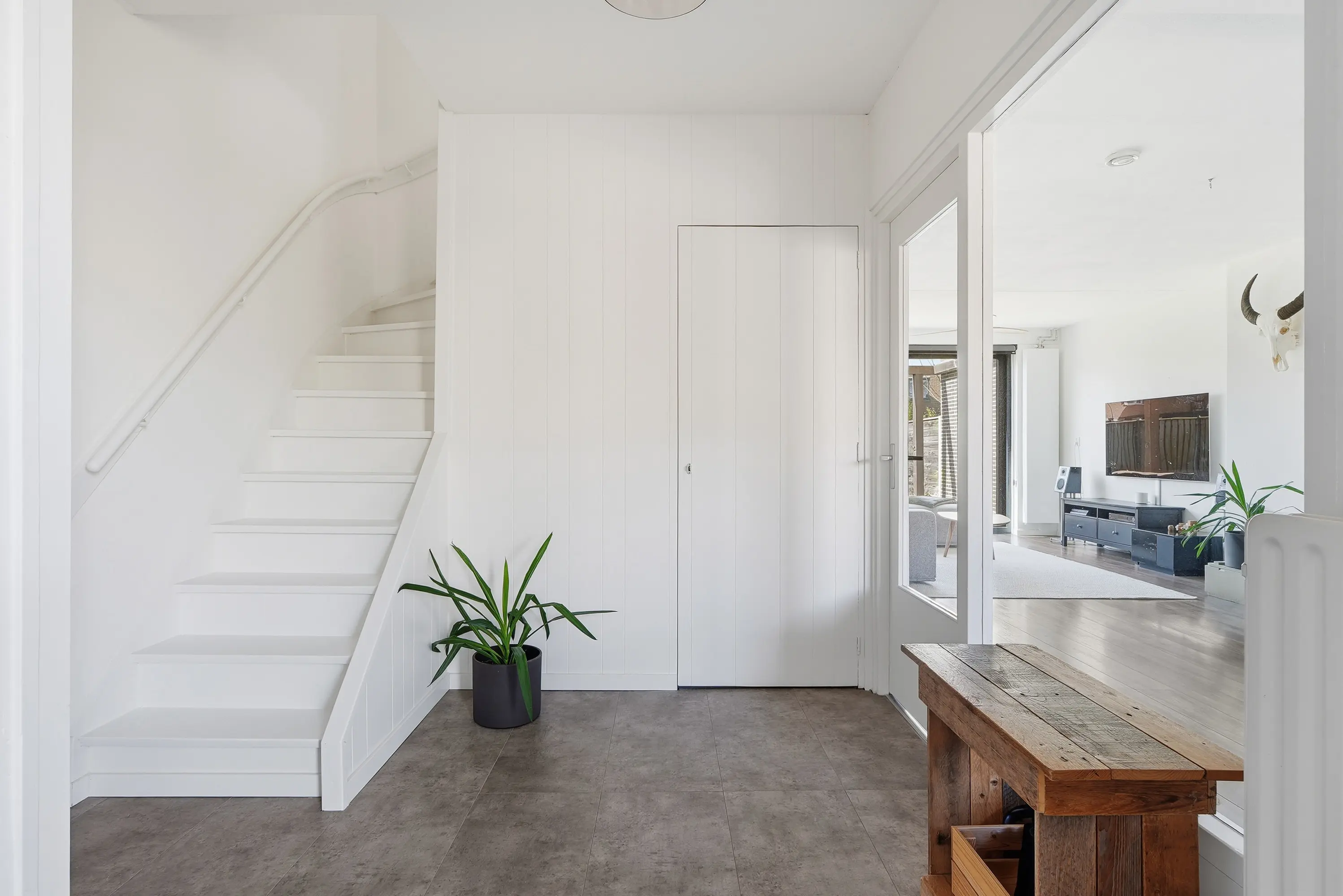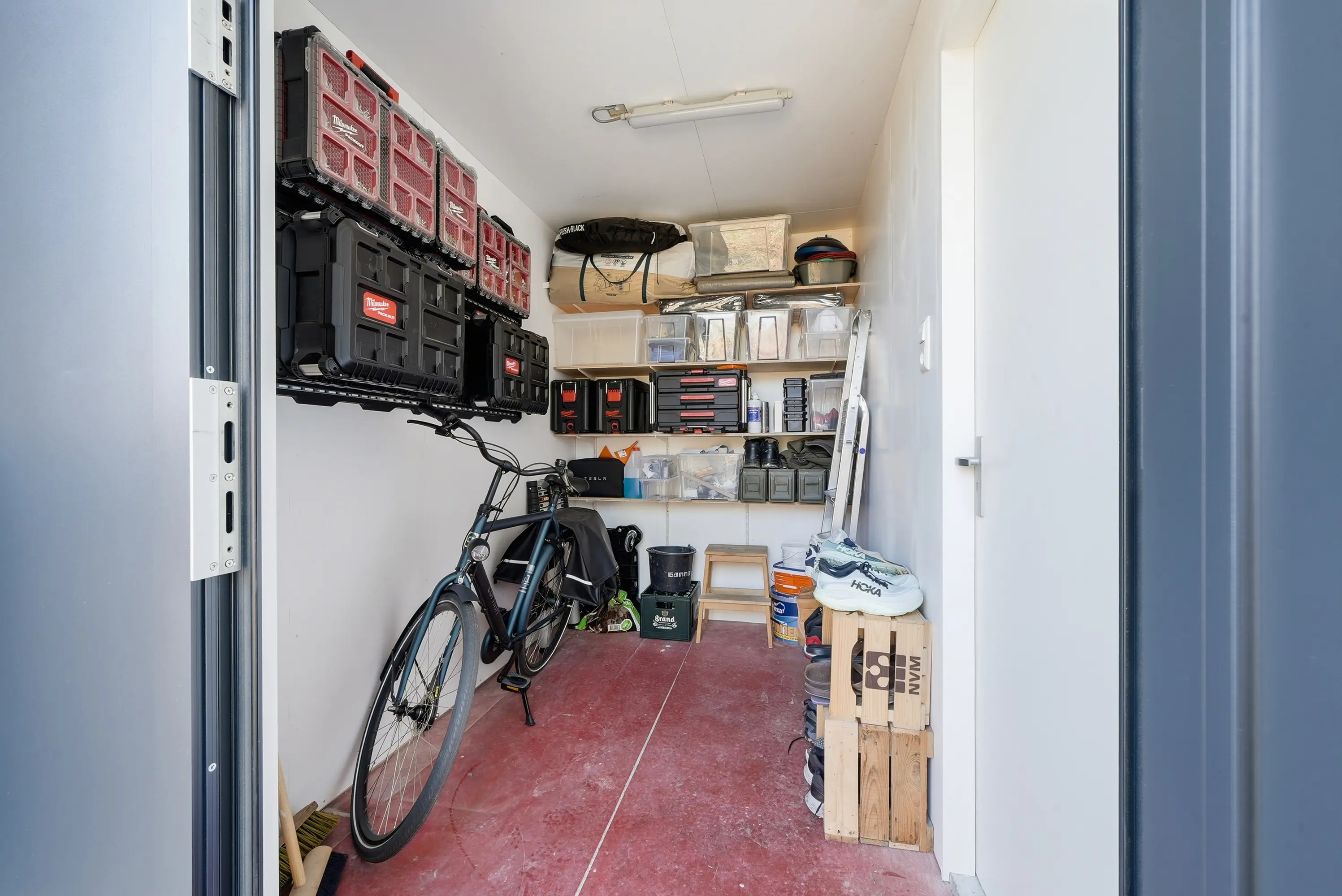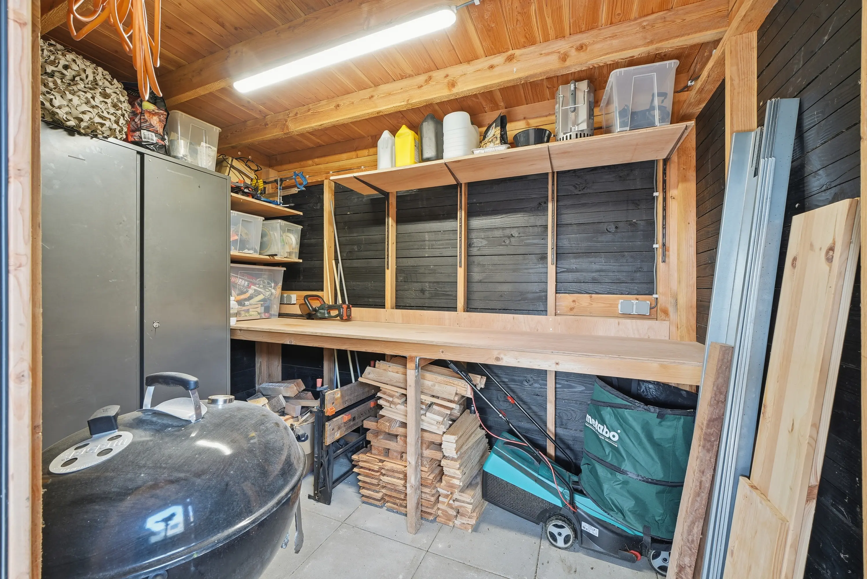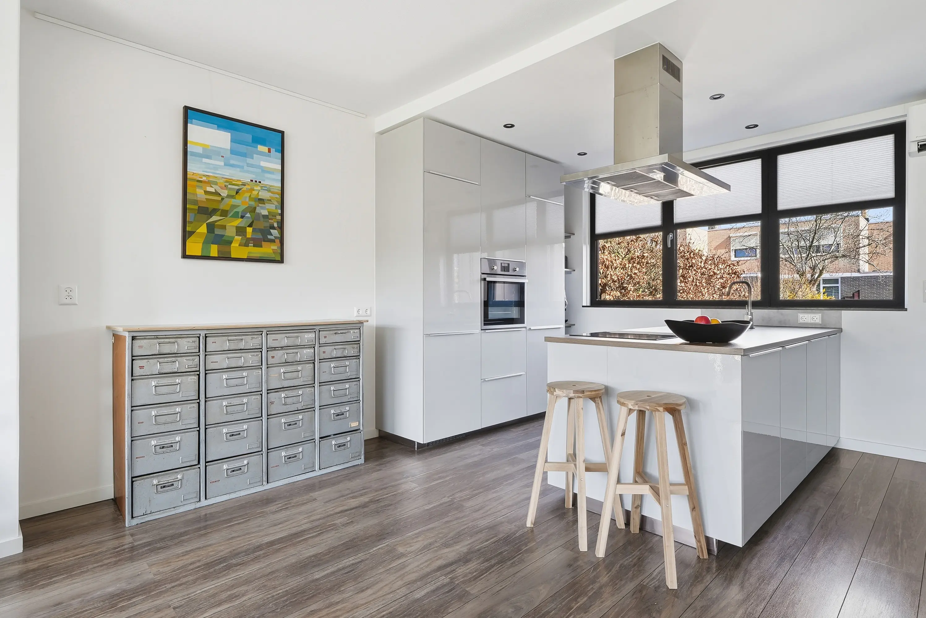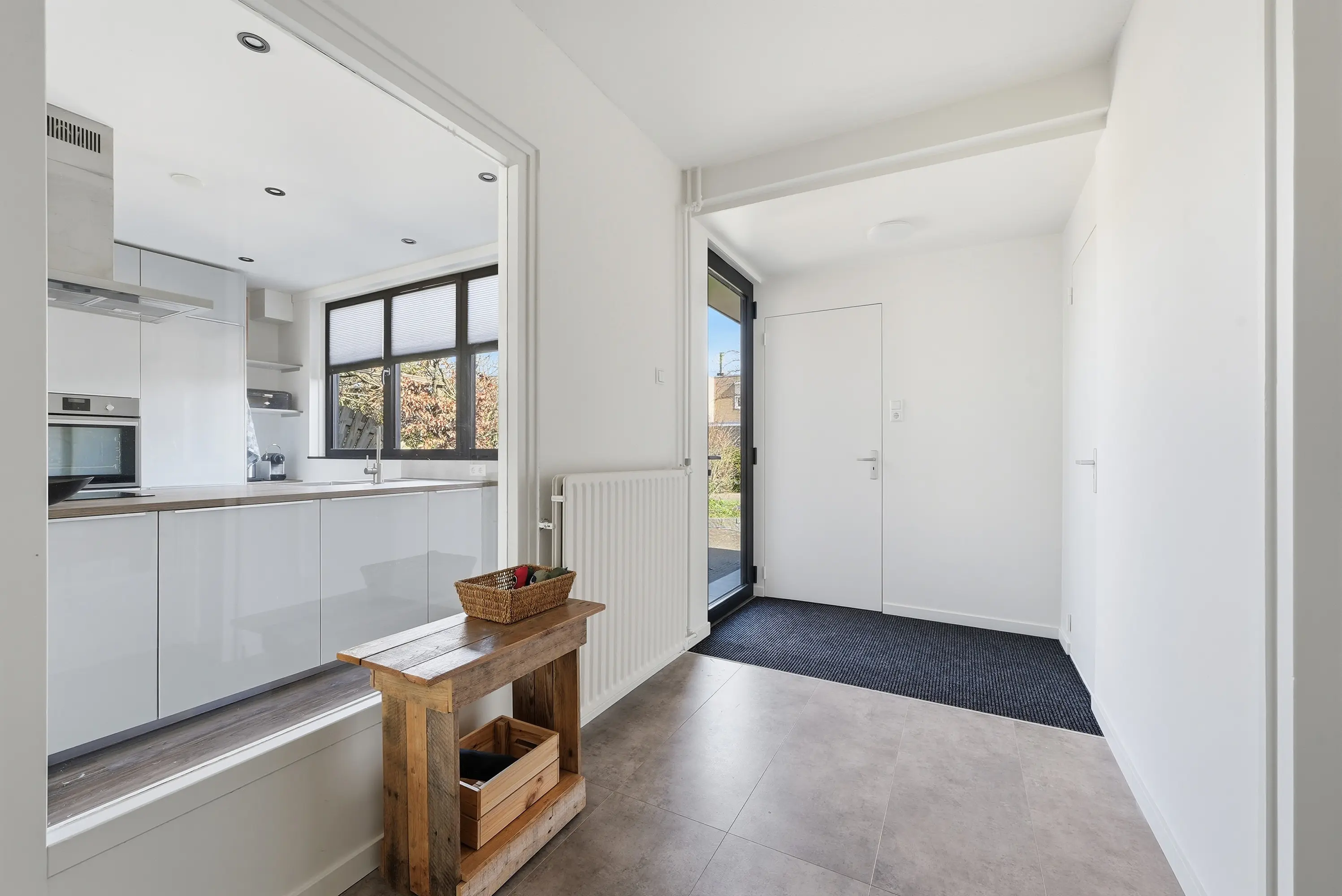 Aangrenzend aan de hal bevindt zich de praktische bijkeuken/berging. Deze ruimte is tevens vanaf de oprit toegankelijk, ideaal voor dagelijks gebruik.