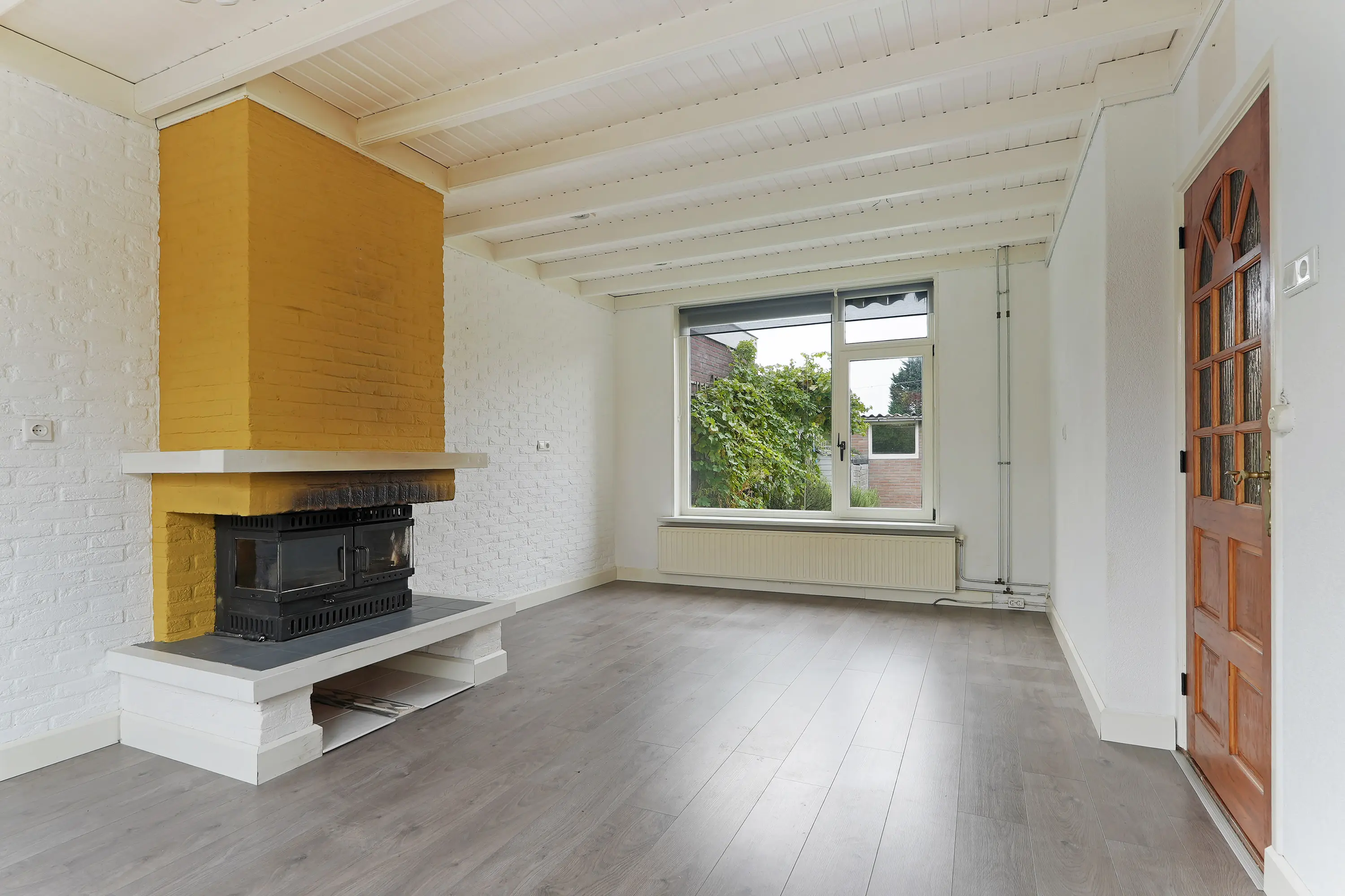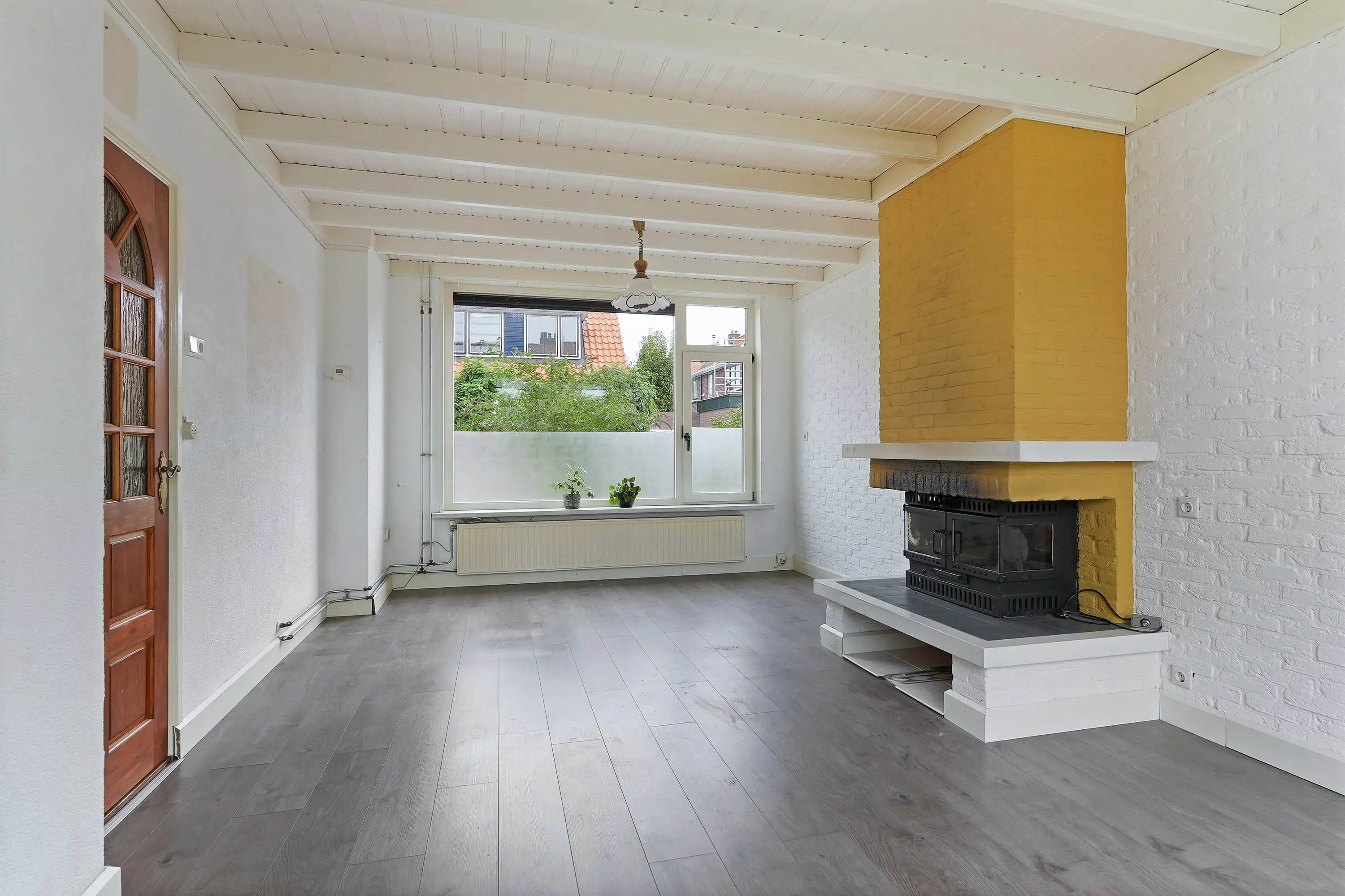 Bij binnenkomst treft u de hal met meterkast, toilet en trapopgang. Vanuit de hal heeft u toegang tot zowel de woonkamer als de keuken. De woonkamer is royaal opgezet, strekt zich uit over de gehele lengte van de woning en wordt dankzij de grote raampartijen overspoeld met daglicht. Hier vindt u tevens een houtkachel, een behaaglijke warmte voor in de koude wintermaanden.