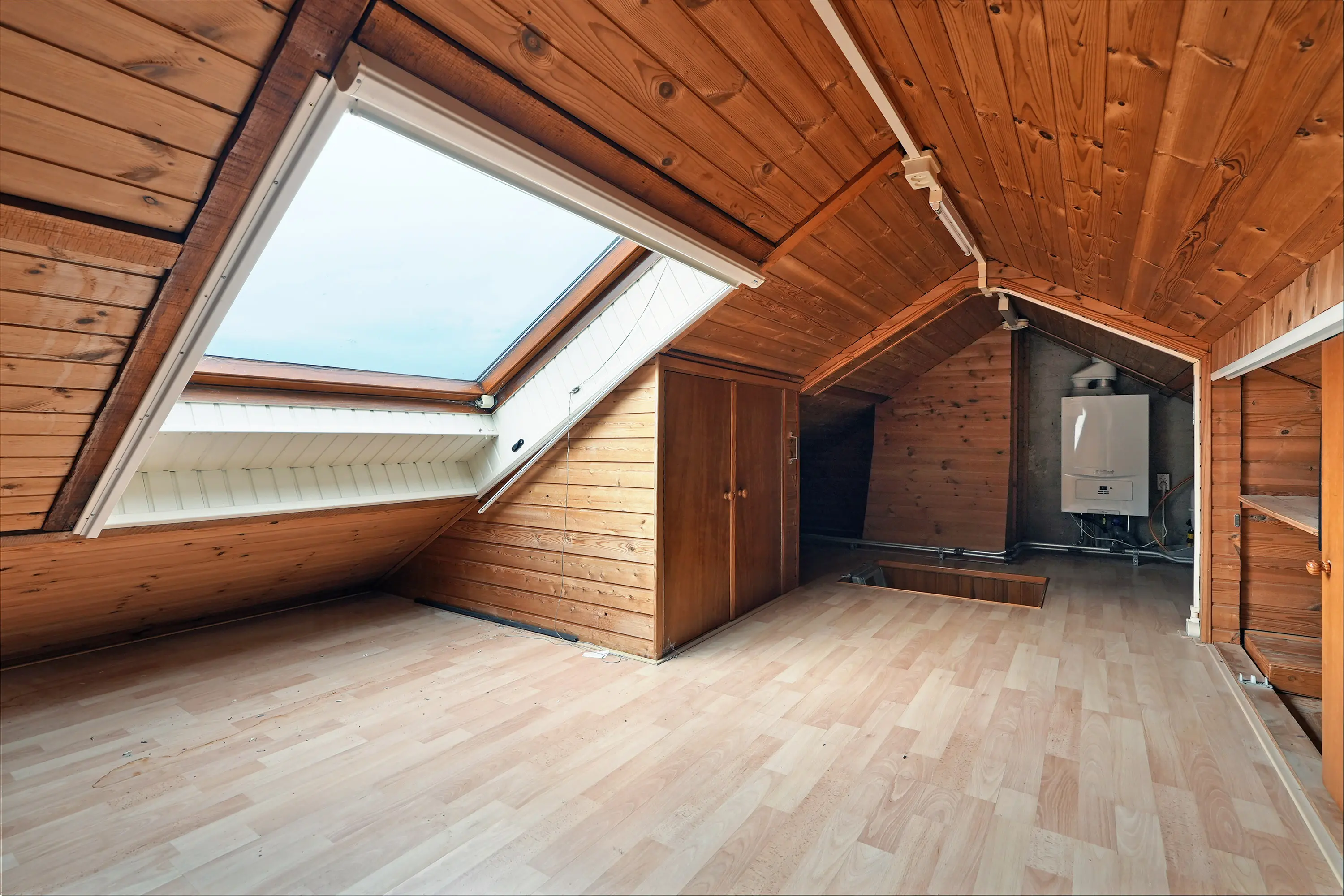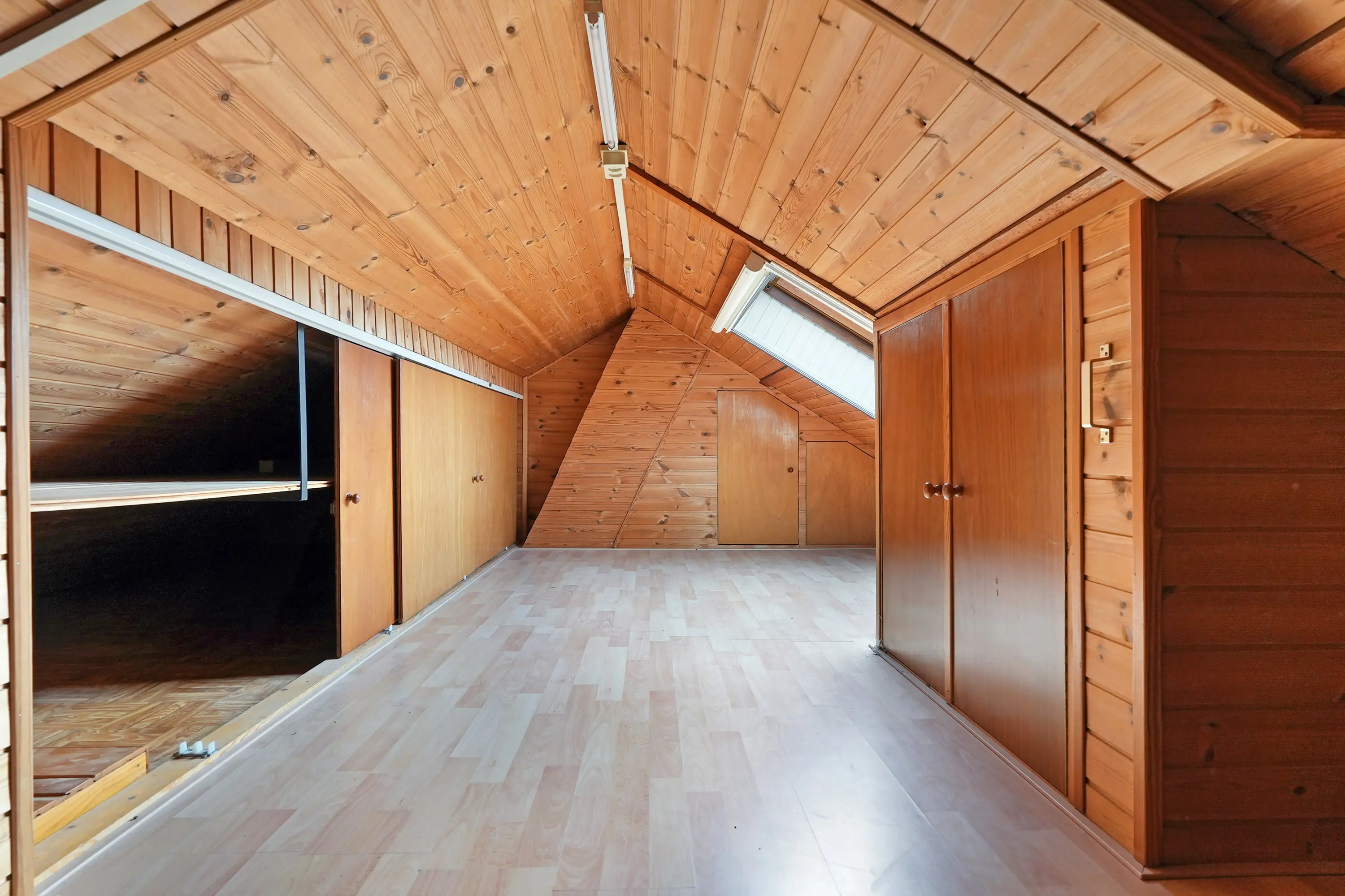 Via een luik op de overloop bereikt u de bergzolder. Deze ruimte is uitstekend geschikt als opslag voor seizoensspullen, koffers of andere zaken die u niet dagelijks nodig heeft.