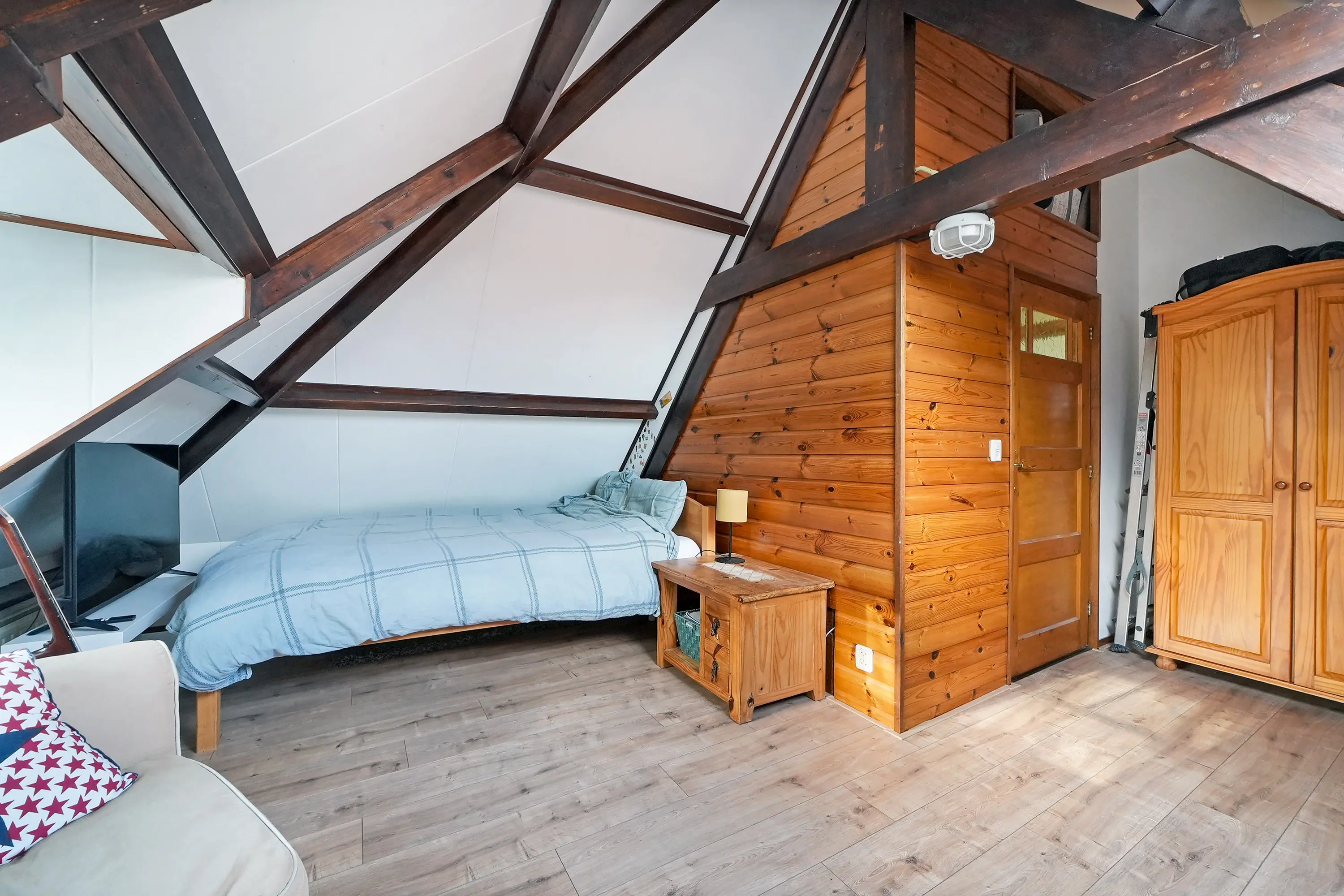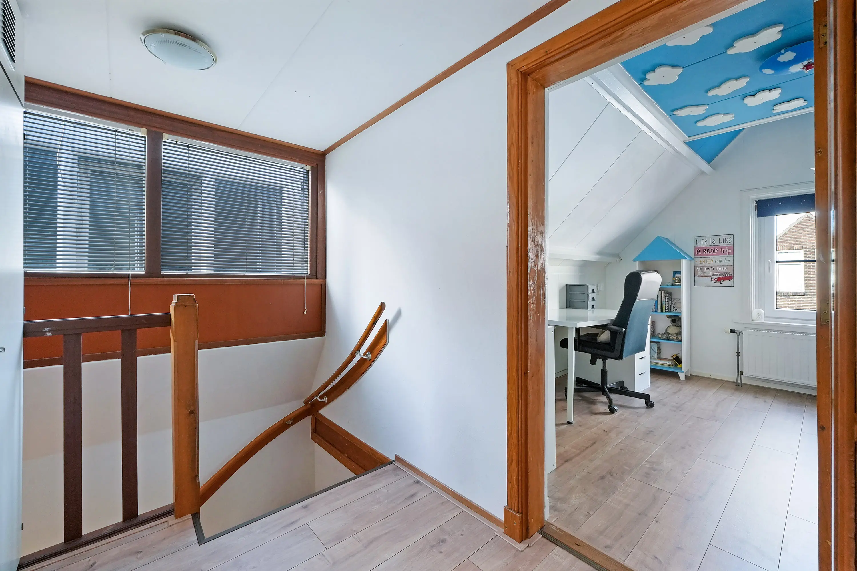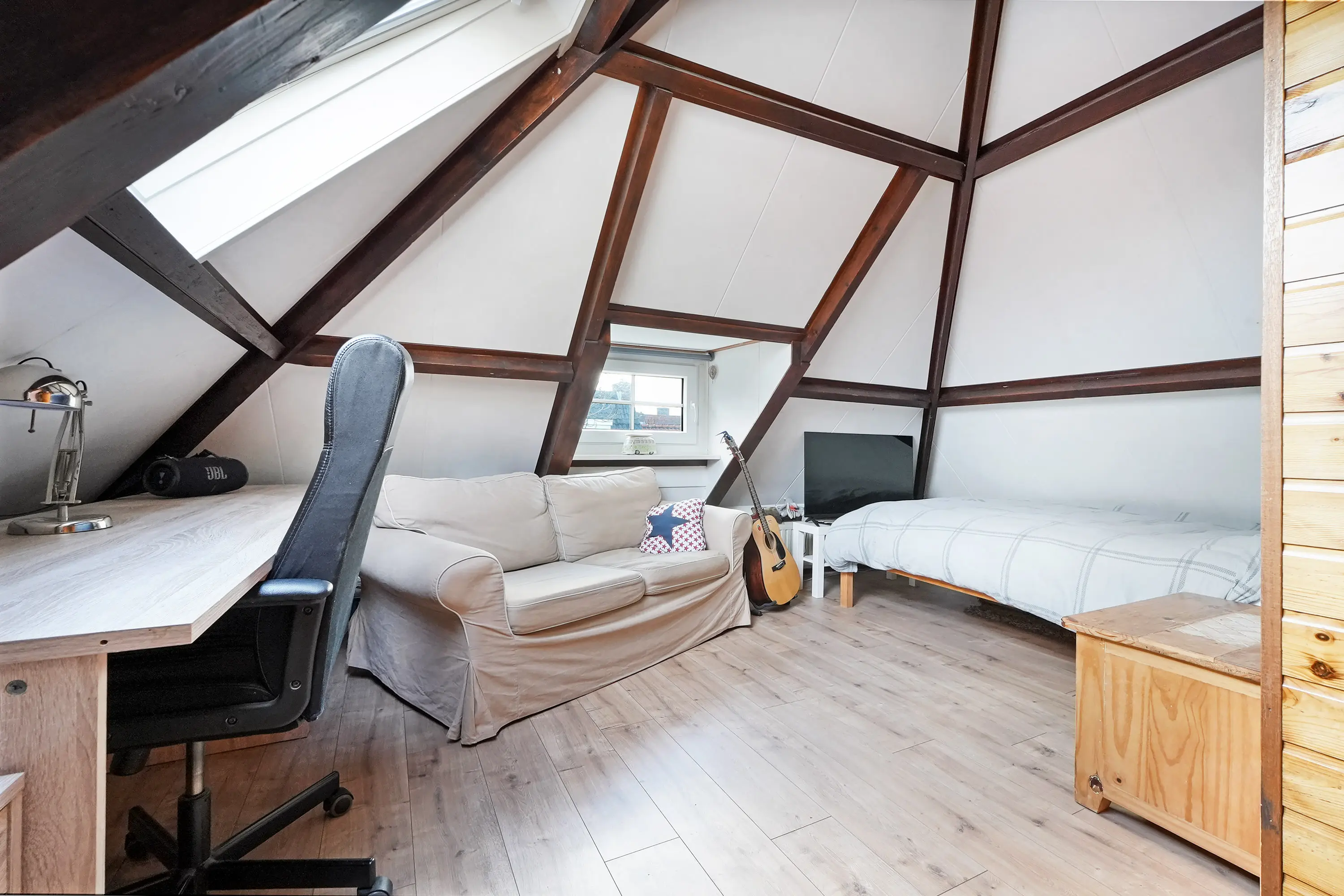 De tweede verdieping biedt een overloop met kastruimte en de CV-opstelling (2023). Zowel aan de voor- als achterzijde bevinden zich ruime slaapkamers. De zichtbare authentieke spanten geven deze verdieping een unieke en sfeervolle uitstraling.