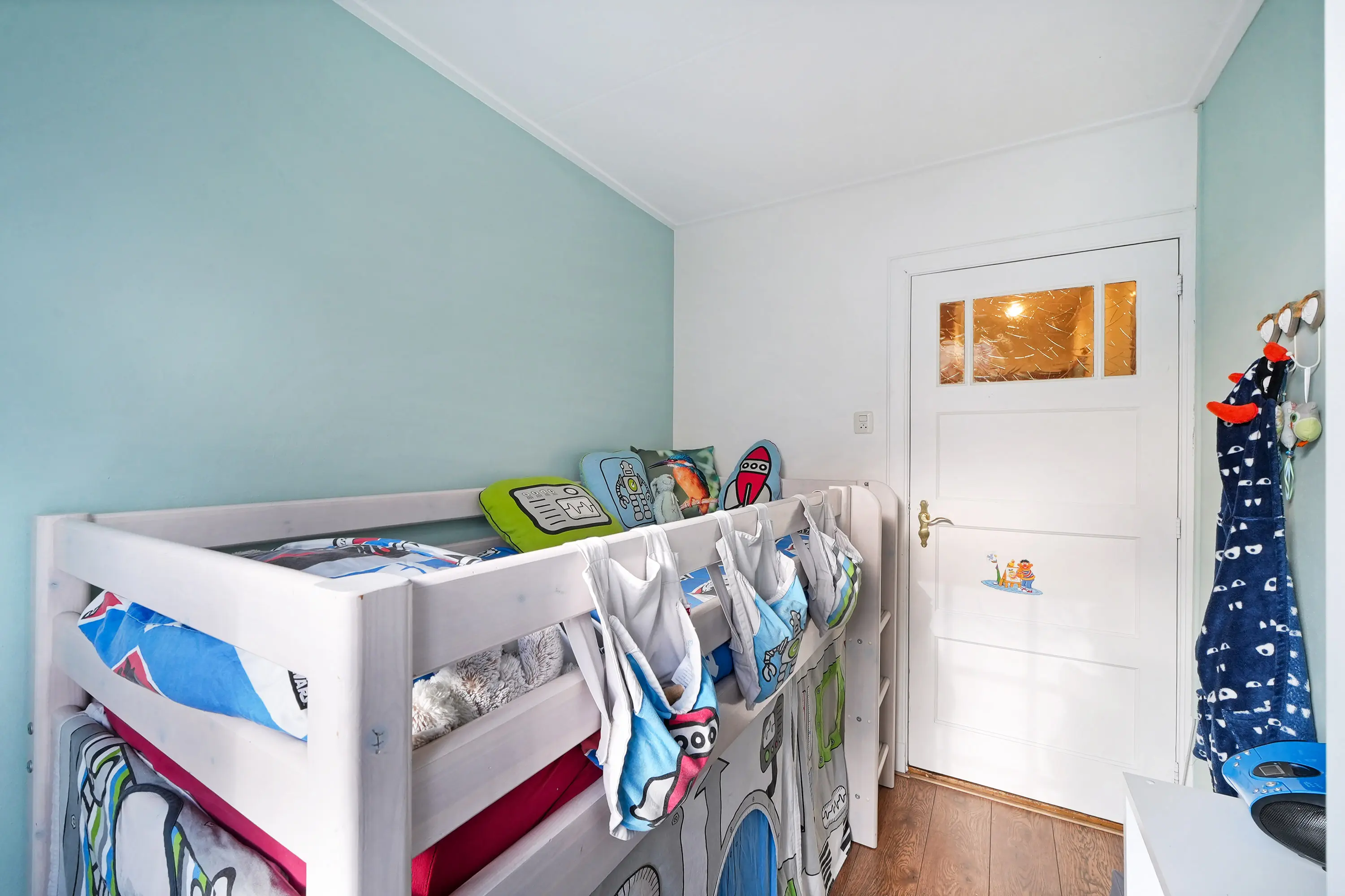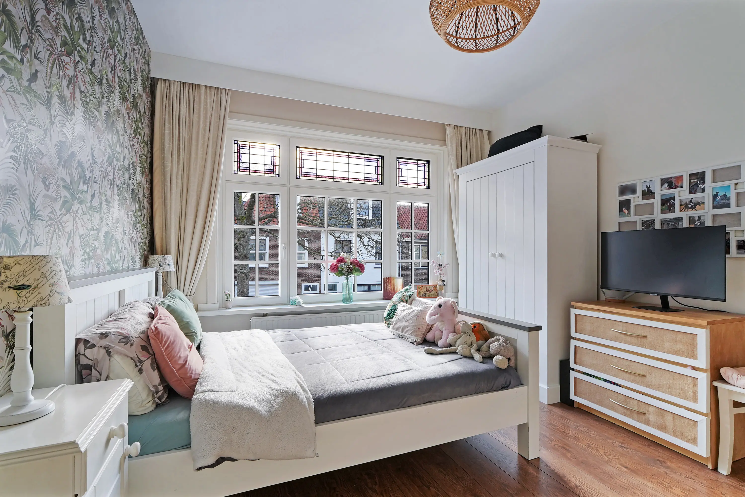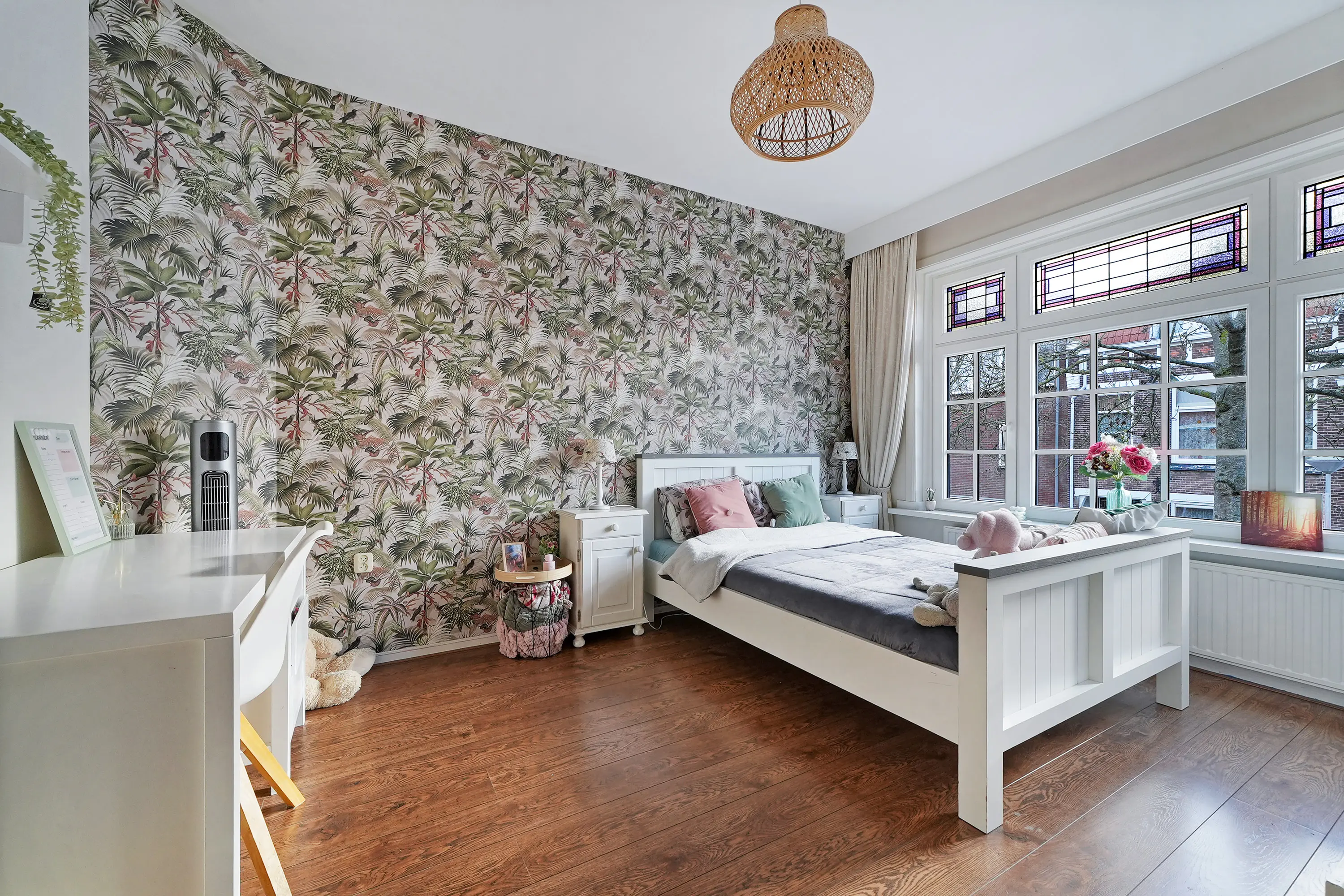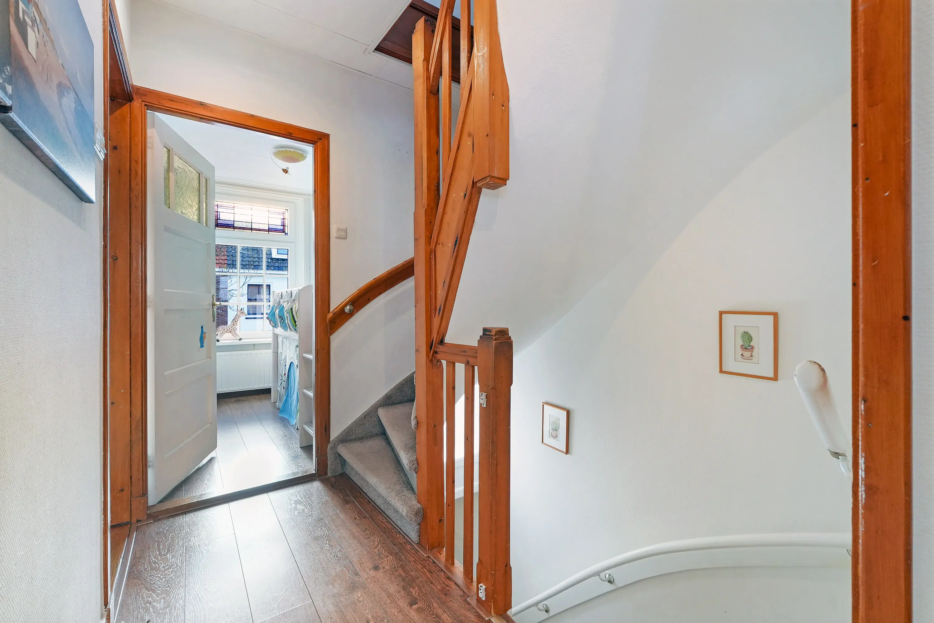 Op de eerste verdieping bevinden zich twee slaapkamers aan de voorzijde. Aan de achterzijde ligt een royale slaapkamer met openslaande deuren naar het dakterras een heerlijke plek om buiten te zitten. De badkamer (2020) is modern, licht en luxe uitgevoerd en beschikt over een wastafelmeubel, toilet, ligbad en aparte douche. Op de overloop bevindt zich tevens een aparte wasruimte, wat zorgt voor extra comfort en gemak.
