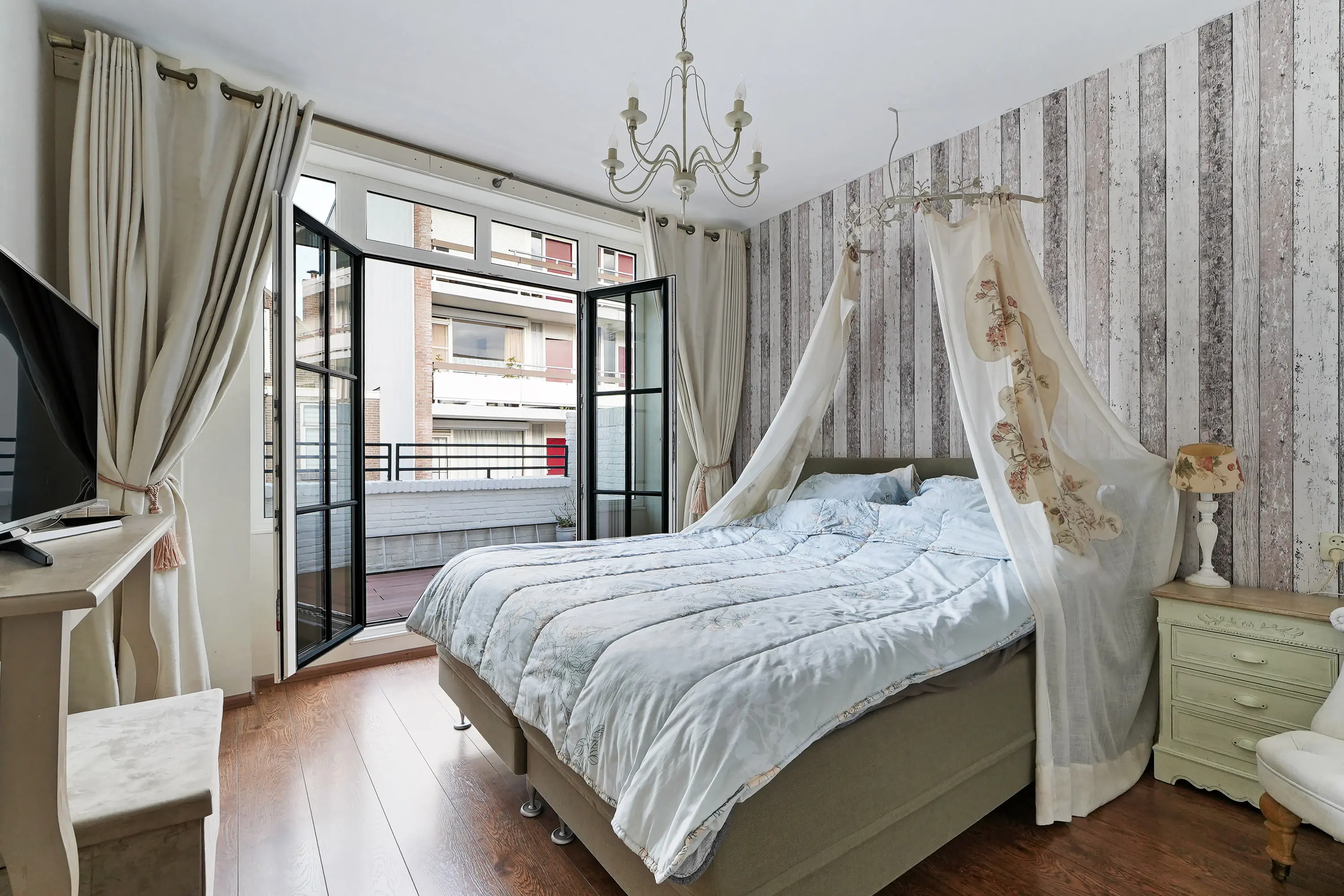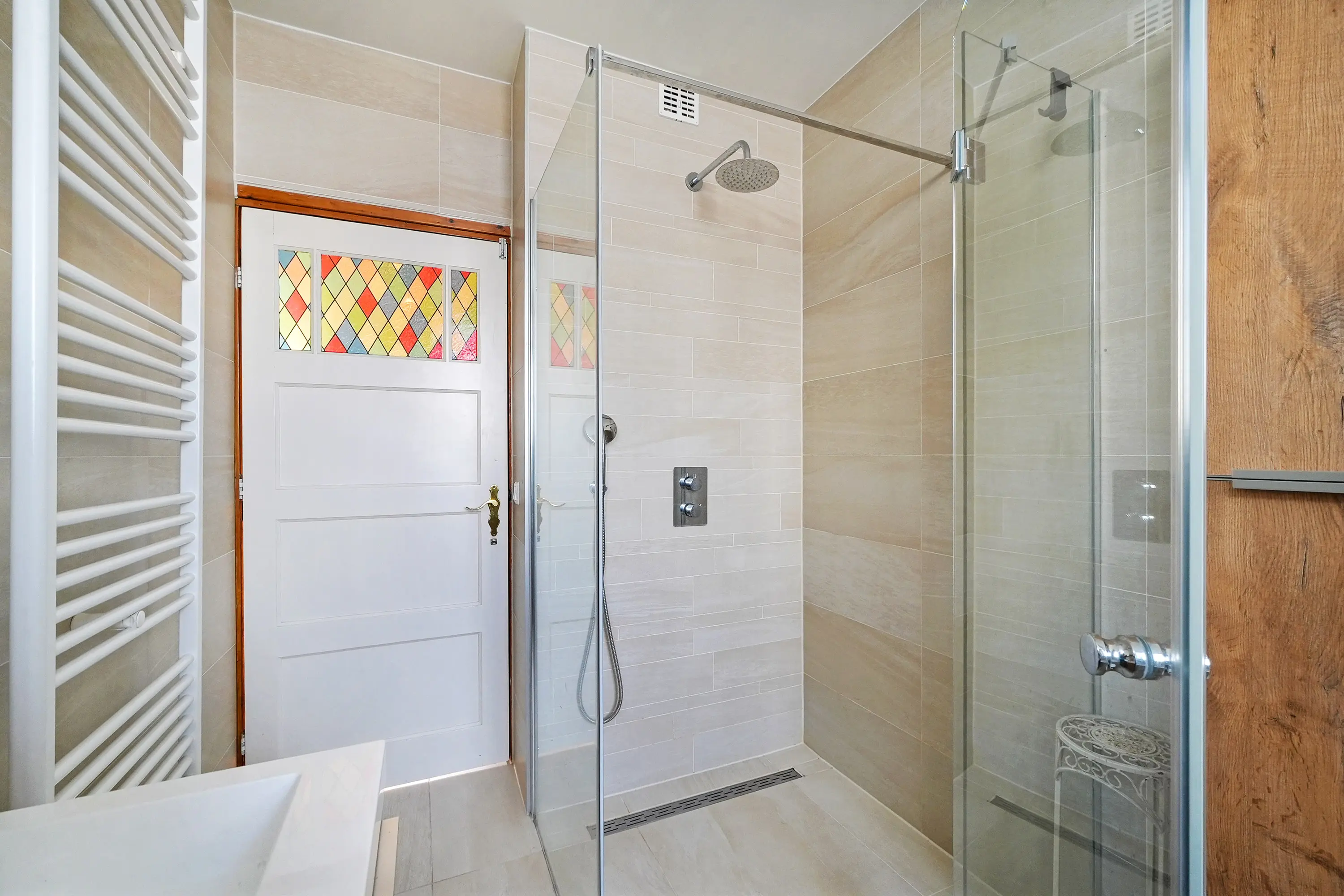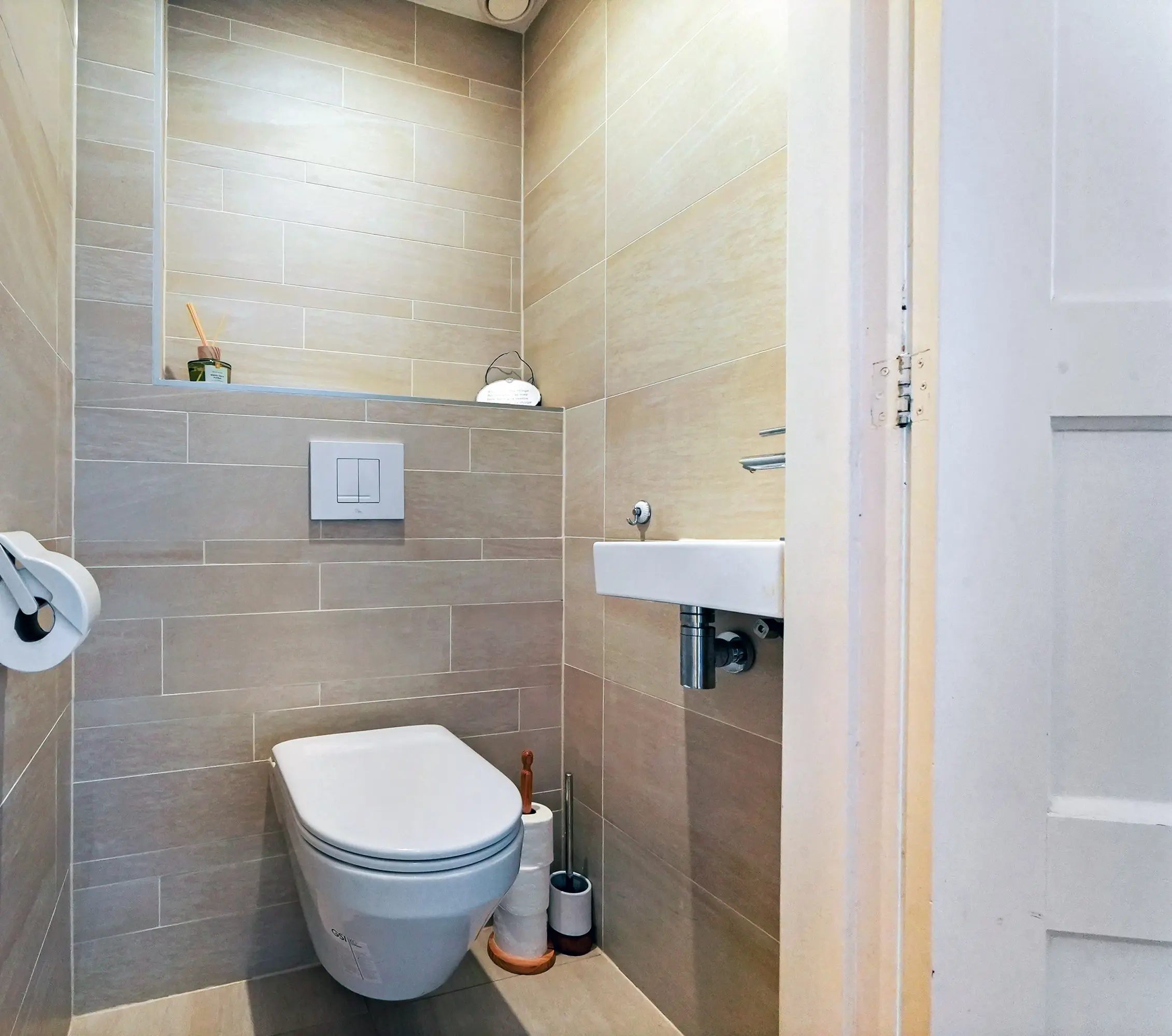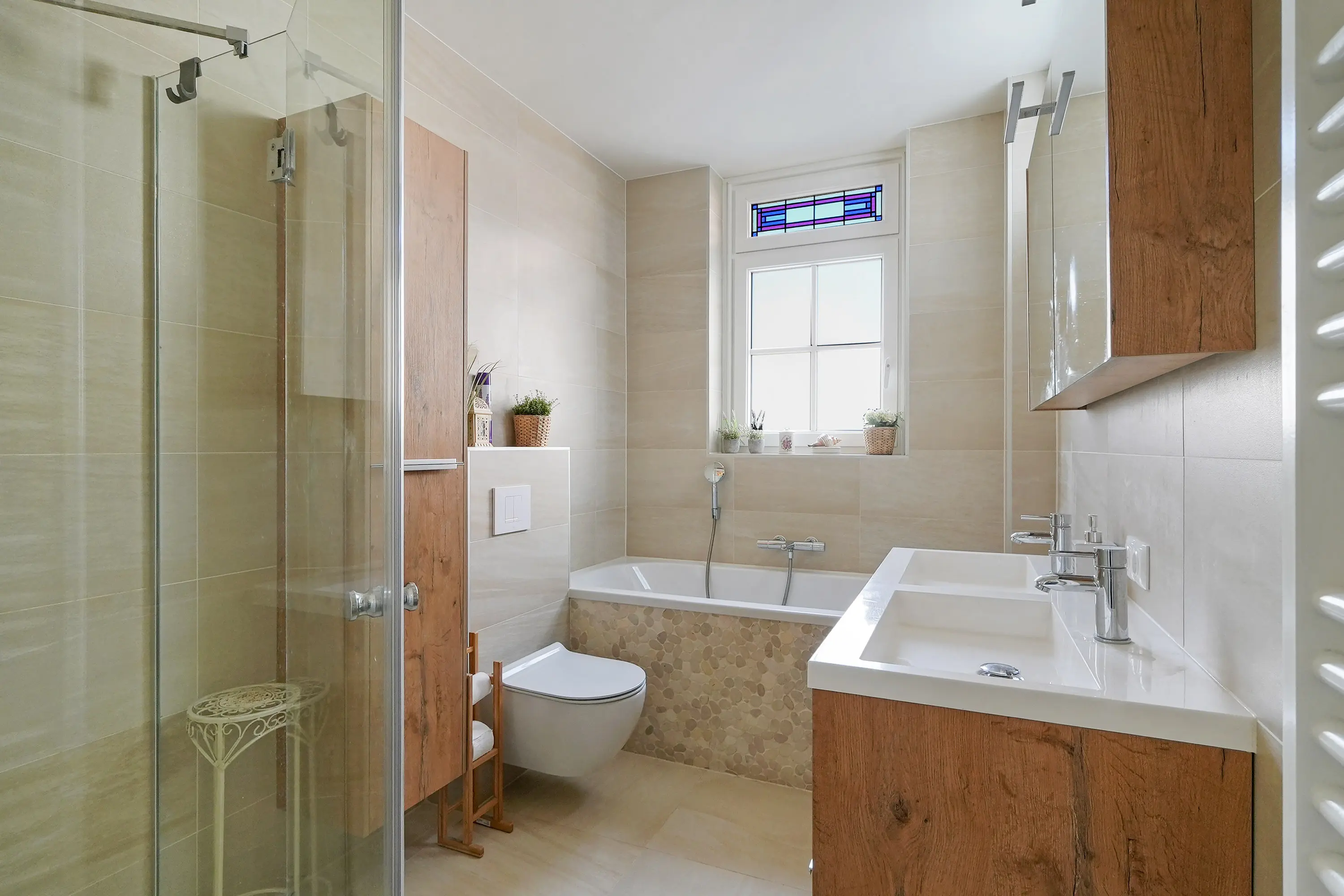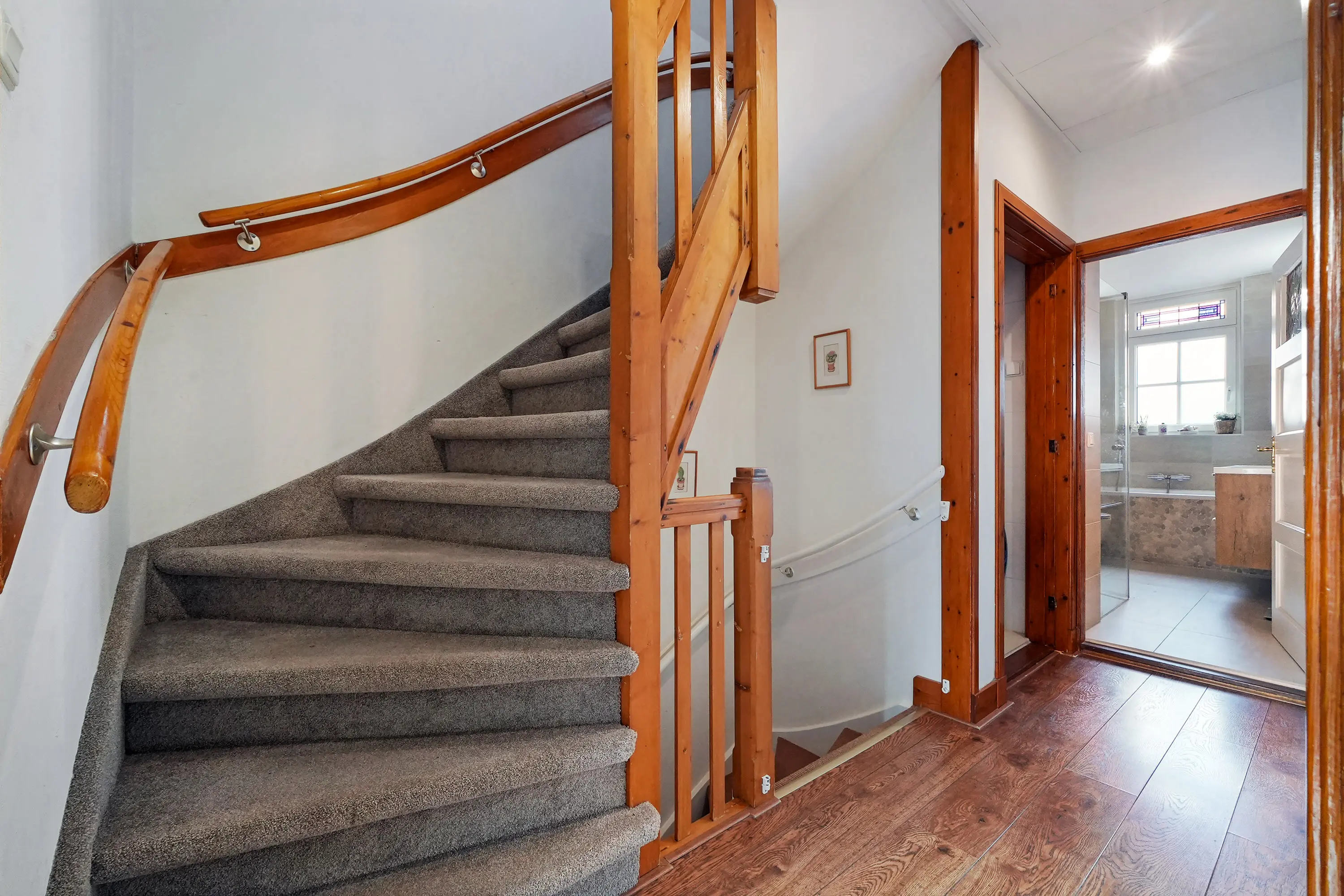 Op de eerste verdieping bevinden zich twee slaapkamers aan de voorzijde. Aan de achterzijde ligt een royale slaapkamer met openslaande deuren naar het dakterras een heerlijke plek om buiten te zitten. De badkamer (2020) is modern, licht en luxe uitgevoerd en beschikt over een wastafelmeubel, toilet, ligbad en aparte douche. Op de overloop bevindt zich tevens een aparte wasruimte, wat zorgt voor extra comfort en gemak.