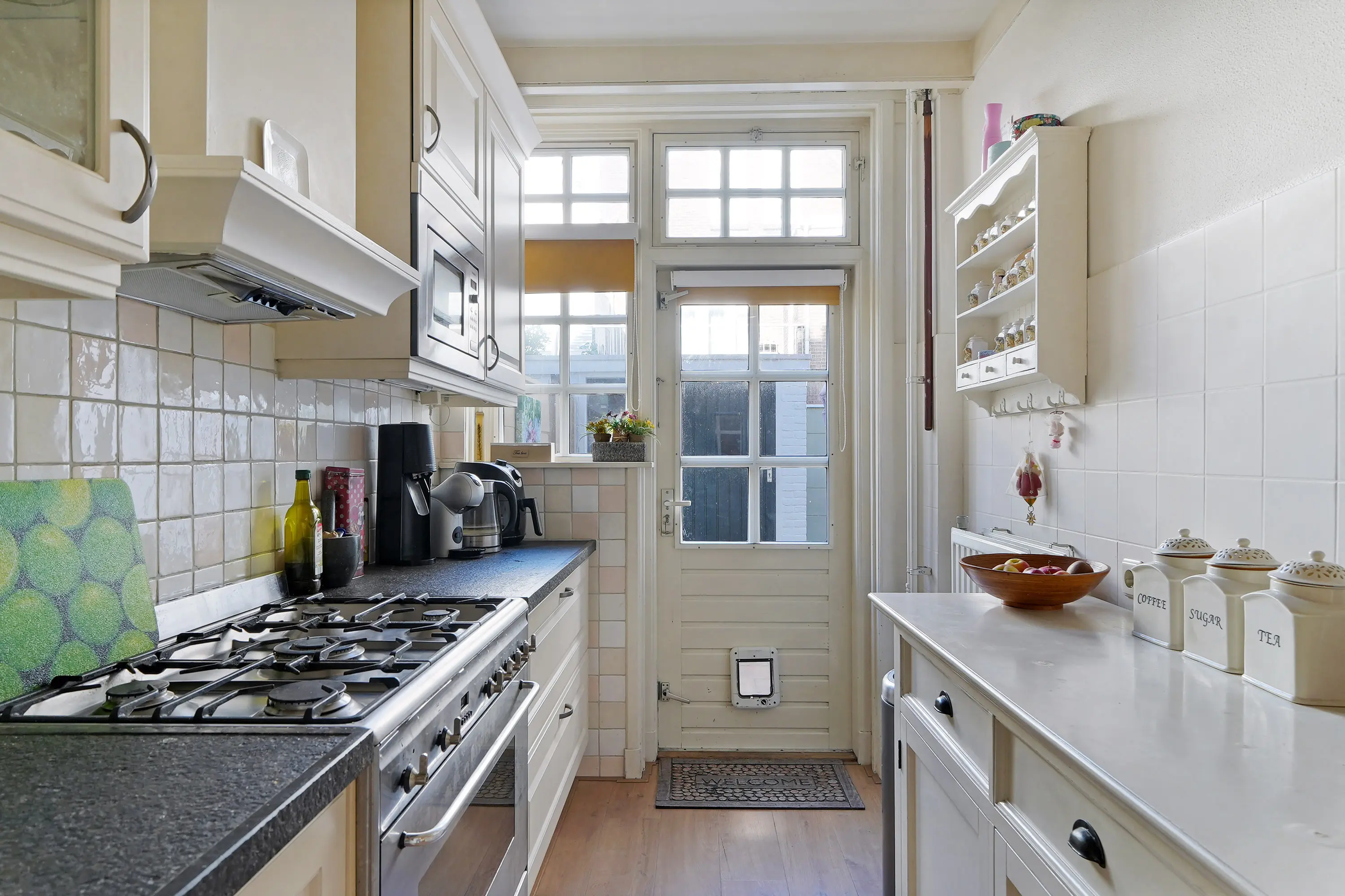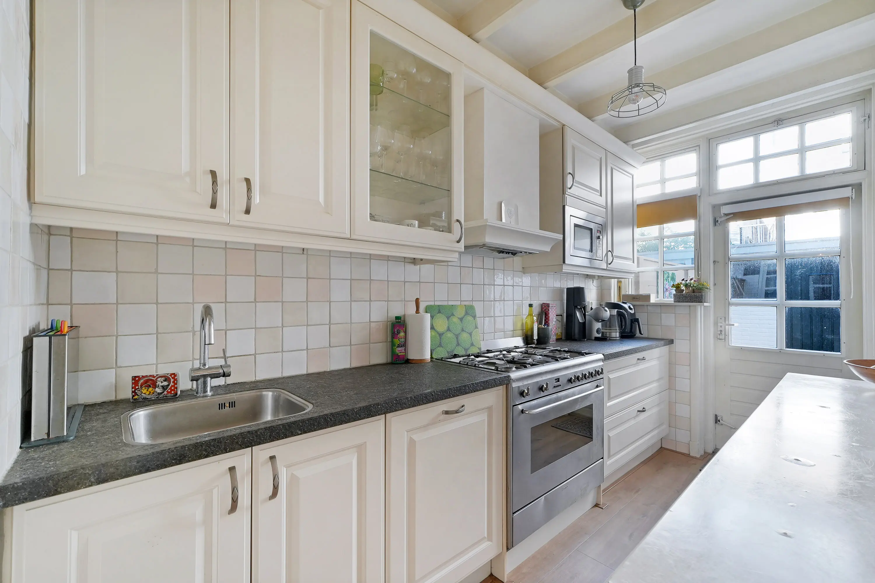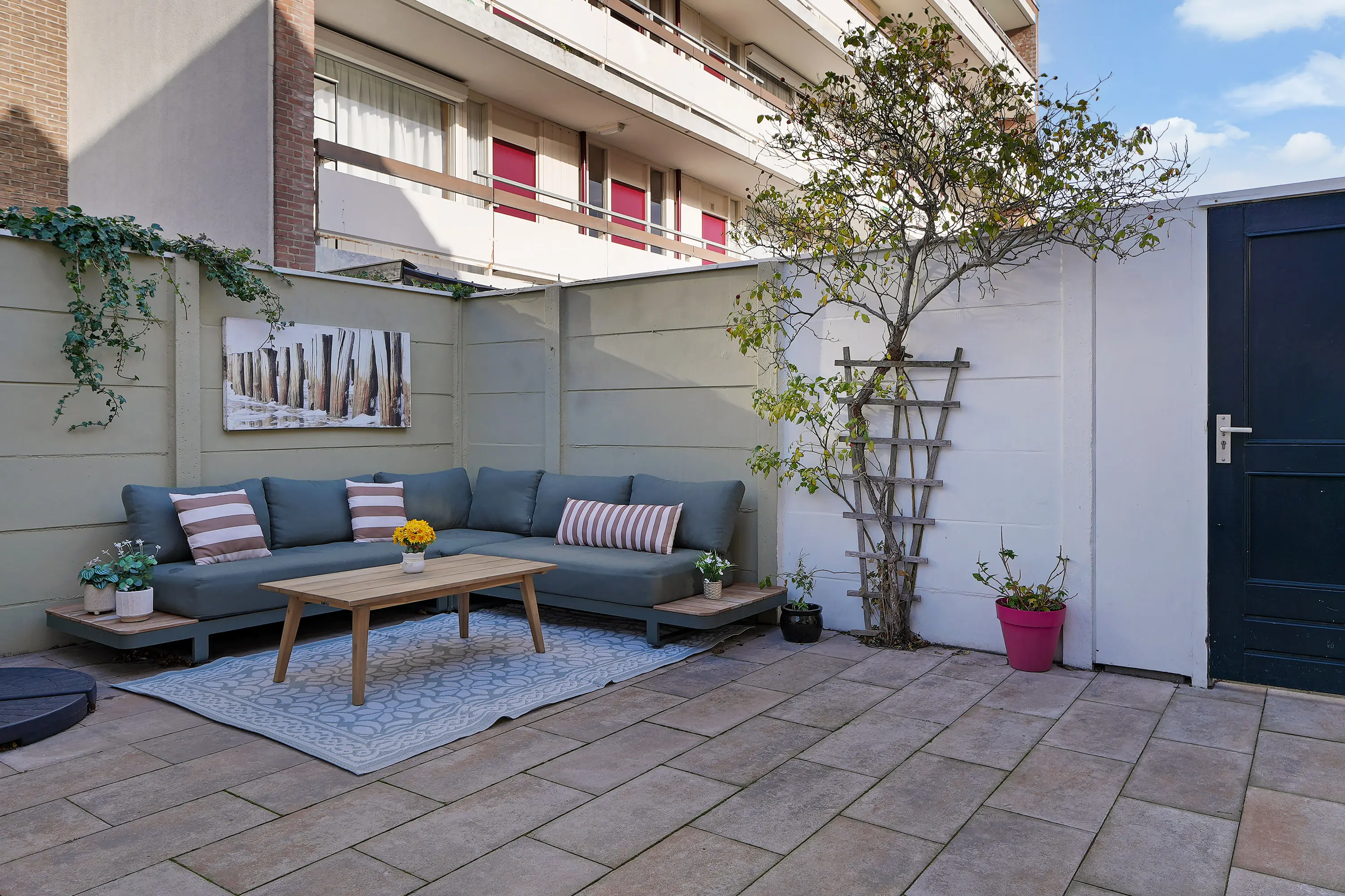 De achtertuin is bereikbaar via de openslaande deuren vanuit de woonkamer en biedt een fijne, beschutte buitenruimte om te ontspannen of gezellig te tafelen. Een prettige verlenging van de leefruimte binnenshuis. Daarnaast is er een (zij) achterom aanwezig, ideaal voor o.a. de fiets.