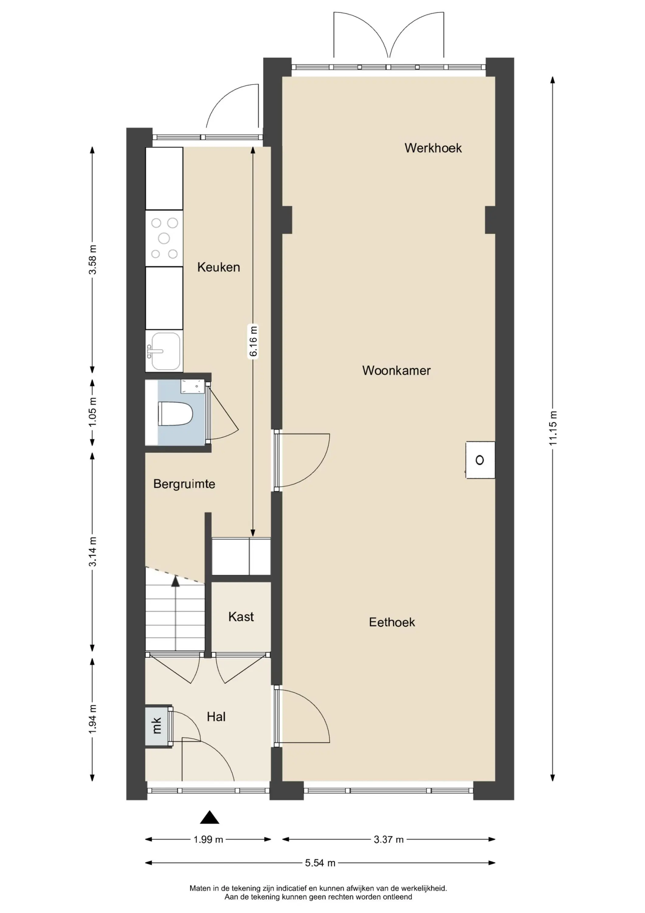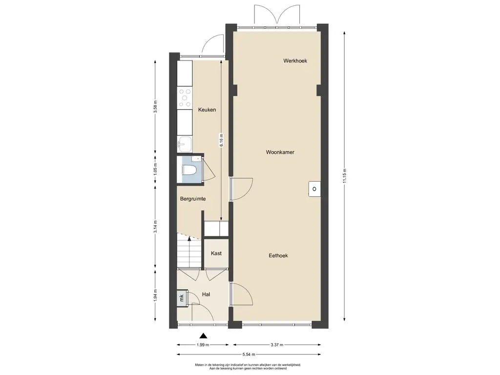Deze informatie is door ons met de nodige zorgvuldigheid samengesteld. Onzerzijds wordt echter geen enkele aansprakelijkheid aanvaard voor enige onvolledigheid, onjuistheid of anderszins, dan wel de gevolgen daarvan. Alle opgegeven maten en oppervlakten zijn indicatief.