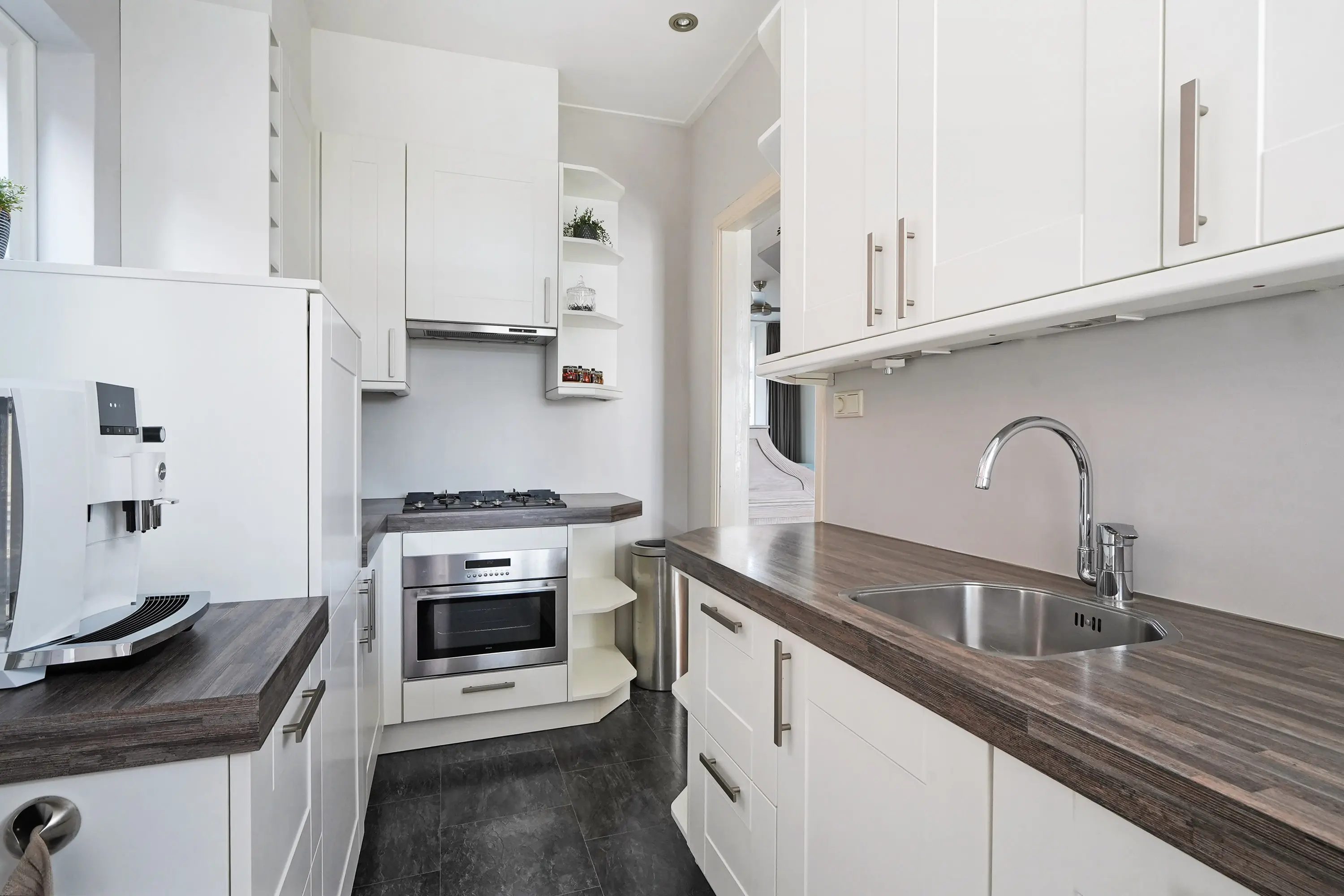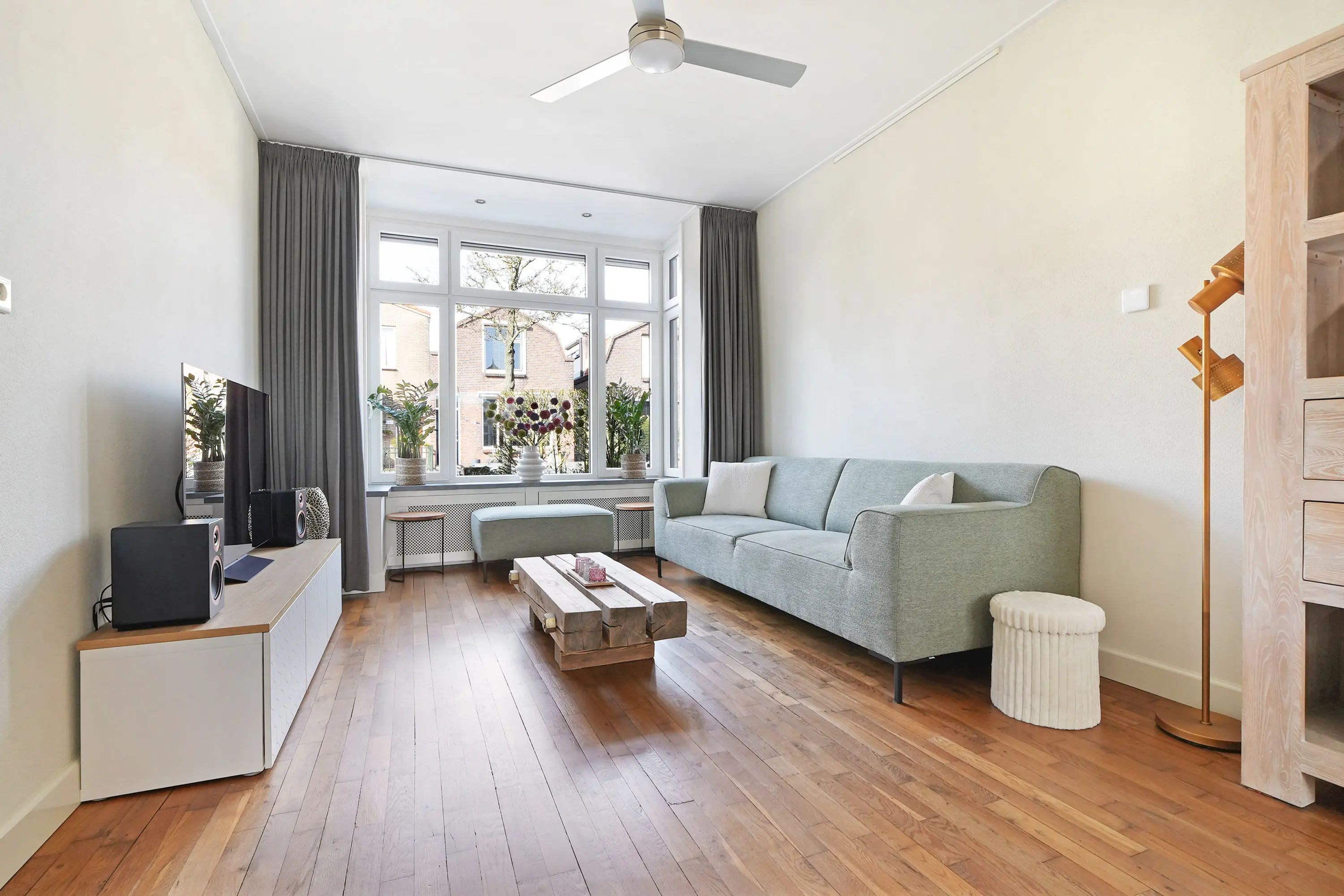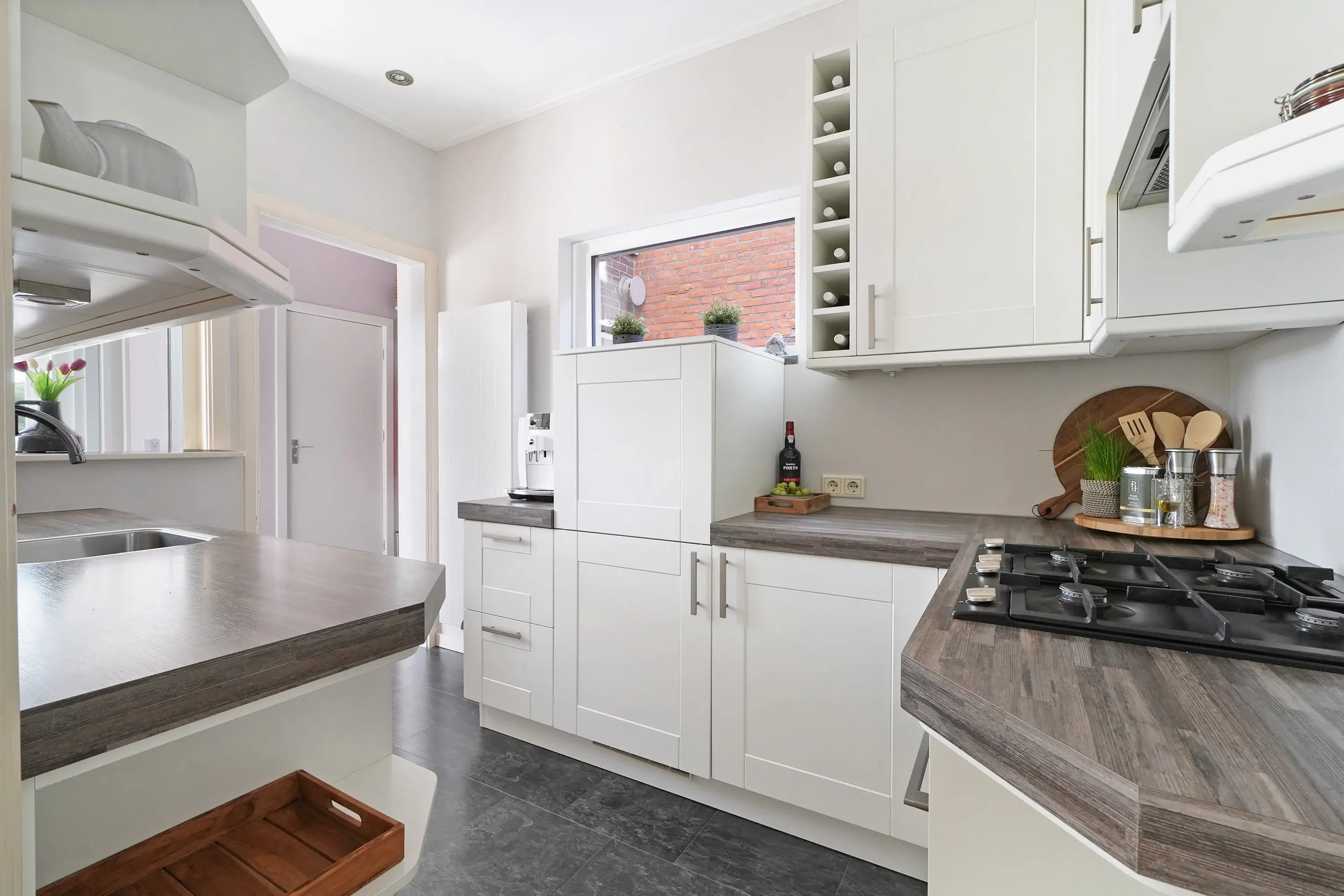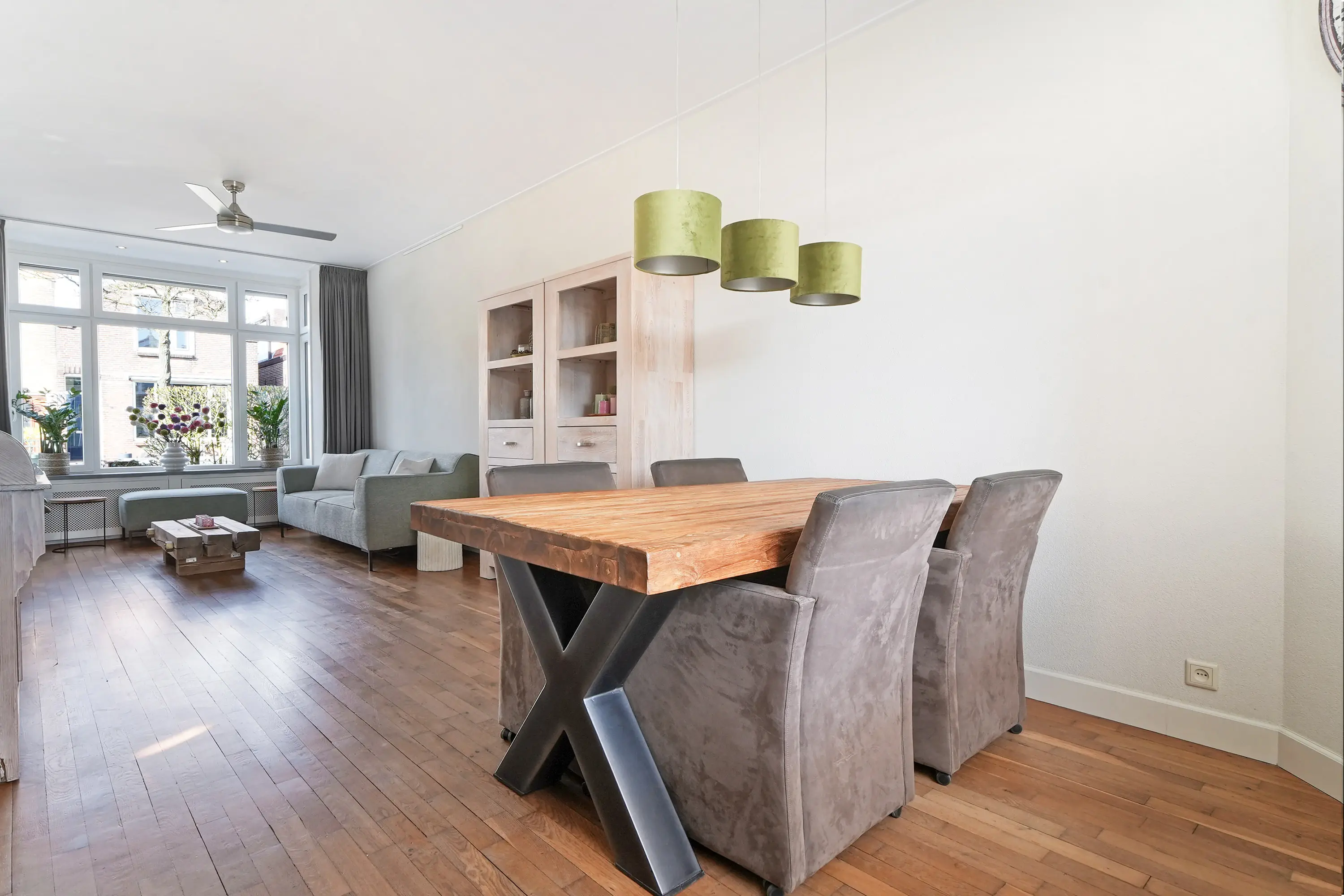 U betreedt de woning via de hal met meterkast (vernieuwd en uitgebreid in 2011), trapopgang en toilet. Aan de voorzijde bevindt zich de sfeervolle woonkamer met erker en een fijne lichtinval. Aan de achterzijde ligt de eetkamer met aansluitend de afgesloten, moderne keuken, voorzien van de wenselijke inbouwapparatuur, veel kastruimte en een tijdloze kleurstelling.