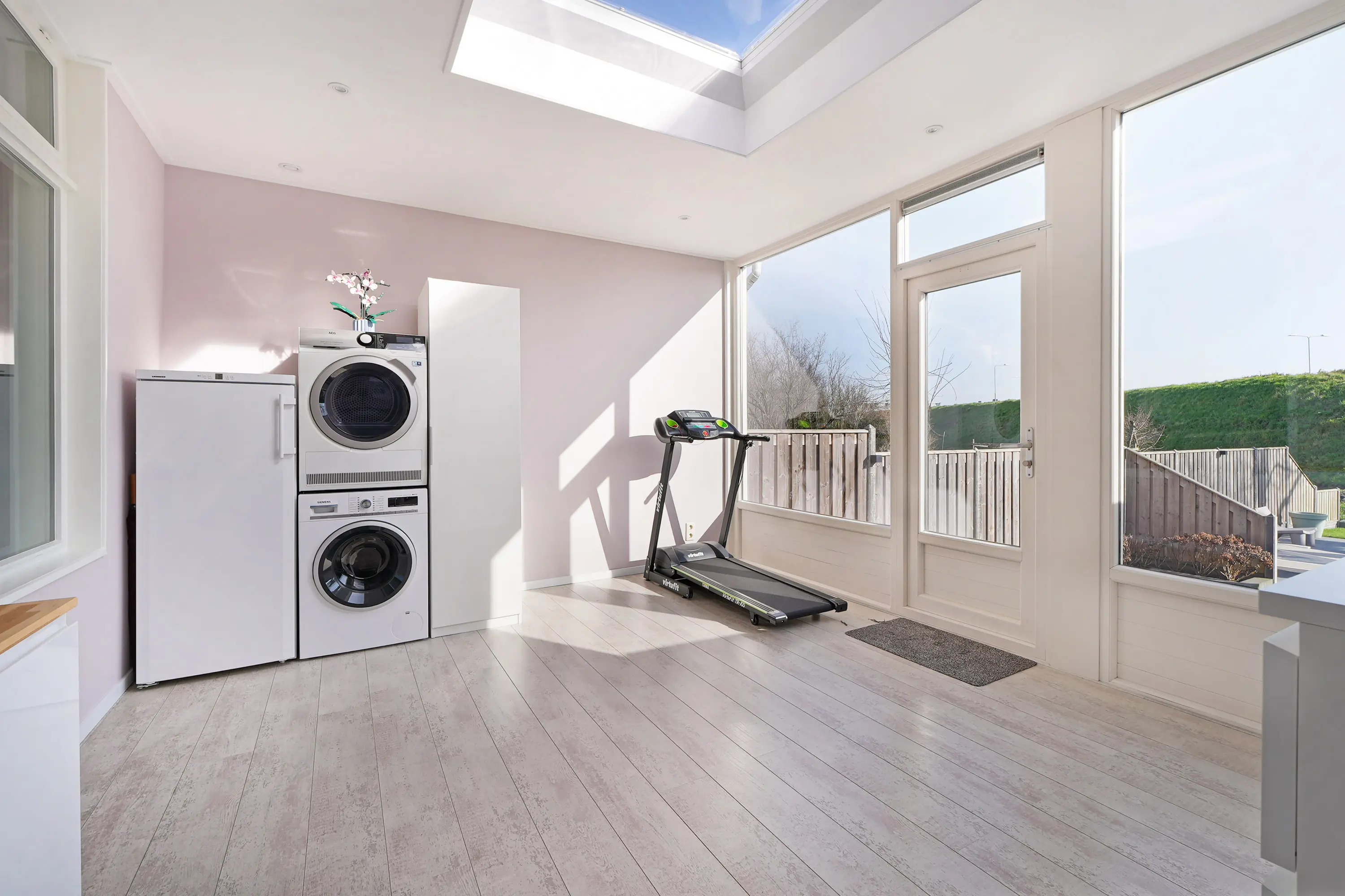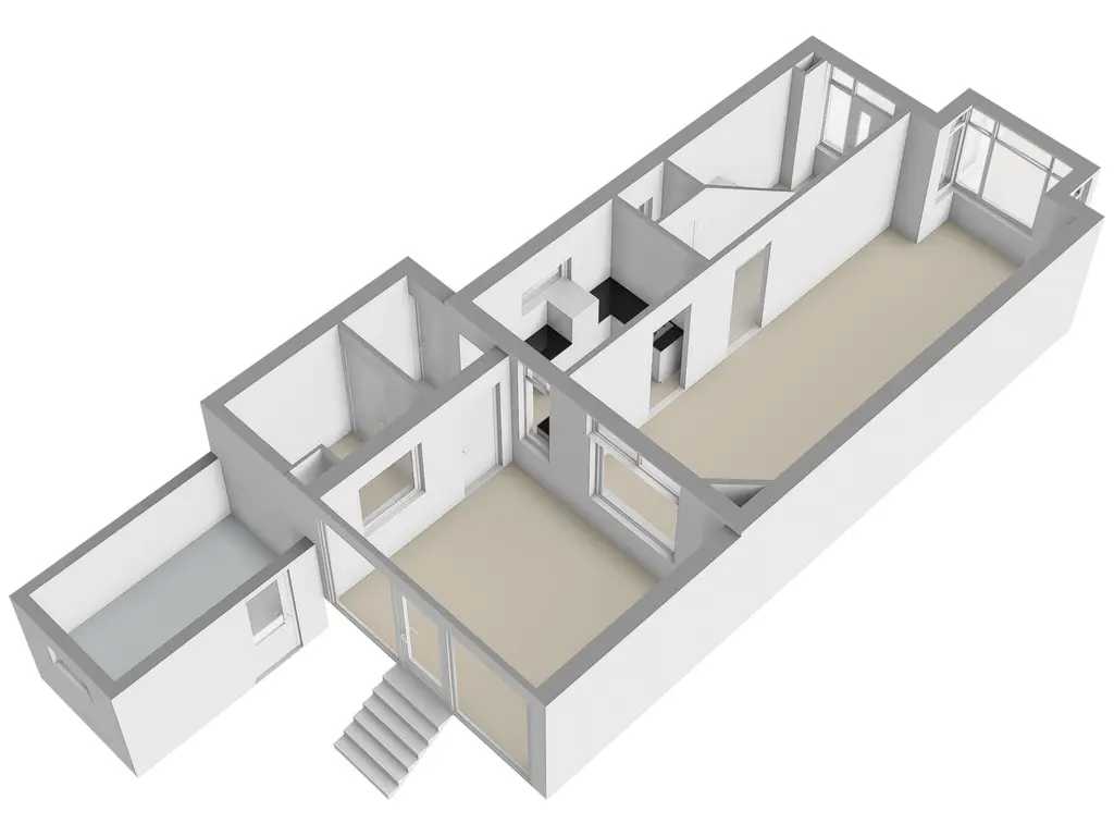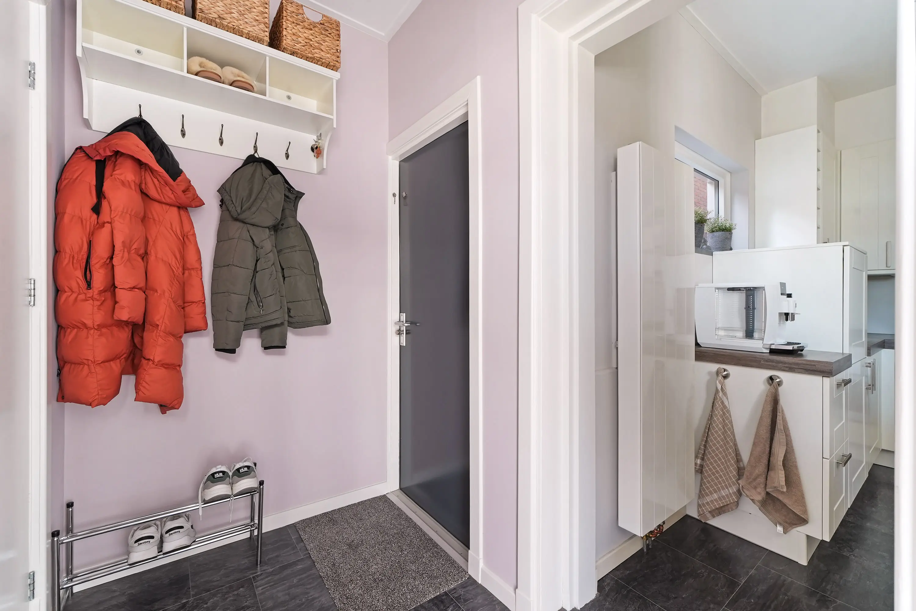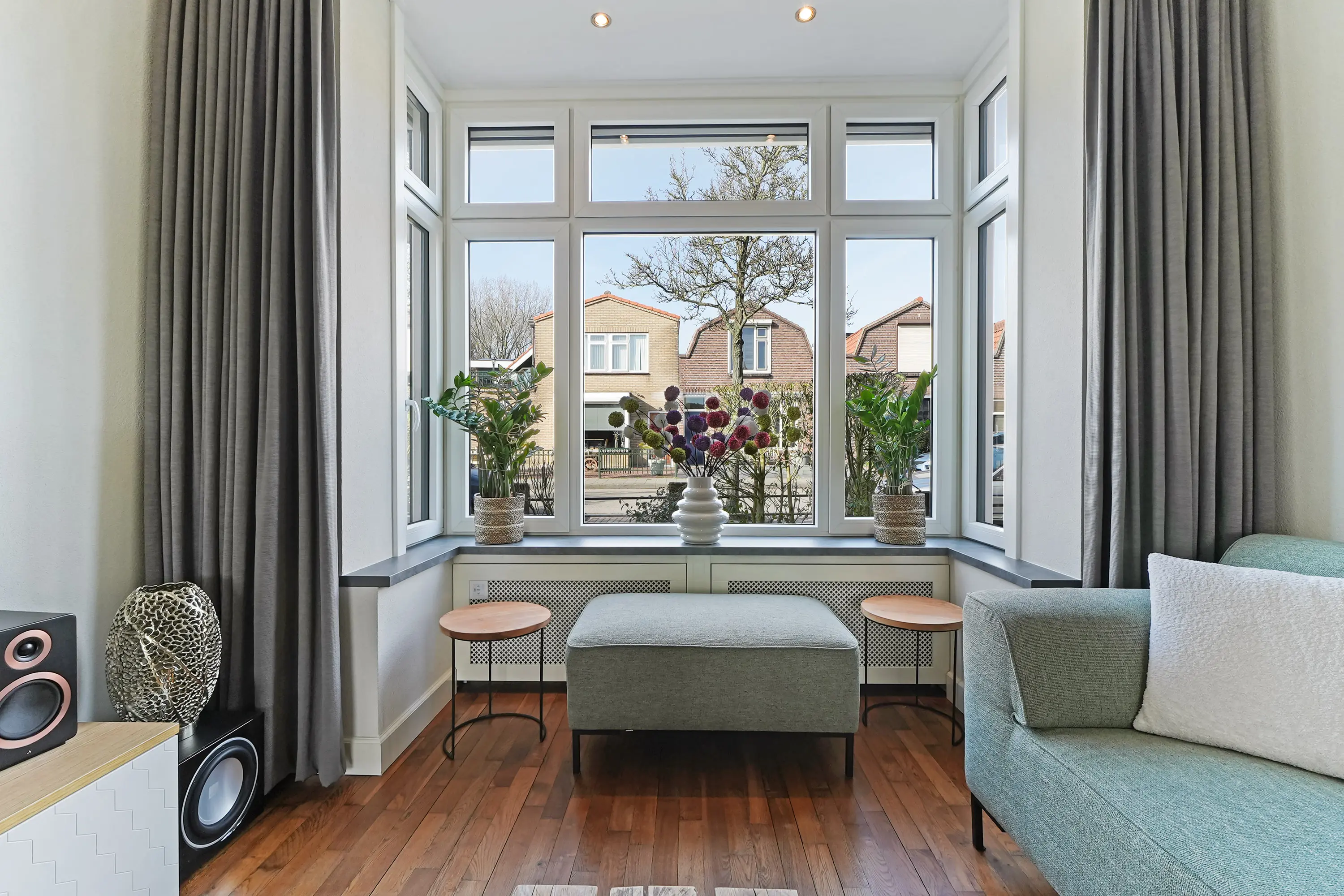 Vanuit de keuken komt u in het tussenportaal, waar u toegang heeft tot de werkkamer op de begane grond (gerealiseerd in 2020), ideaal voor thuiswerken of een hobbyruimte. Aansluitend bevindt zich de prachtige tuinkamer/serre (2010), een heerlijke lichte ruimte met mooi zicht op de tuin en directe toegang naar buiten.