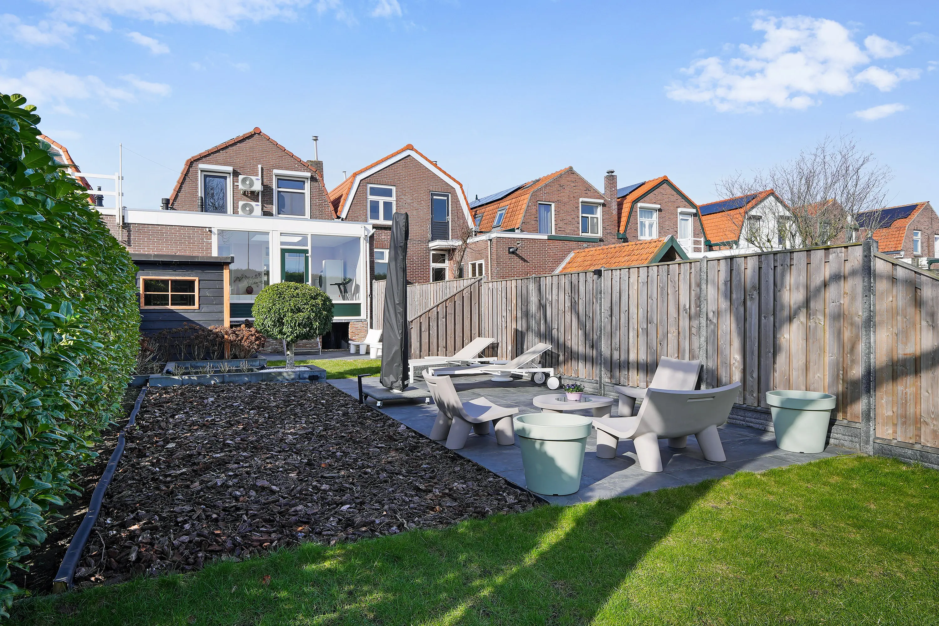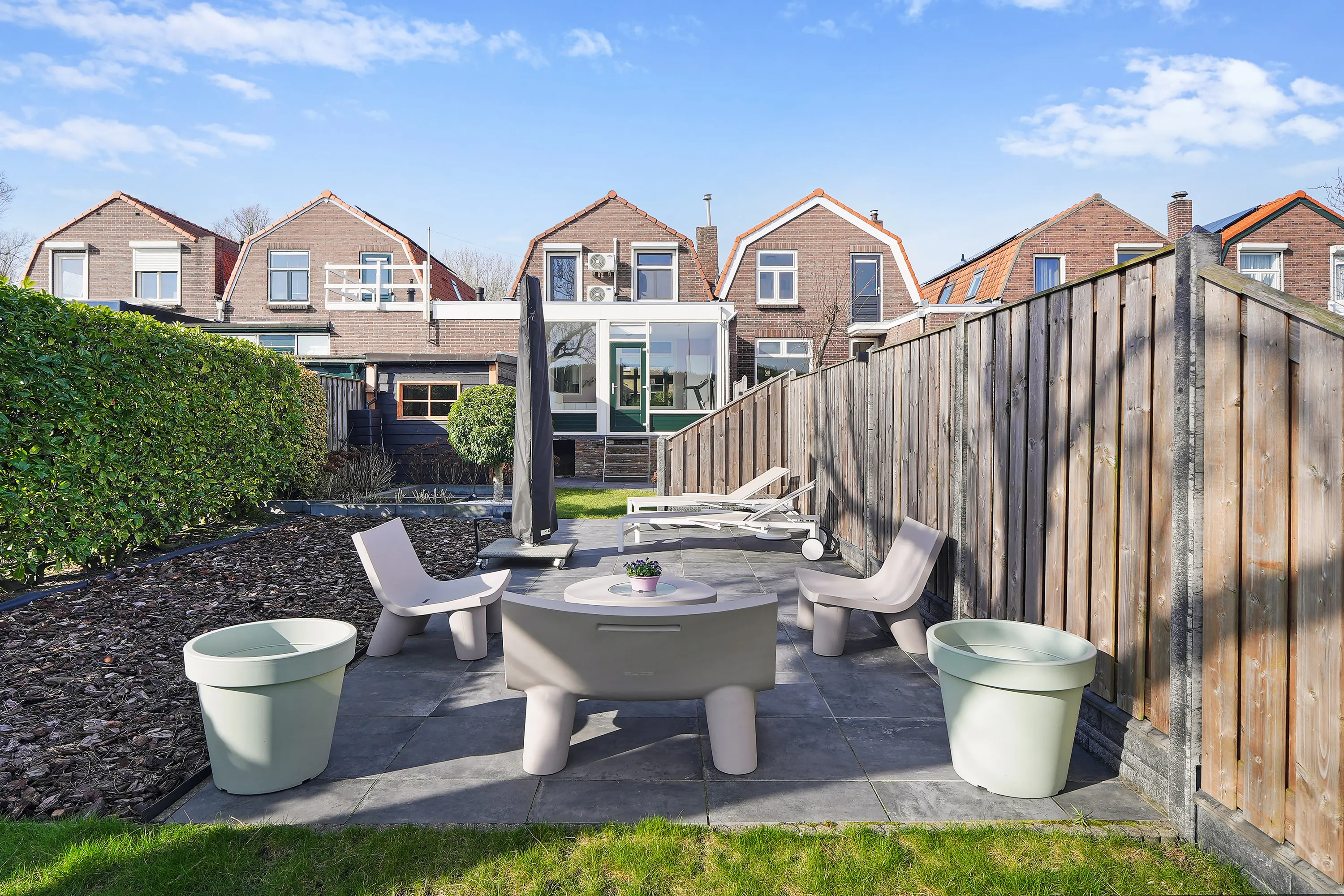 De fraai aangelegde tuin (2023) is verzorgd en biedt een fijne plek om te ontspannen, het zonnige terras aan de achterzijde is prachtig aangelegd en biedt veel privacy! Dankzij de zijdeur bereikt u de achterzijde van de woning, o.a. handig voor de fiets. De ligging en de serre zorgen voor een prettige overgang tussen binnen en buiten, waardoor u hier het hele jaar door van de tuin kunt genieten. Tevens bevindt zich hier een ruime schuur, ideaal voor o.a. het opbergen van de tuinspullen.