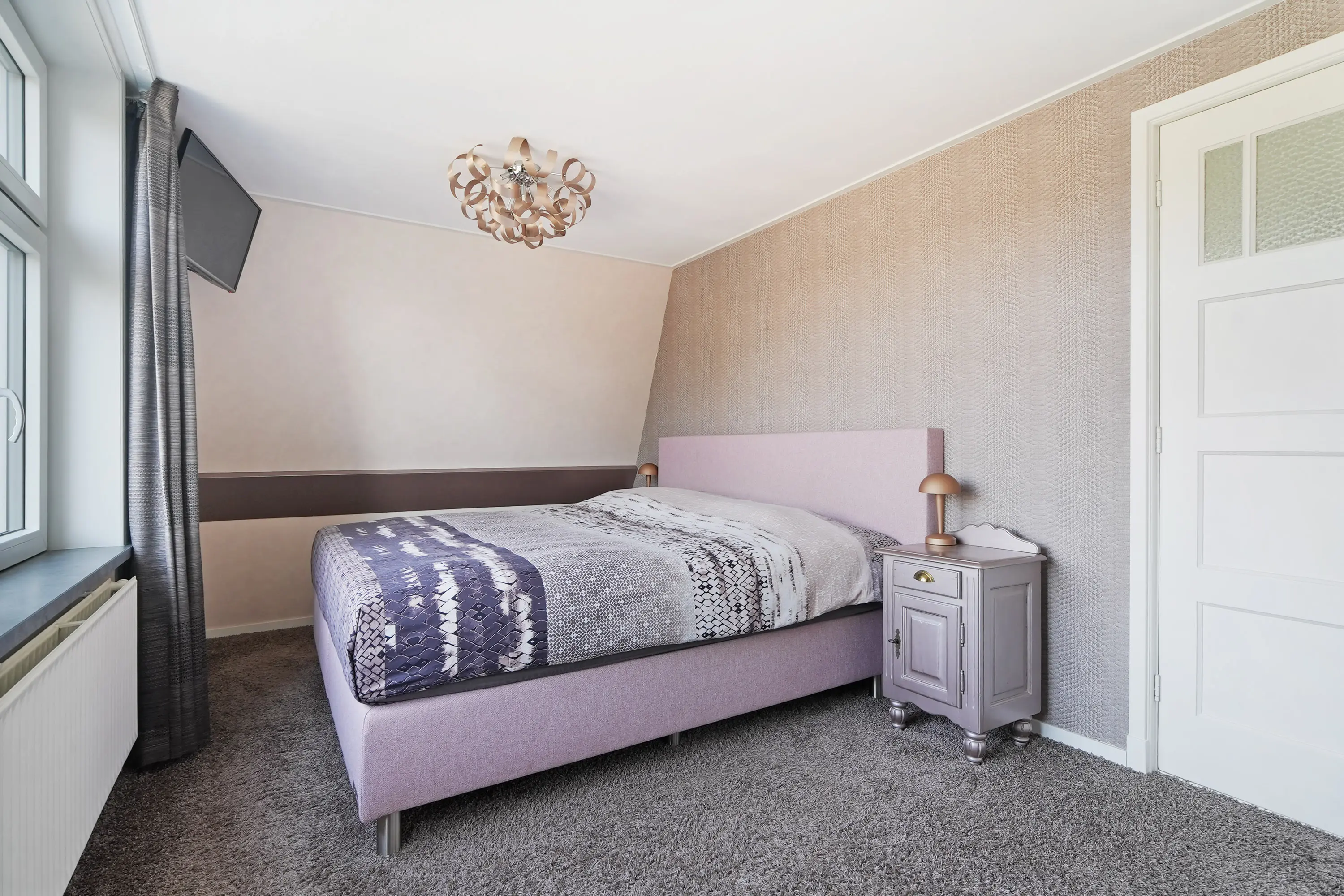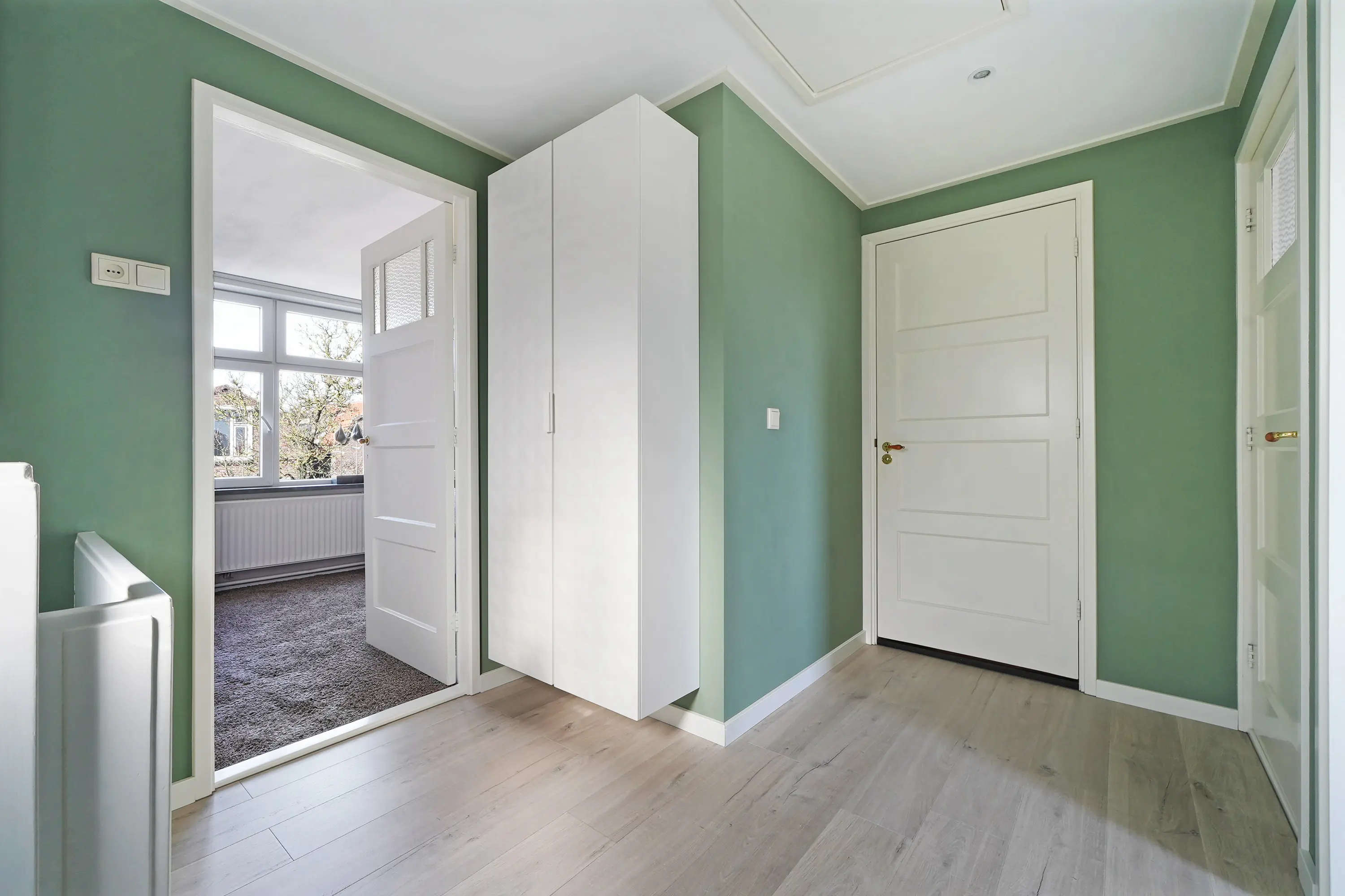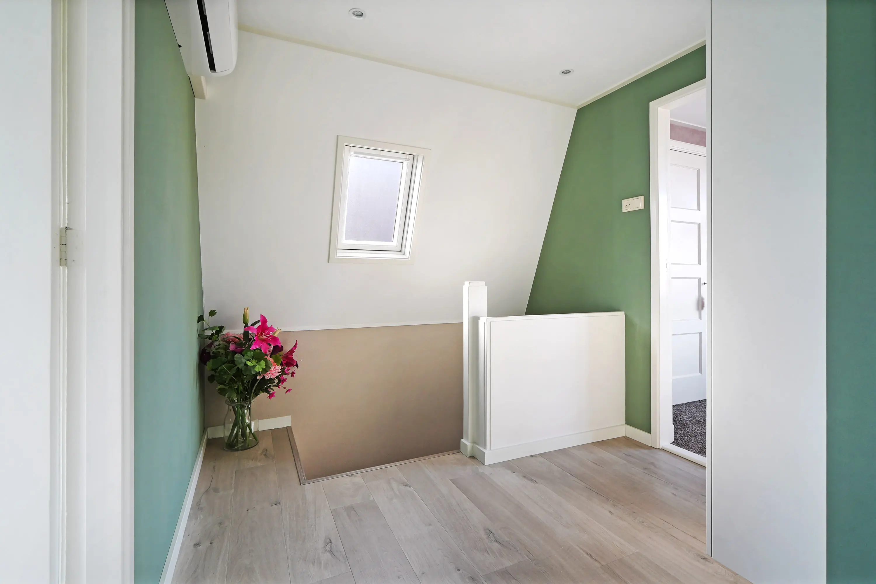 De overloop biedt toegang tot drie slaapkamers en de moderne badkamer (2019). De ruime ouderslaapkamer ligt aan de voorzijde en beschikt over praktische inbouwkasten. Aan de achterzijde bevinden zich twee keurig bemeten slaapkamers. De badkamer is modern uitgevoerd met een inloopdouche, ruime wastafel en een tweede toilet. Werkelijk een mooi geheel! Tevens beschikt de woning over een vliering met veel bergruimte.