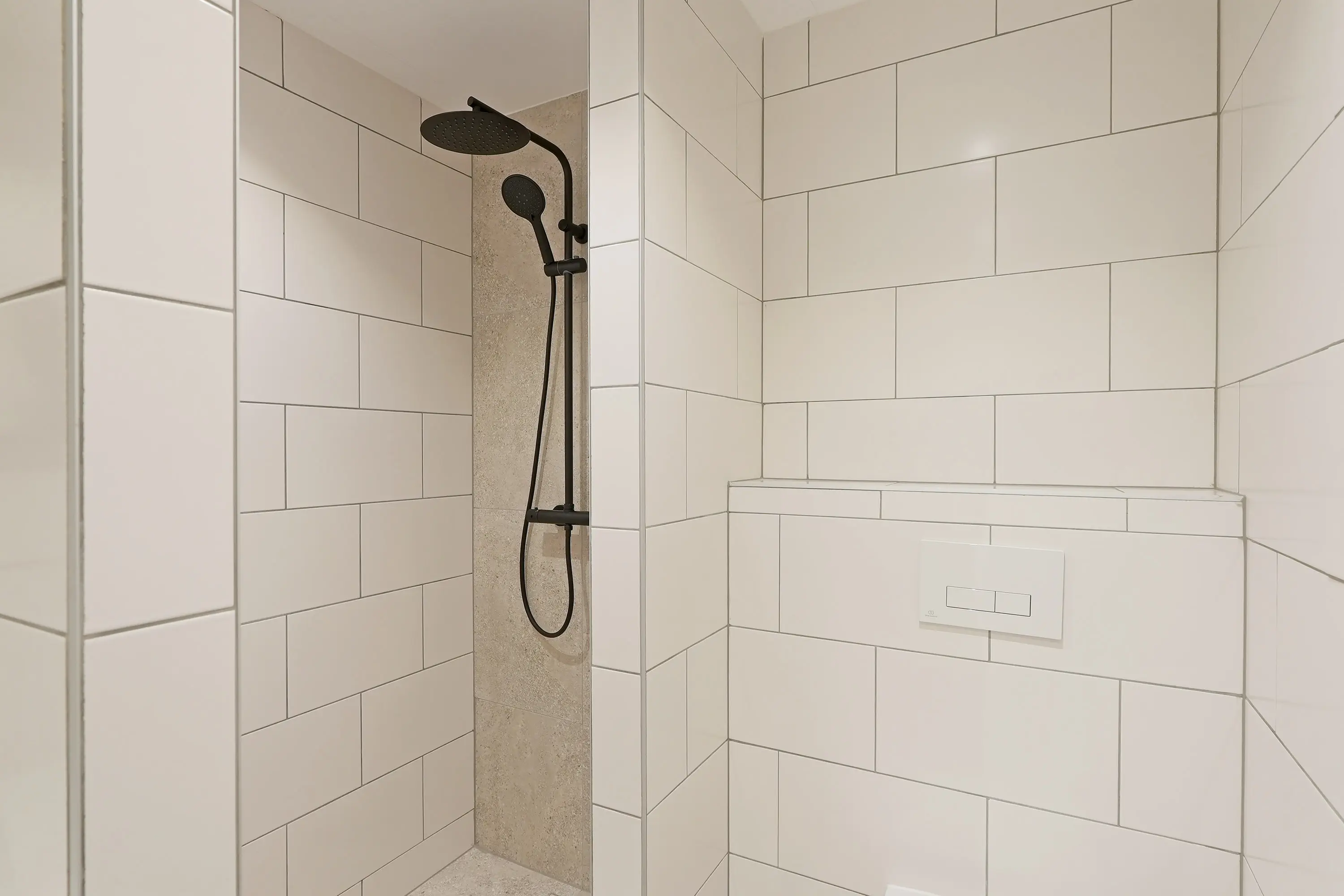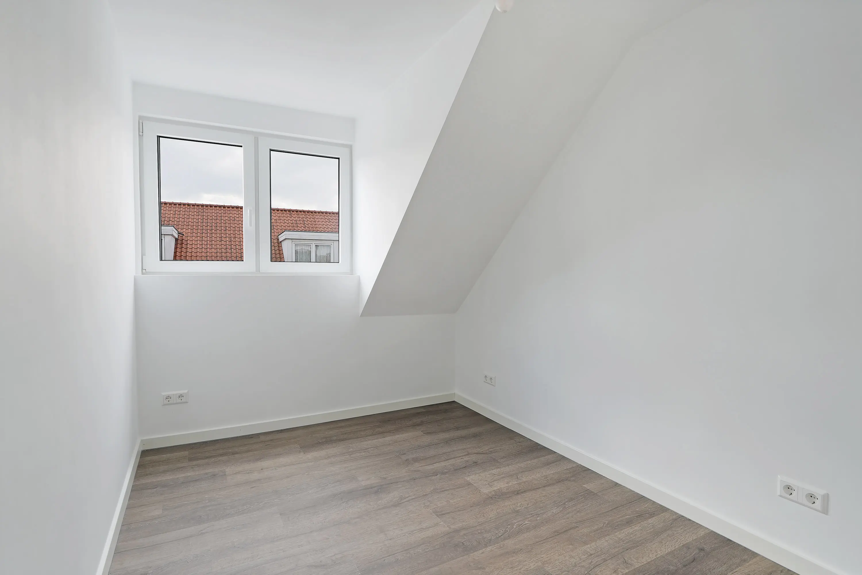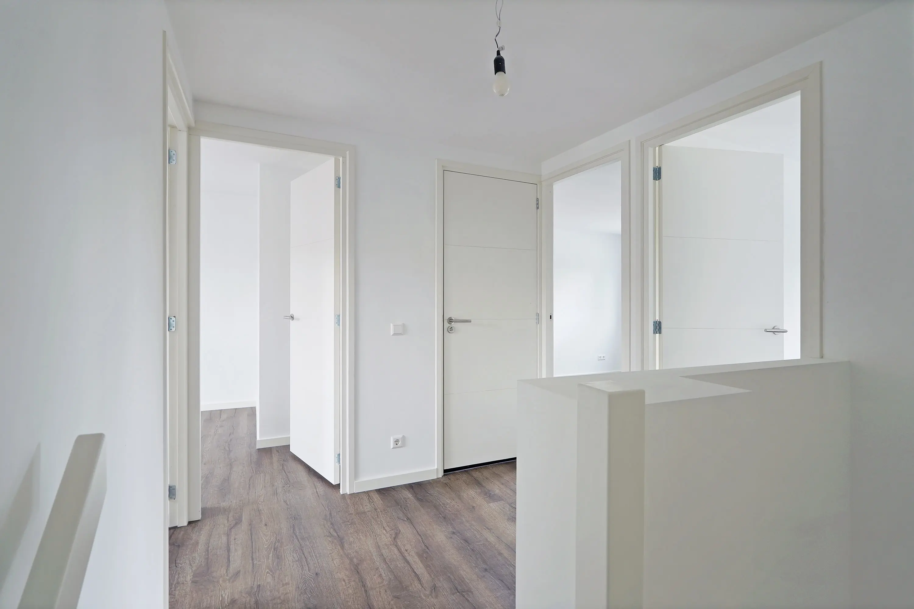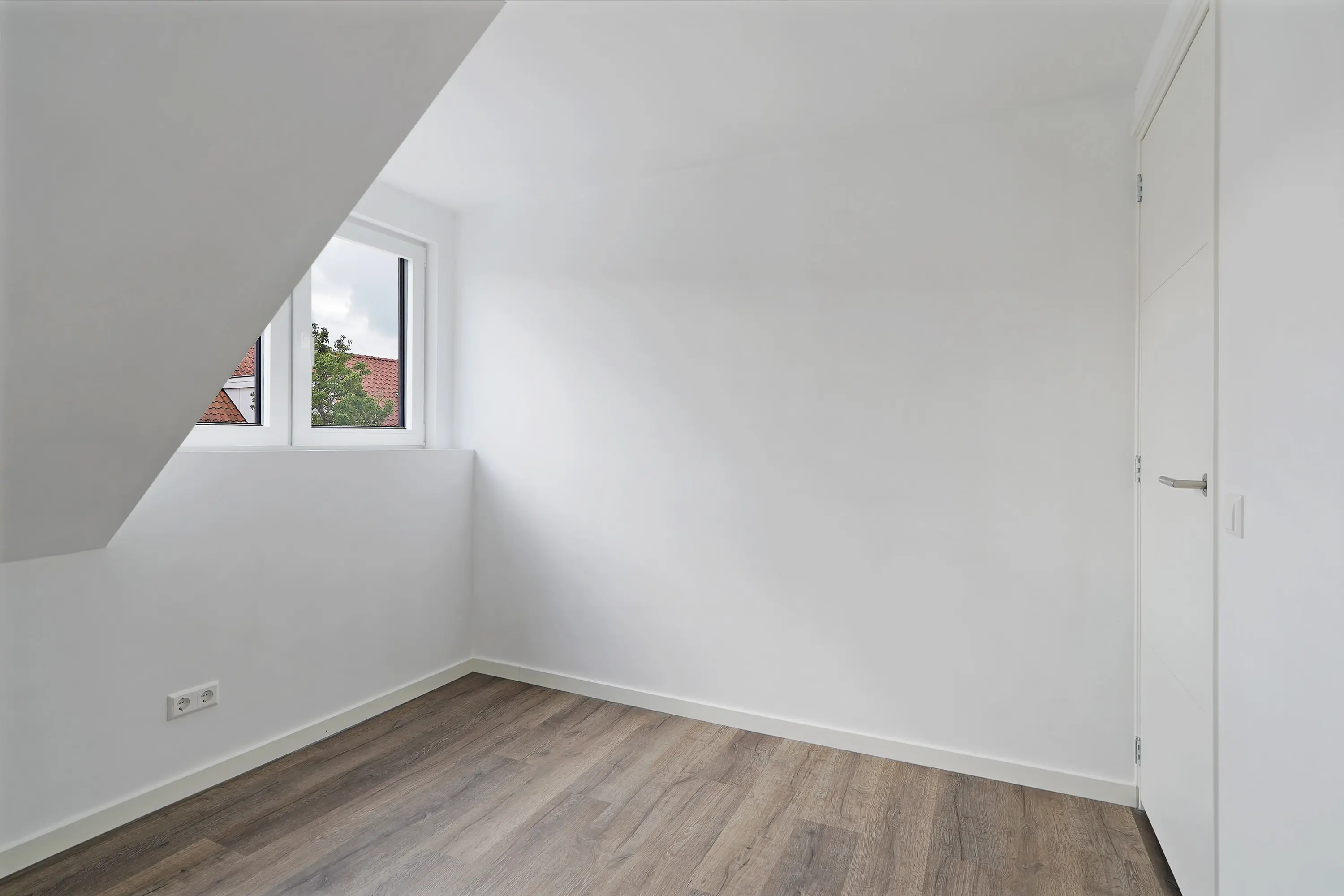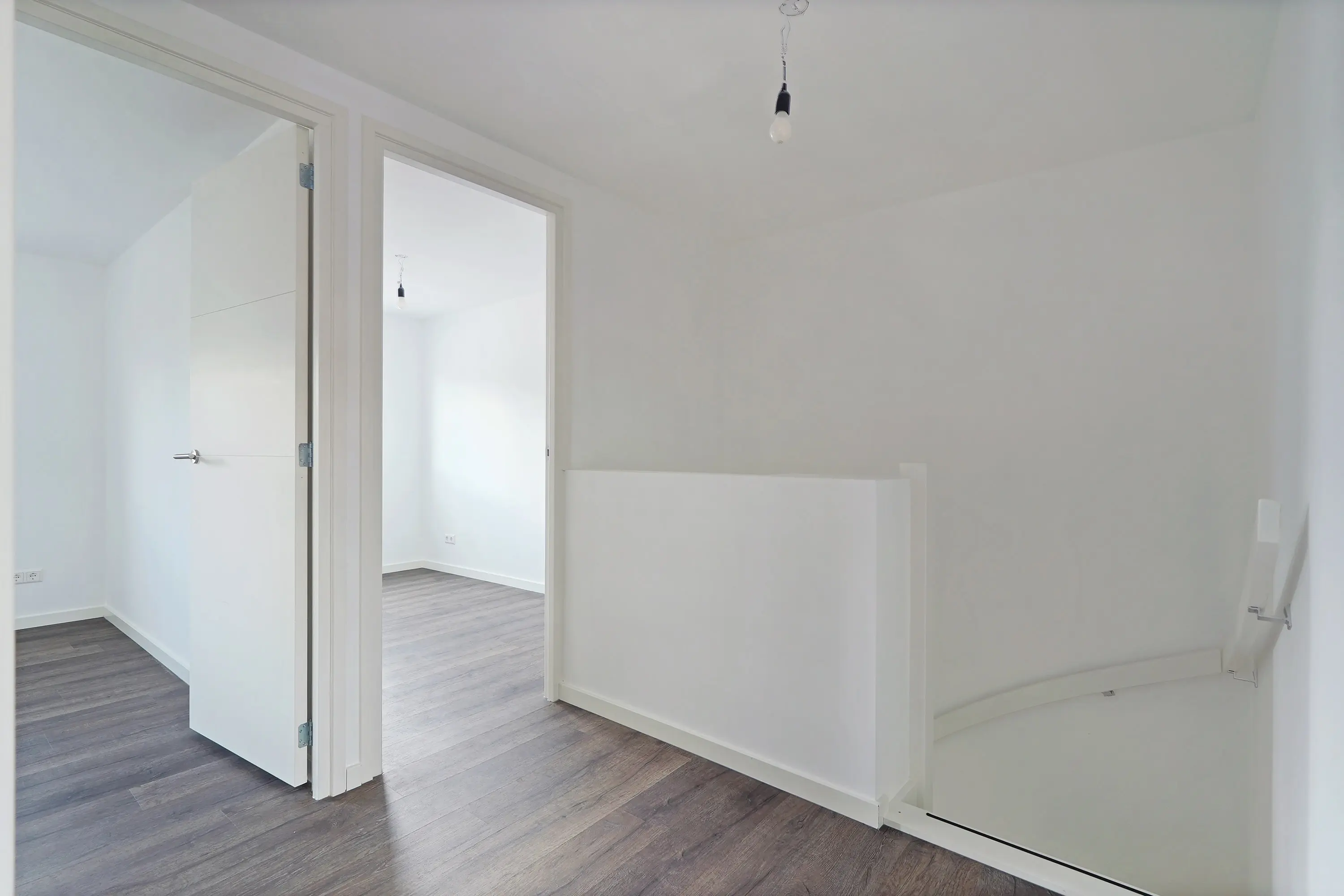 Overloop, vier ruime slaapkamers waarvan twee met dakkapel en vervolgens een luxe en moderne badkamer voorzien van inloopdouche, wastafel, tweede toilet en elektrische radiator.