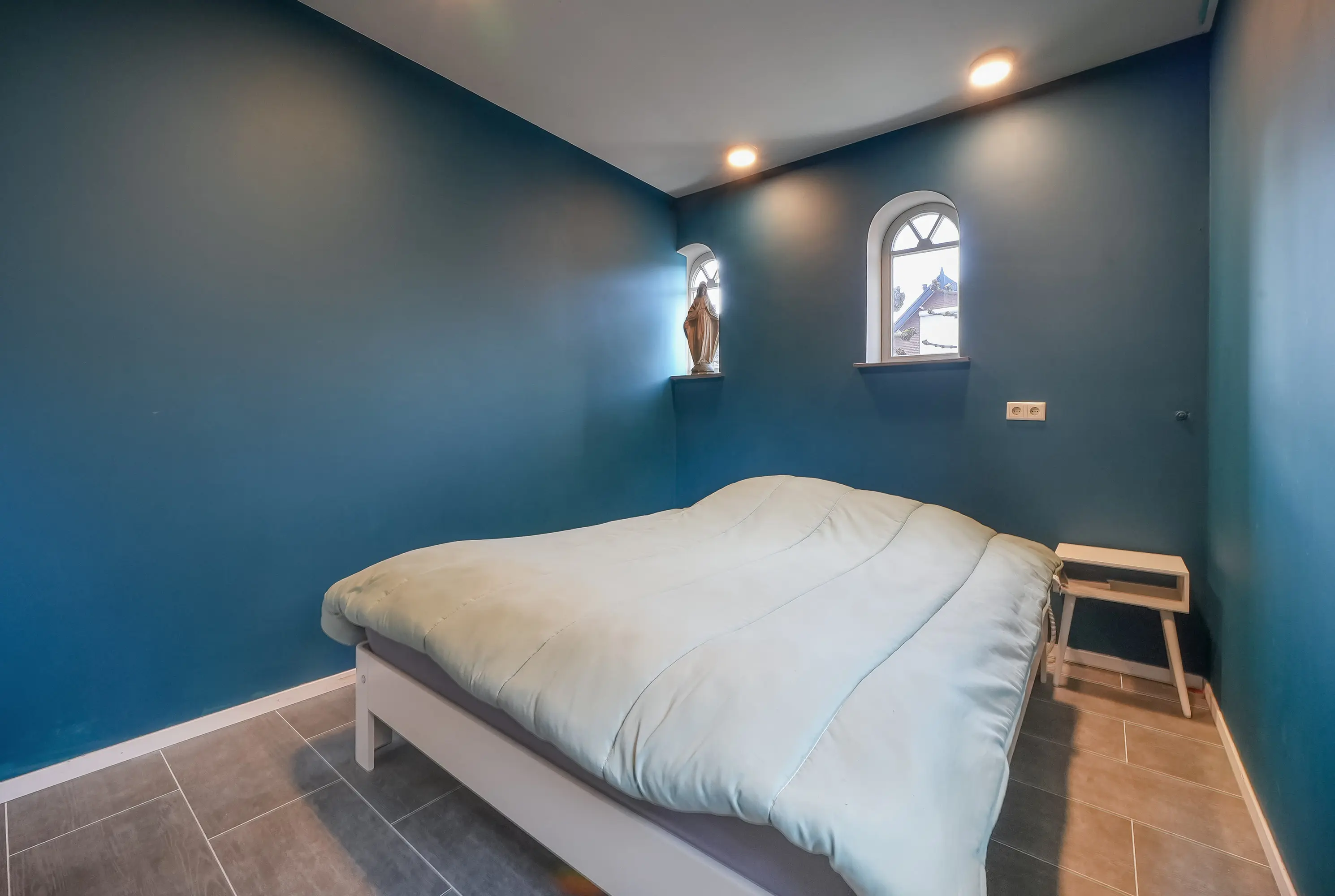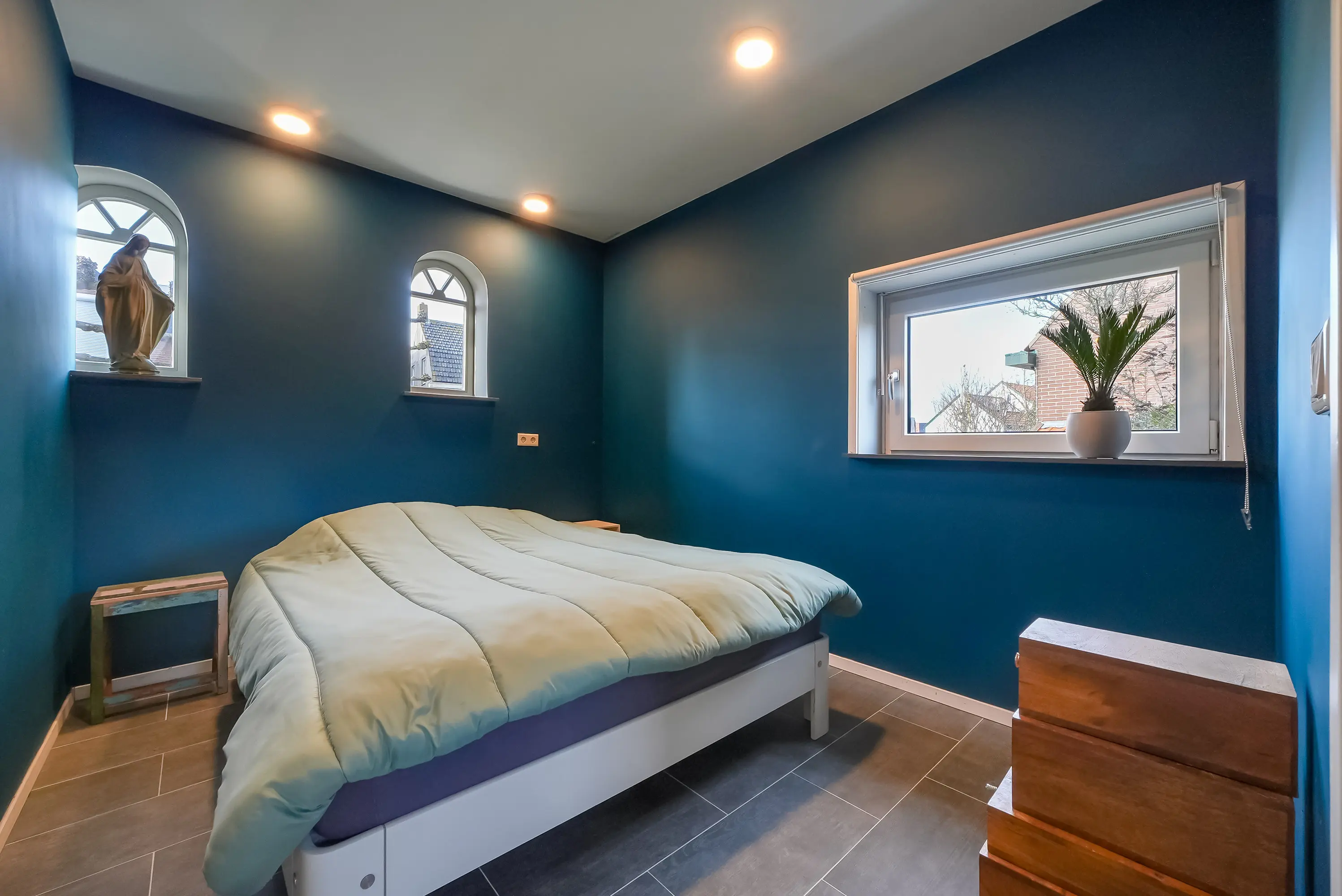 Aansluitend bevindt zich de bijkeuken met witgoedaansluitingen en de cv-opstelling (Nefit, 2020). Vanuit deze ruimte zijn zowel de tuin als de slaap-/hobby-/werkkamer op de begane grond bereikbaar. Deze kamer combineert authentieke stalramen met modern comfort.